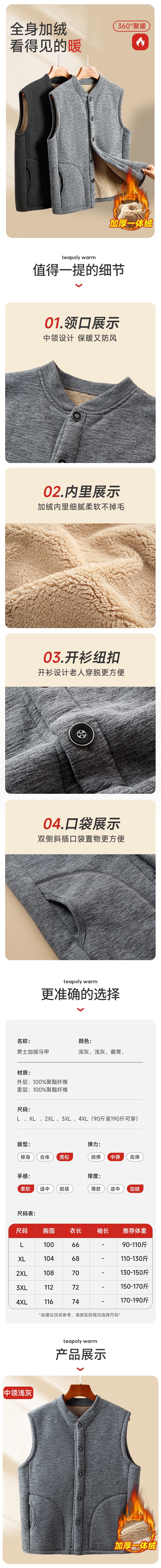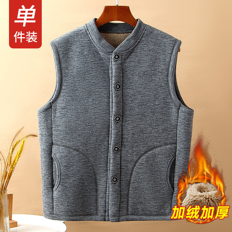 중년 및 노인 남성 기모 조끼 겨울 따뜻한 조끼 아버지의 조끼 두꺼운 가을과 겨울 할아버지 양가죽 양복 조끼스토어 가기