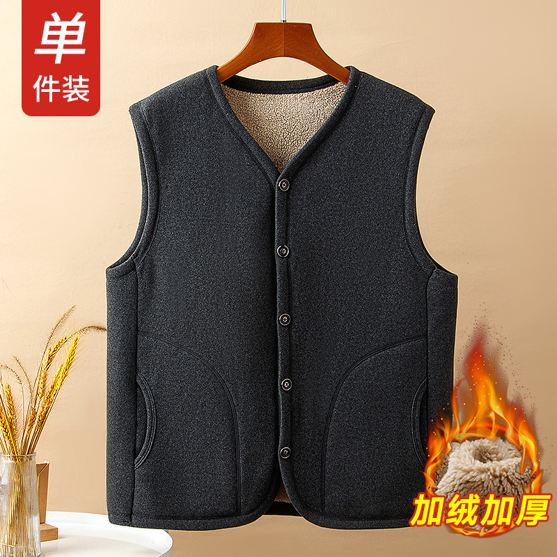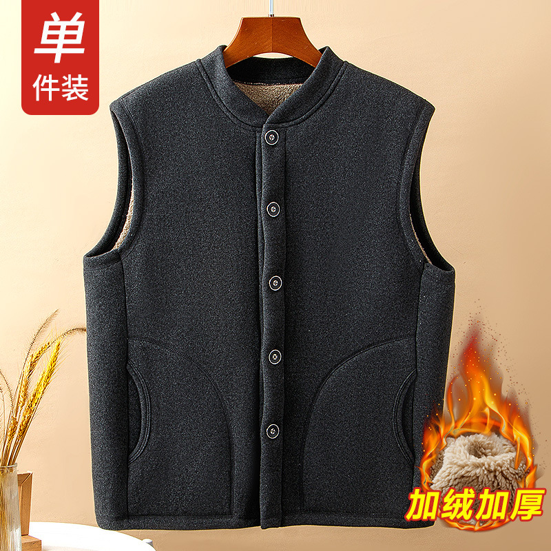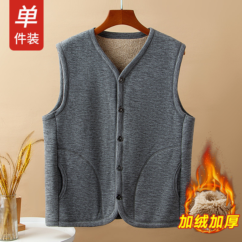 중년 및 노인 남성 기모 조끼 겨울 따뜻한 조끼 아버지의 조끼 두꺼운 가을과 겨울 할아버지 양가죽 양복 조끼