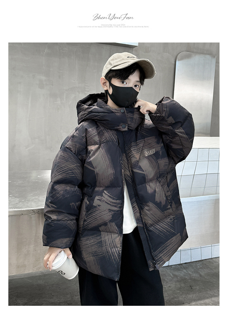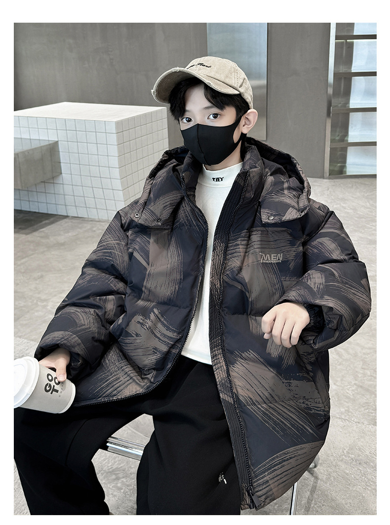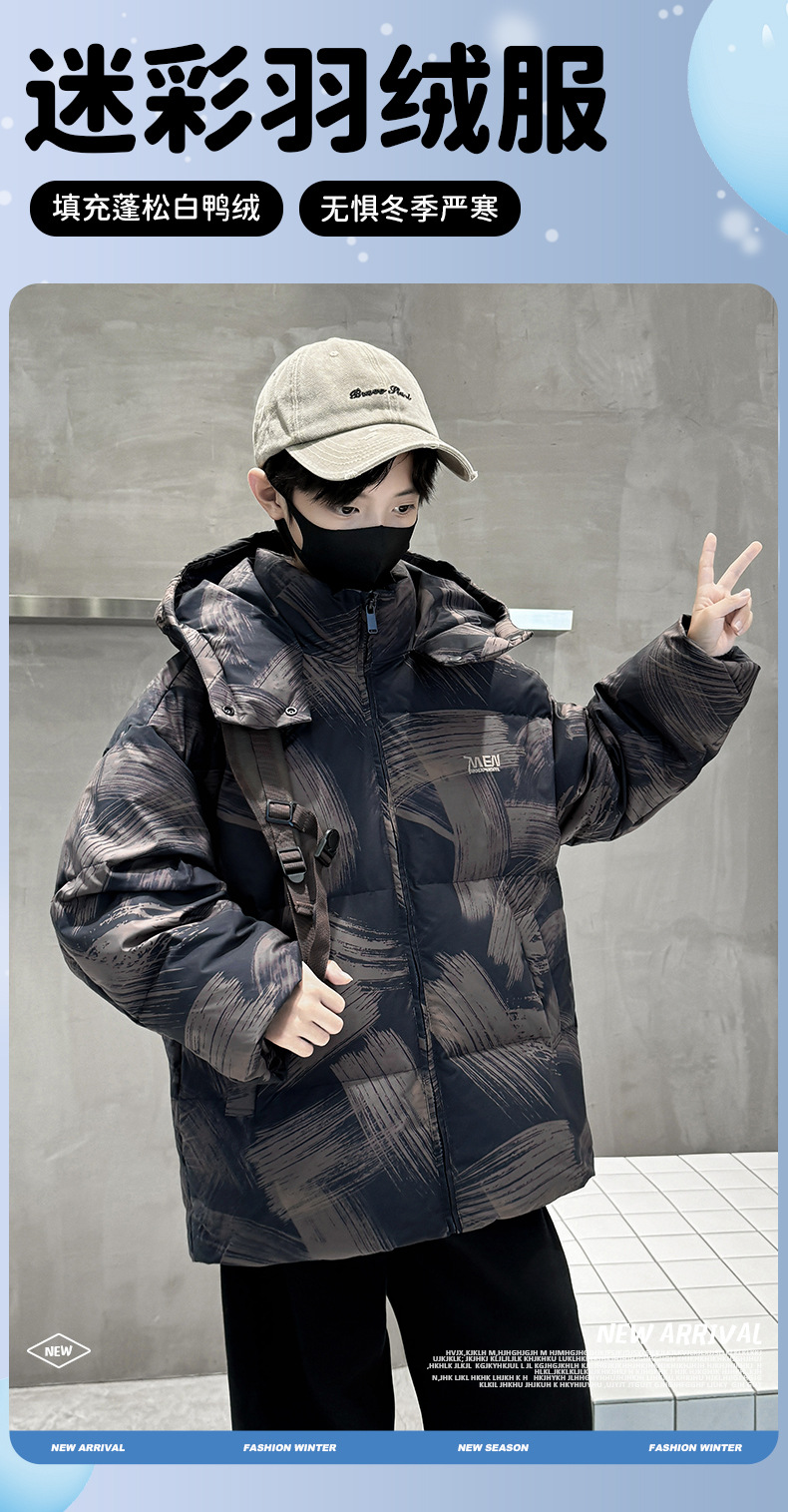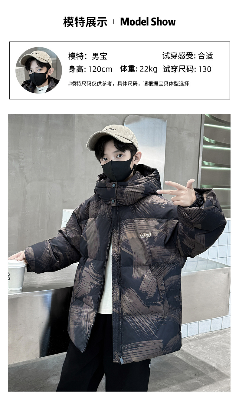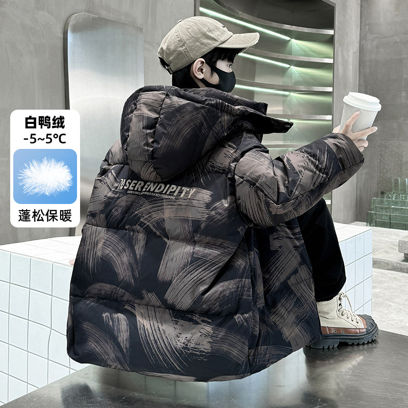 남학생 다운 재킷 겨울 2024 새로운 중대형 어린이 두꺼운 겨울 옷 어린이 흰 오리 다운 따뜻한 재킷 중간 길이스토어 가기