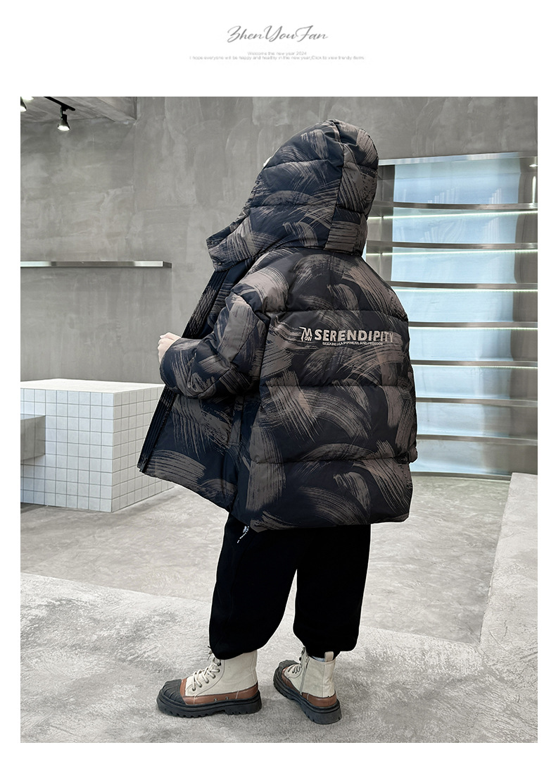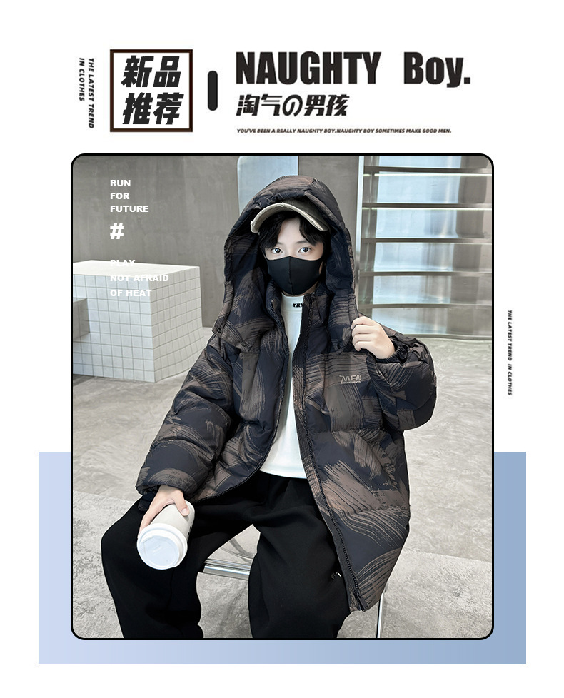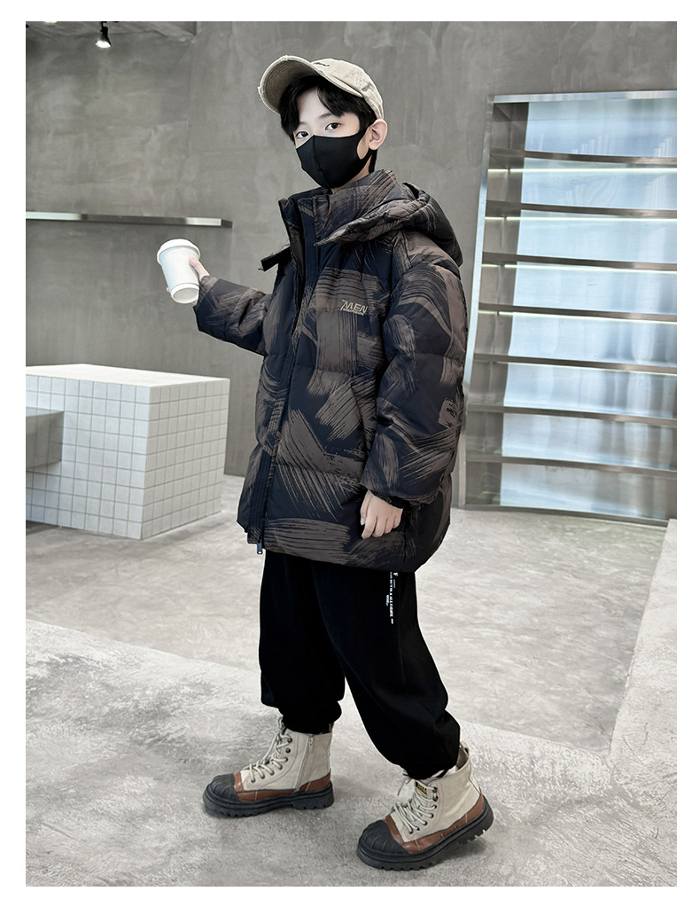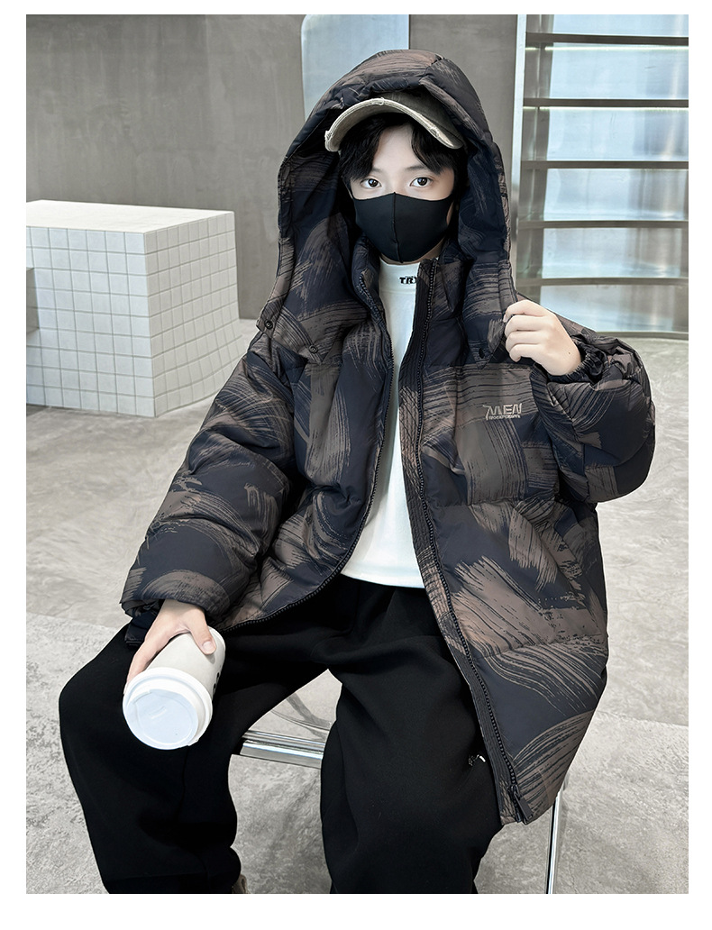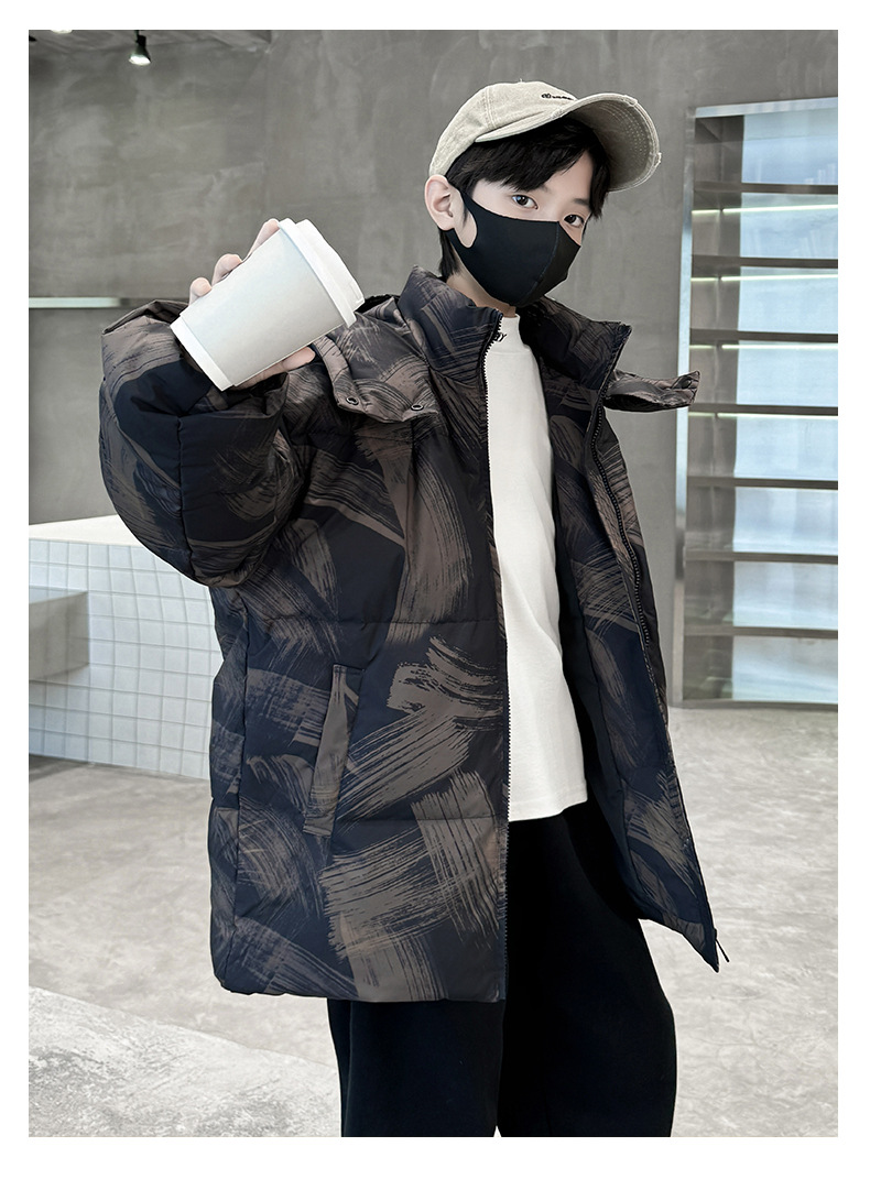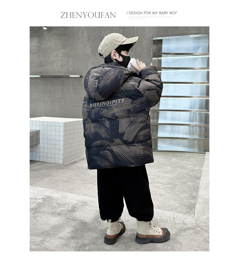 남학생 다운 재킷 겨울 2024 새로운 중대형 어린이 두꺼운 겨울 옷 어린이 흰 오리 다운 따뜻한 재킷 중간 길이스토어 가기