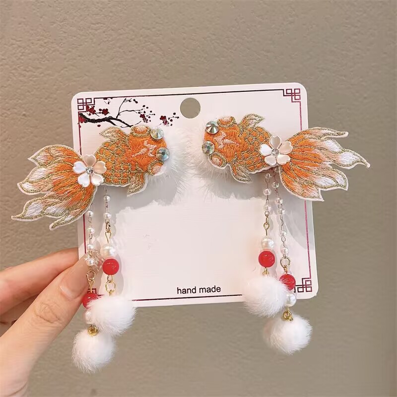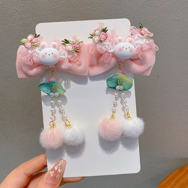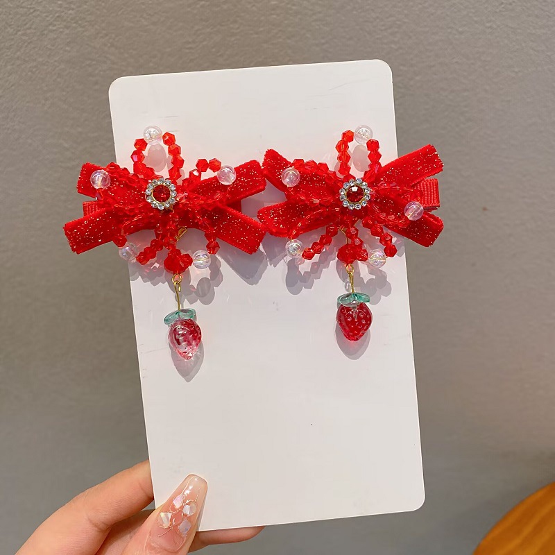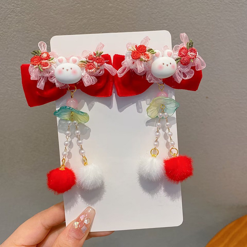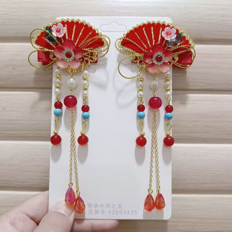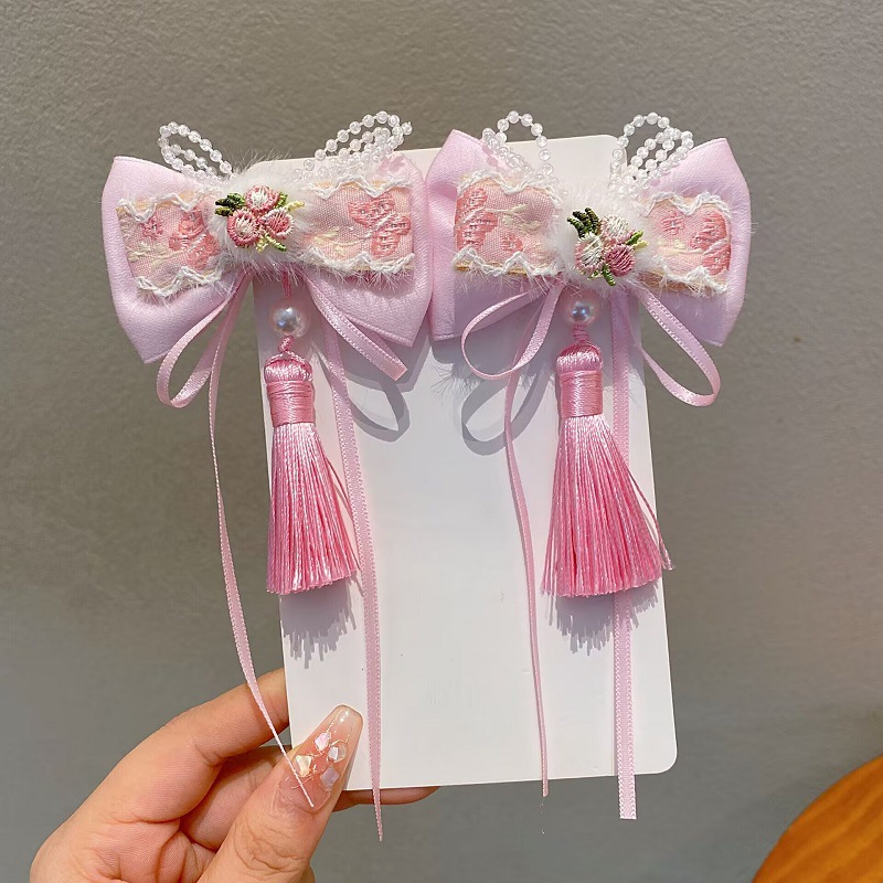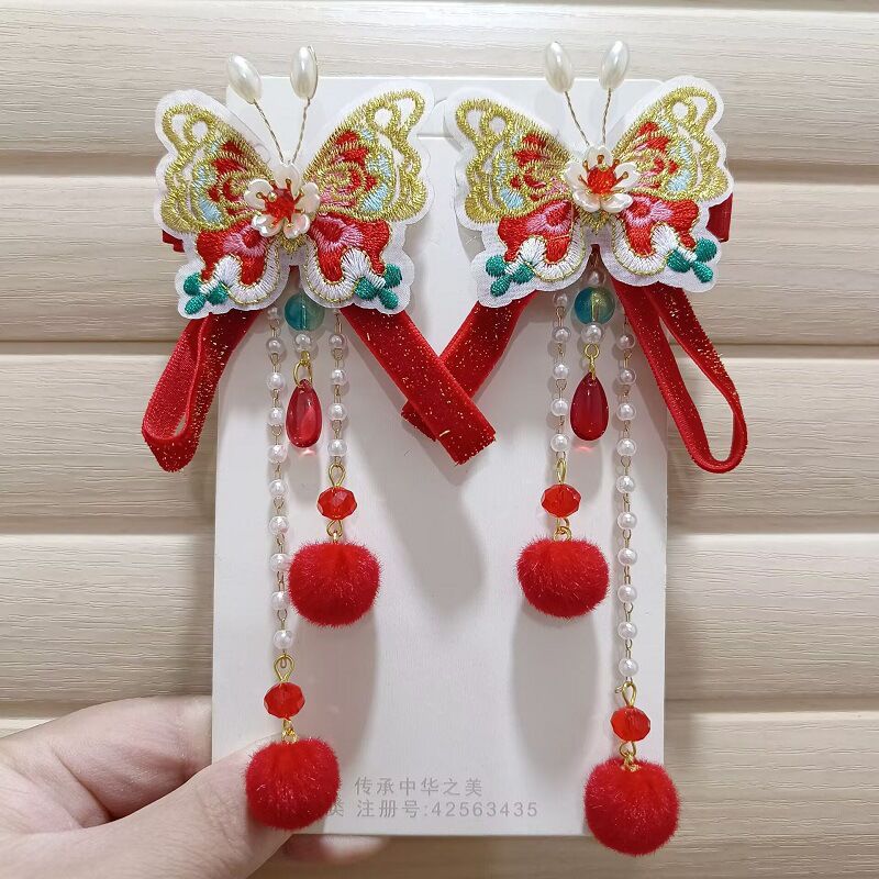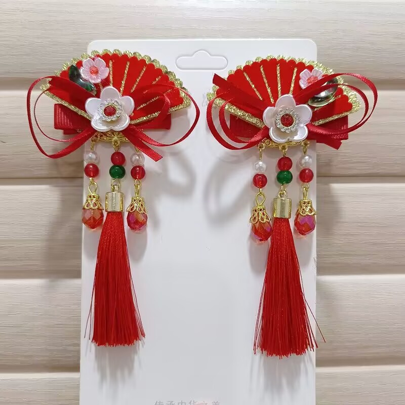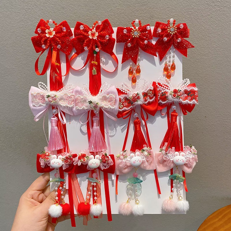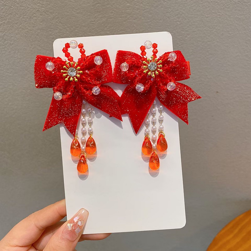 어린이 골동품 헤어 액세서리 중국 스타일 웨딩 축제 헤어 액세서리 레드 보우 술 헤어 카드 걸스 한푸 헤드폰