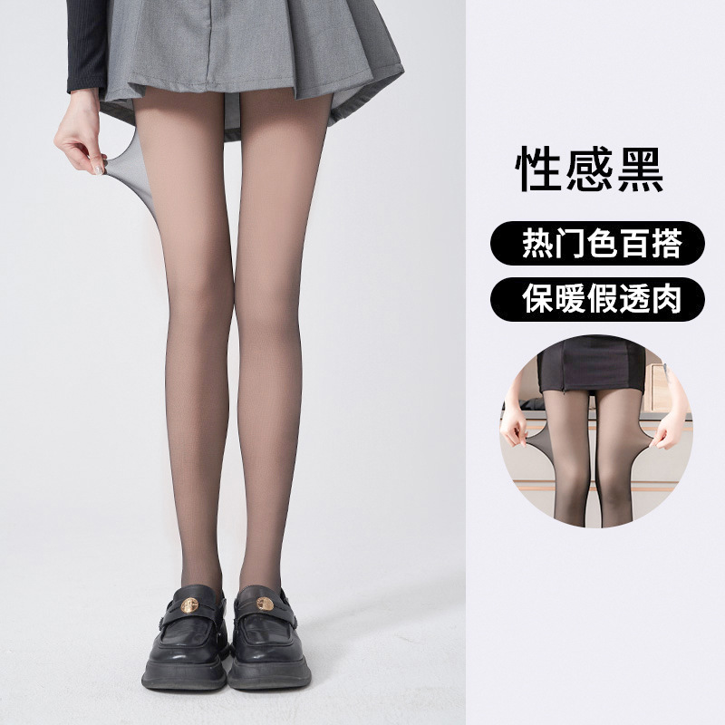 더블 레이어 블랙 실크 기모 라이트 레그 아티팩트 여성의 가을과 겨울 기모 두꺼운 검은 피부 관통 팬티 스타킹 천연 알몸 팬티 스타킹스토어 가기