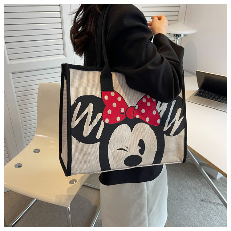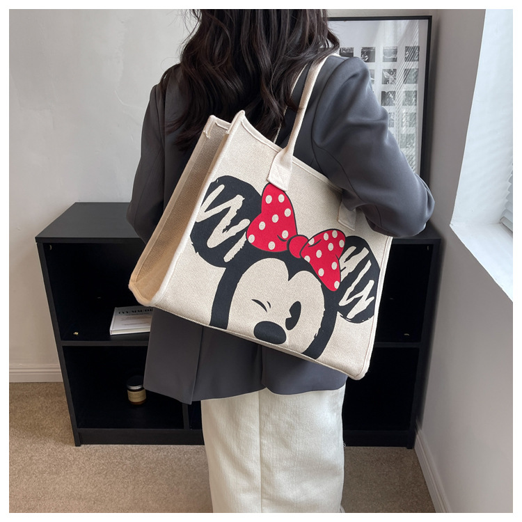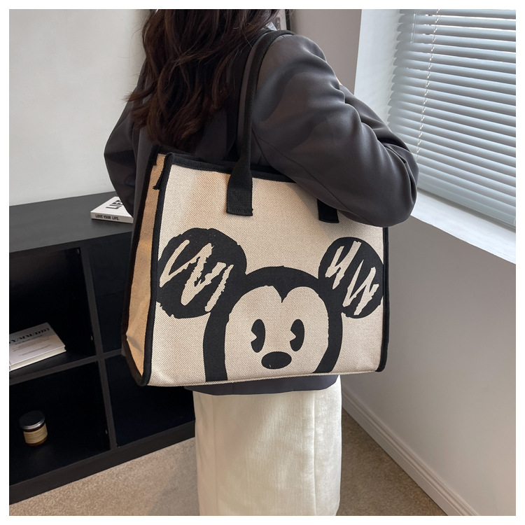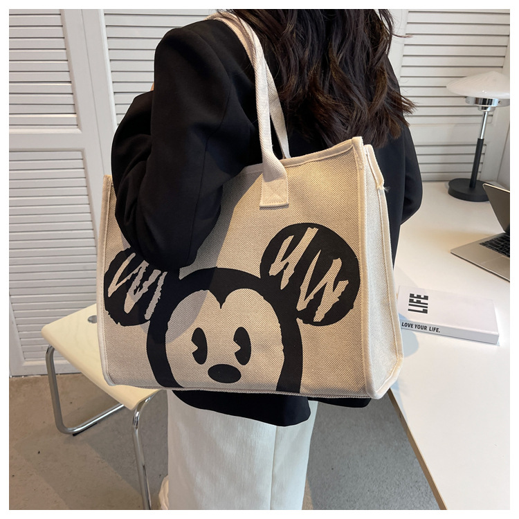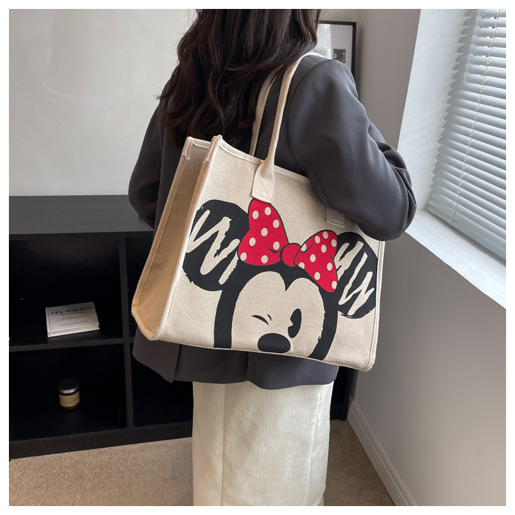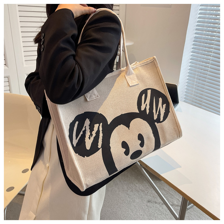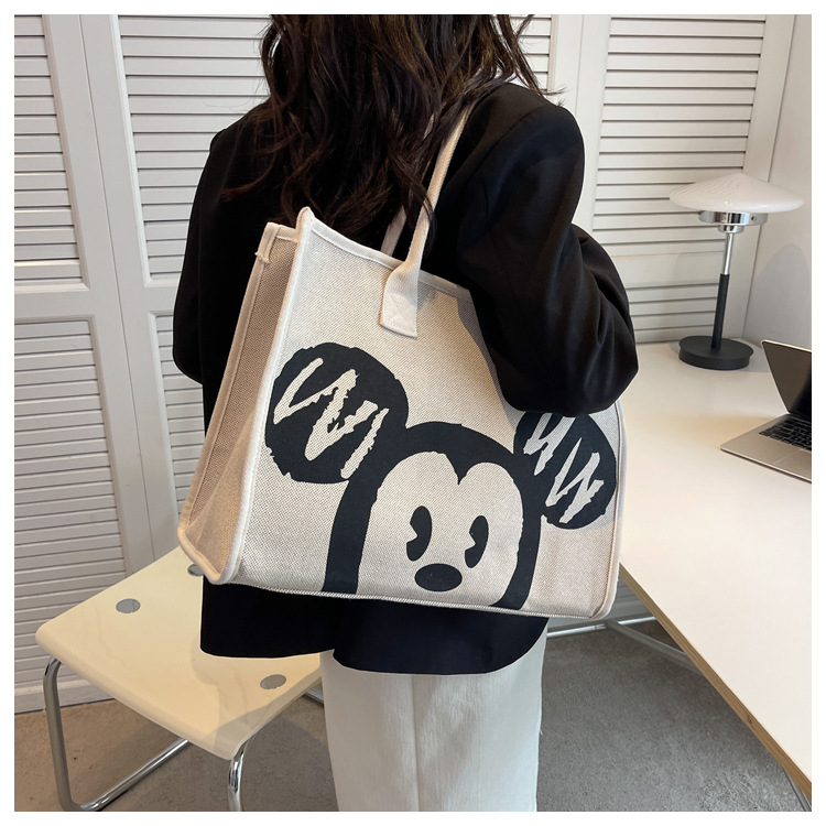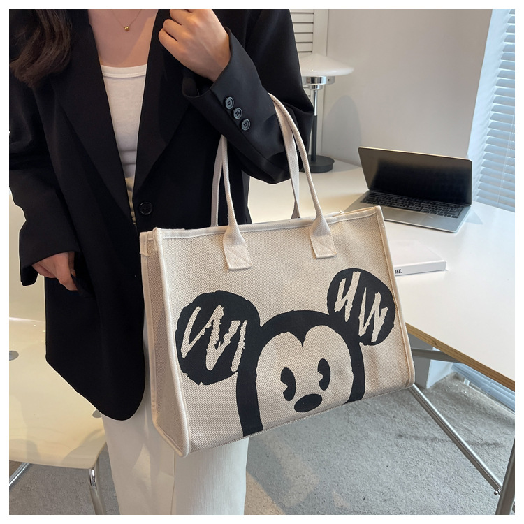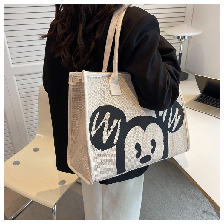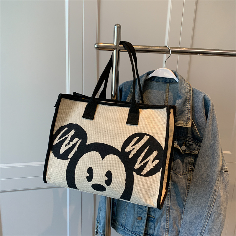 대용량 통근 어깨 가방 여성의 2024 가을 겨울 새로운 일본 스타일 만화 캔버스 가방 모든 경기 캐주얼 미라 가방스토어 가기