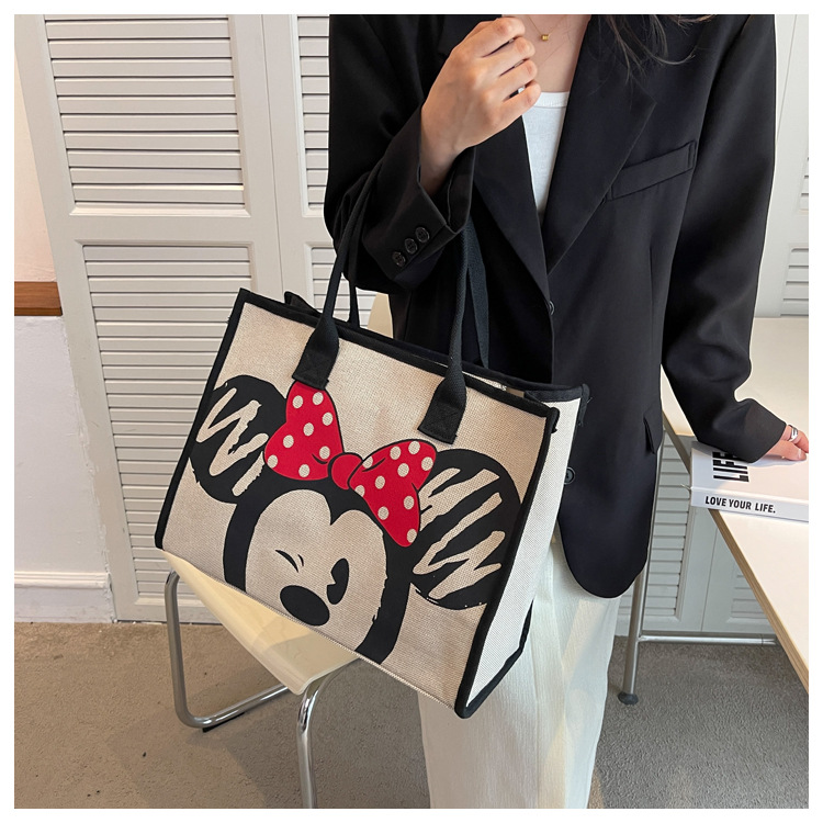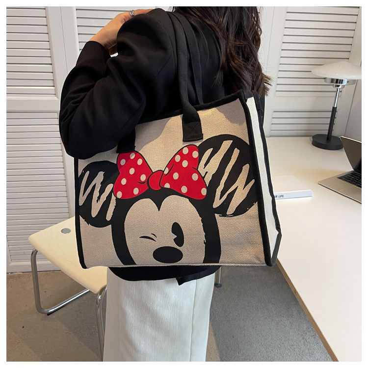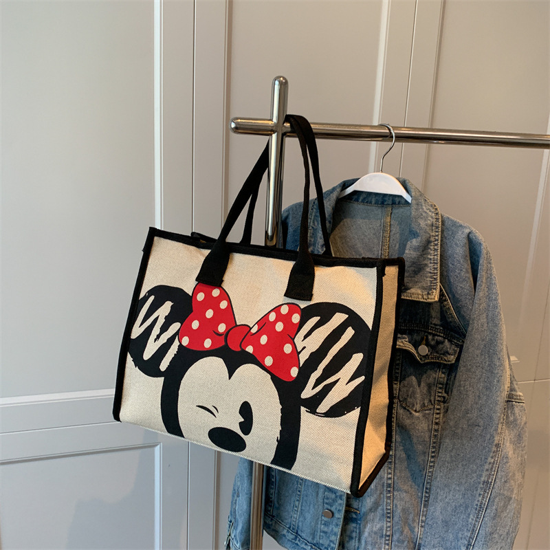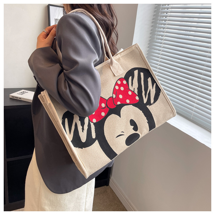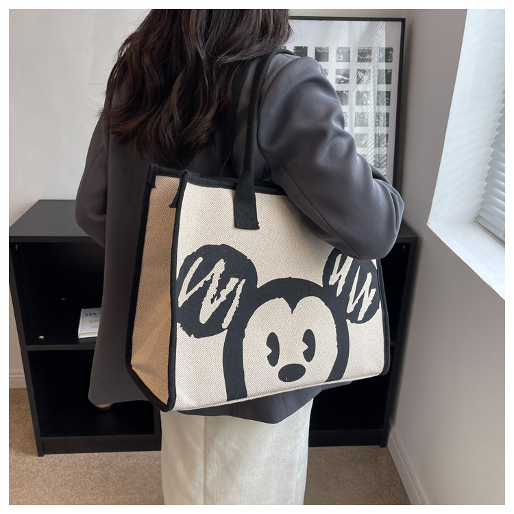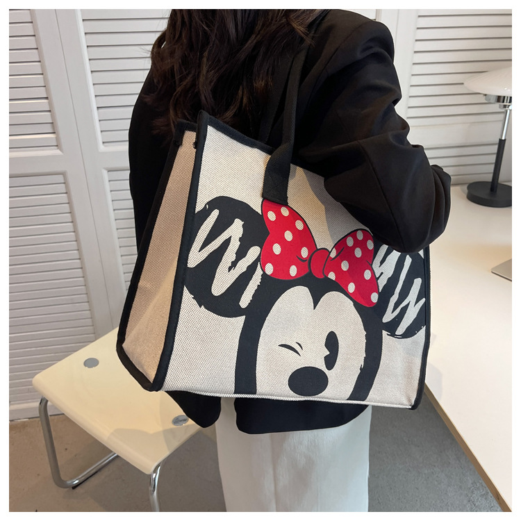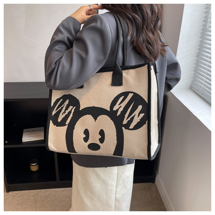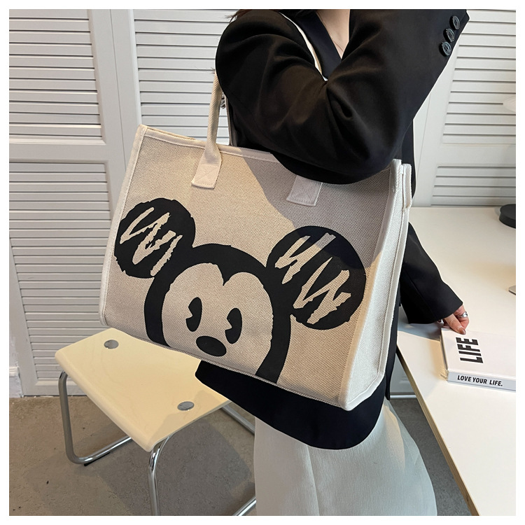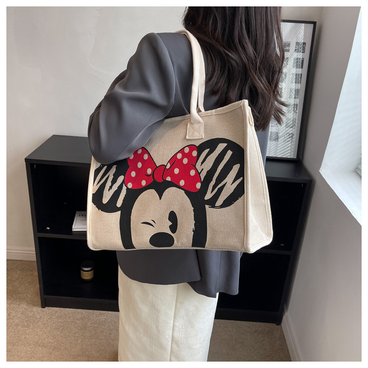 대용량 통근 어깨 가방 여성의 2024 가을 겨울 새로운 일본 스타일 만화 캔버스 가방 모든 경기 캐주얼 미라 가방스토어 가기