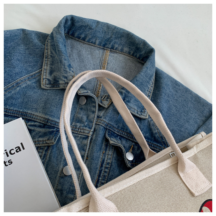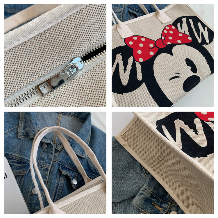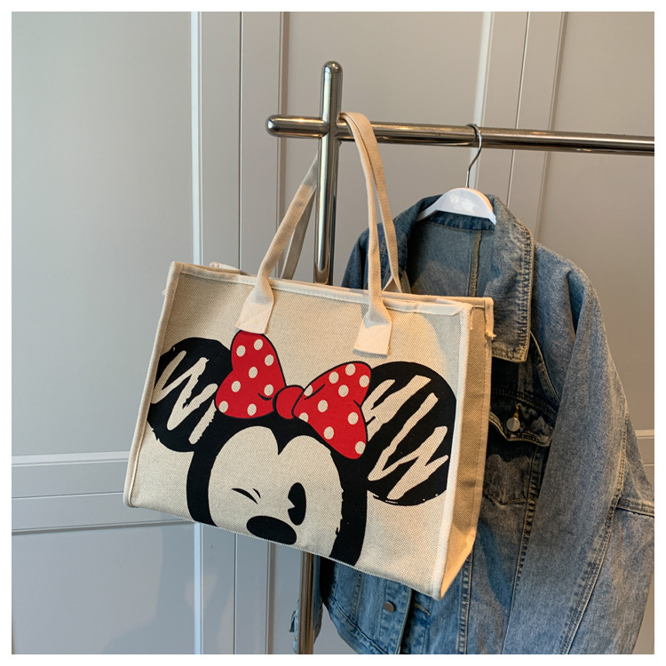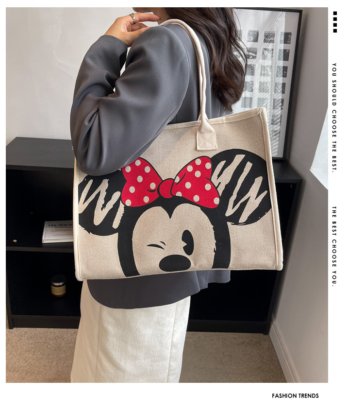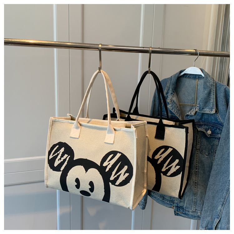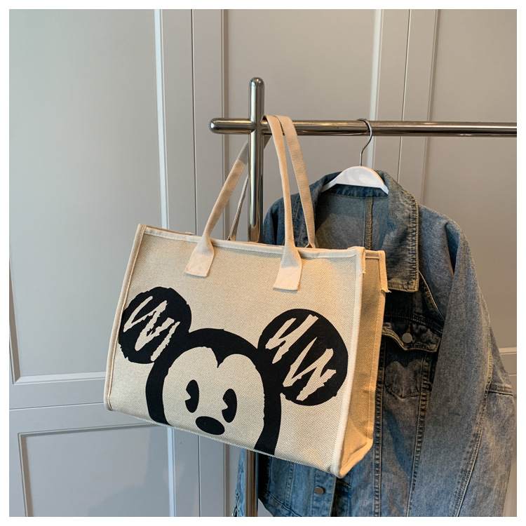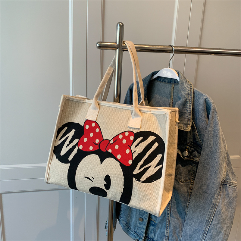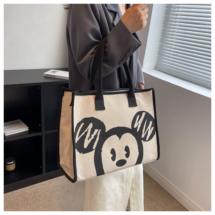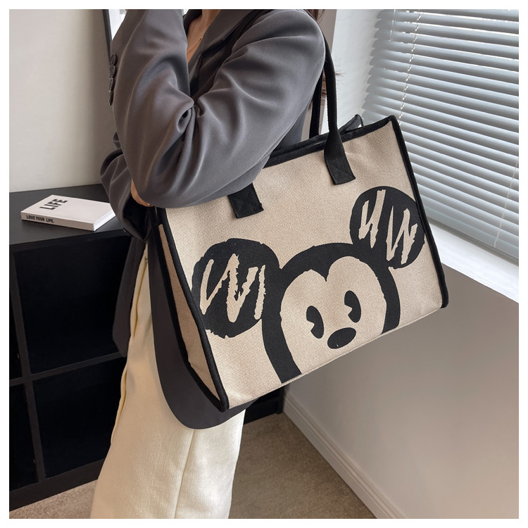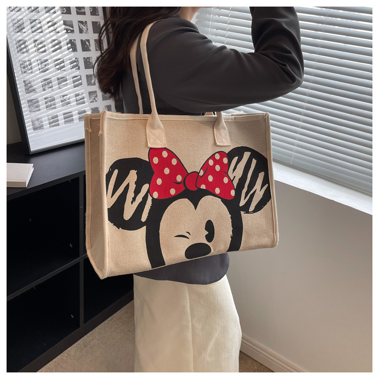 대용량 통근 어깨 가방 여성의 2024 가을 겨울 새로운 일본 스타일 만화 캔버스 가방 모든 경기 캐주얼 미라 가방스토어 가기