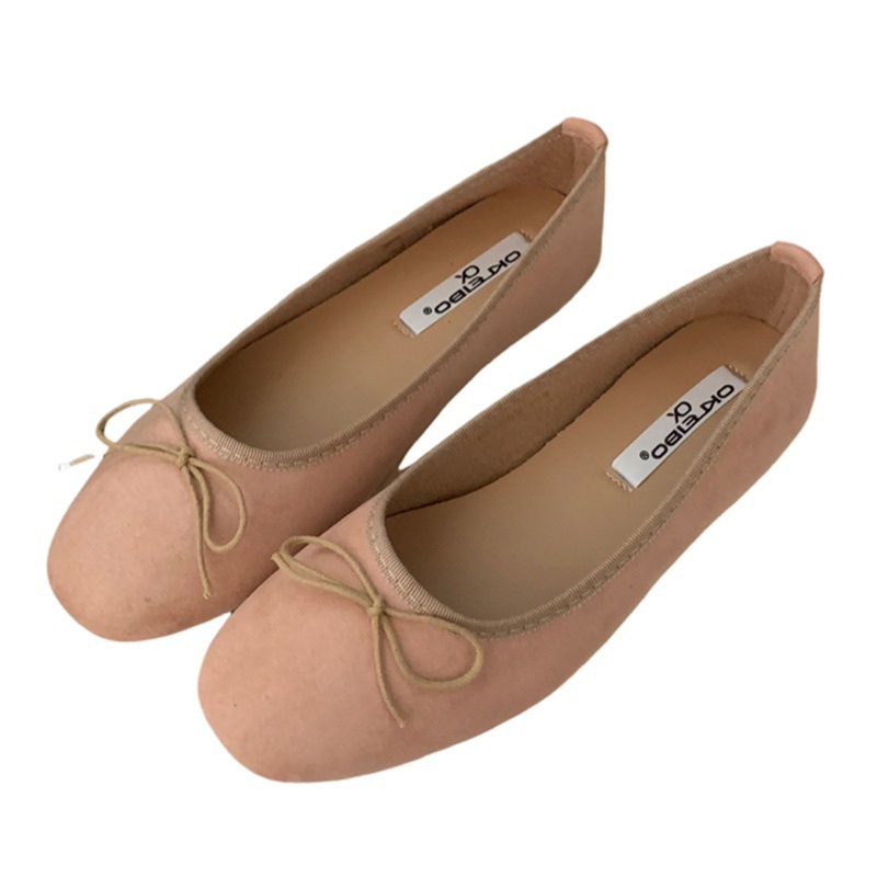 작은 단층 신발 평평한 부드러운 바닥 우유 신발 2025 봄 새로운 둥근 활 얕은 입 국자 신발 한국판