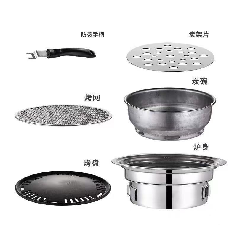스테인레스 스틸 한국 바베큐 오븐 라운드 가정용 상업용 캠핑 디너 탄소 오븐 휴대용 숯 바베큐 오븐