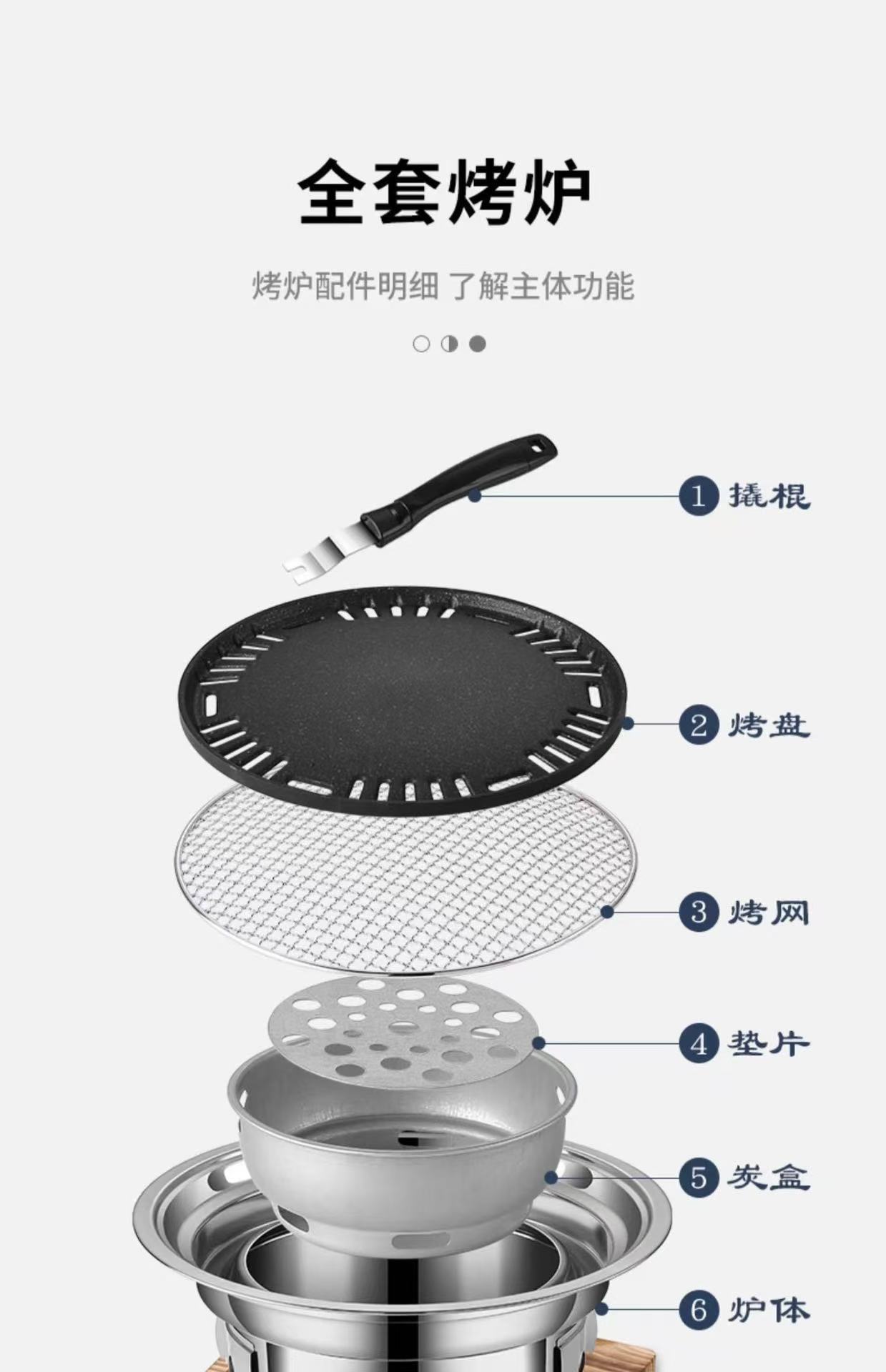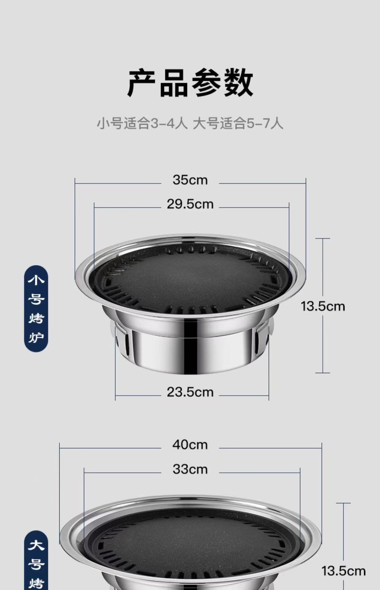 스테인레스 스틸 한국 바베큐 오븐 라운드 가정용 상업용 캠핑 디너 탄소 오븐 휴대용 숯 바베큐 오븐스토어 가기