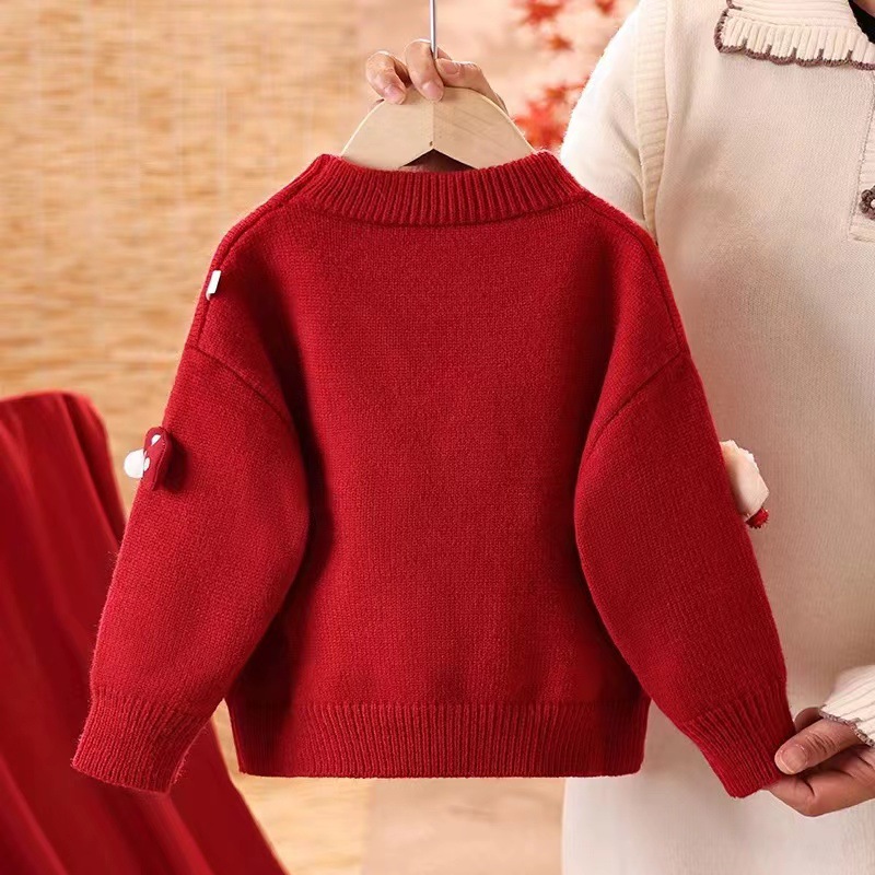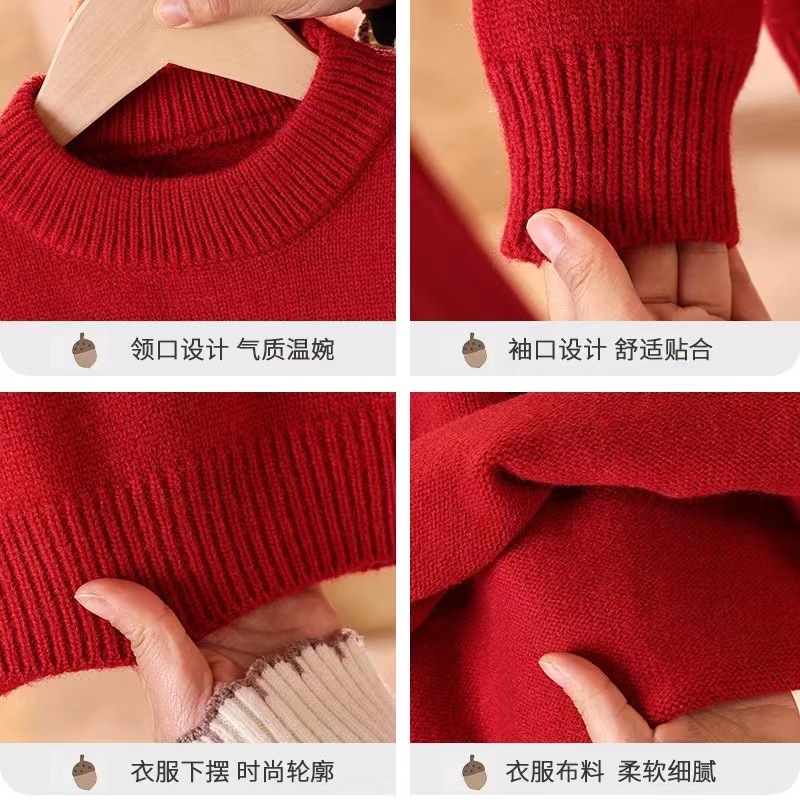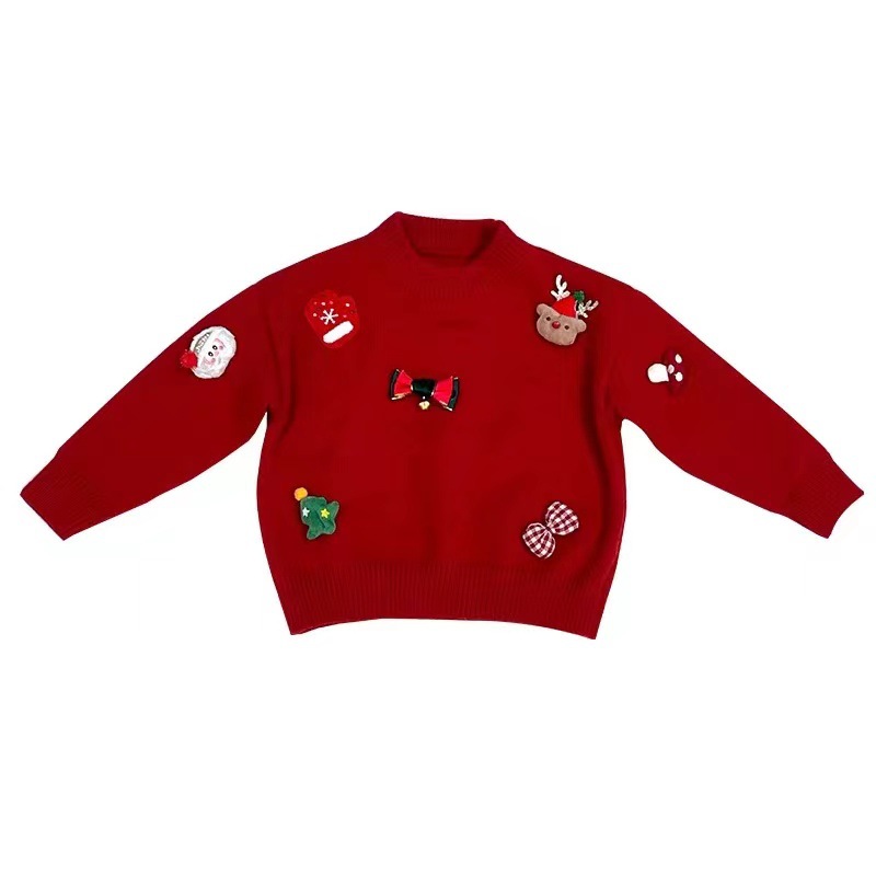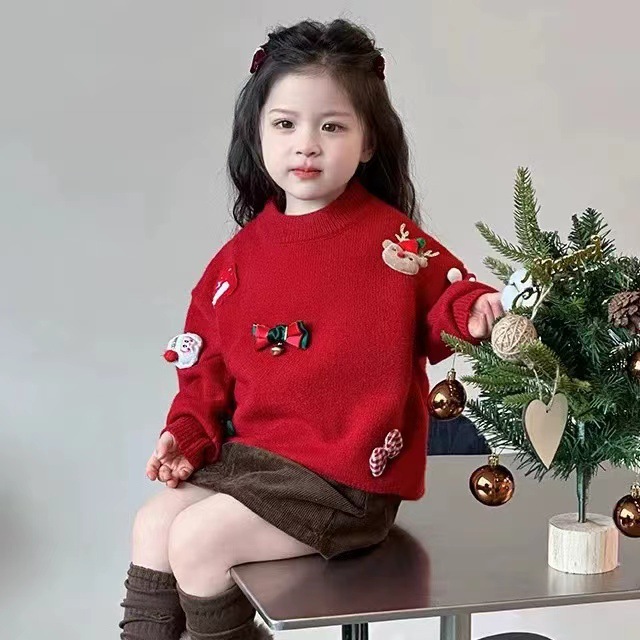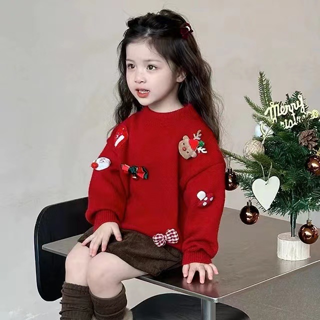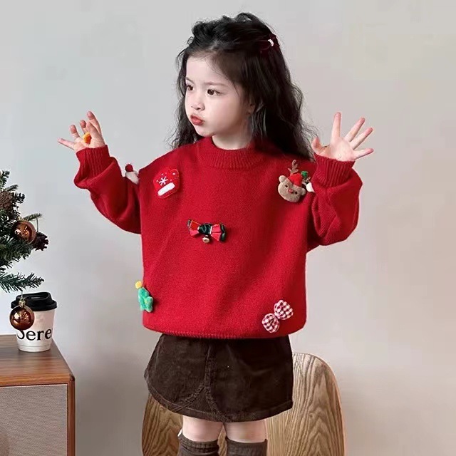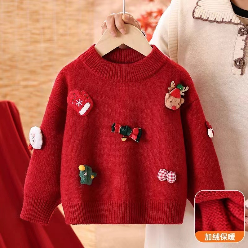 2024 크리스마스 어린이 스웨터 기모 두꺼운 새해 스웨터 소년 소녀 조커 니트 베이스 셔츠