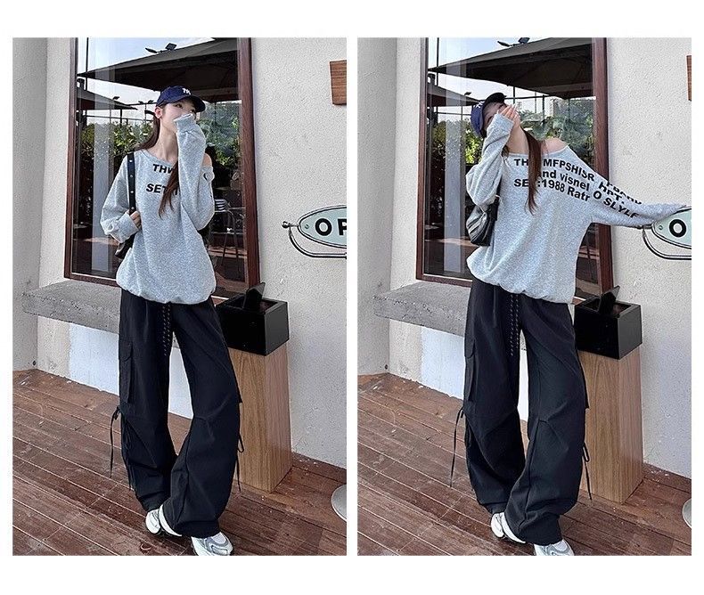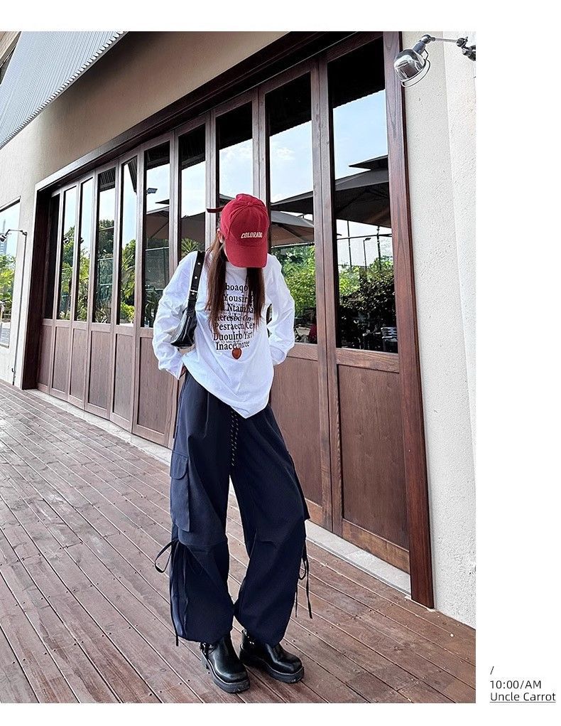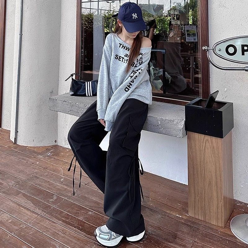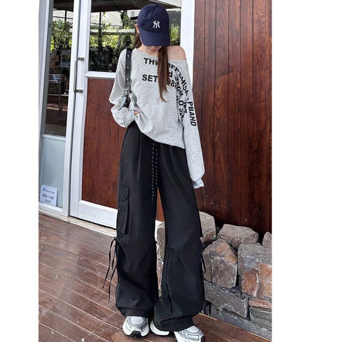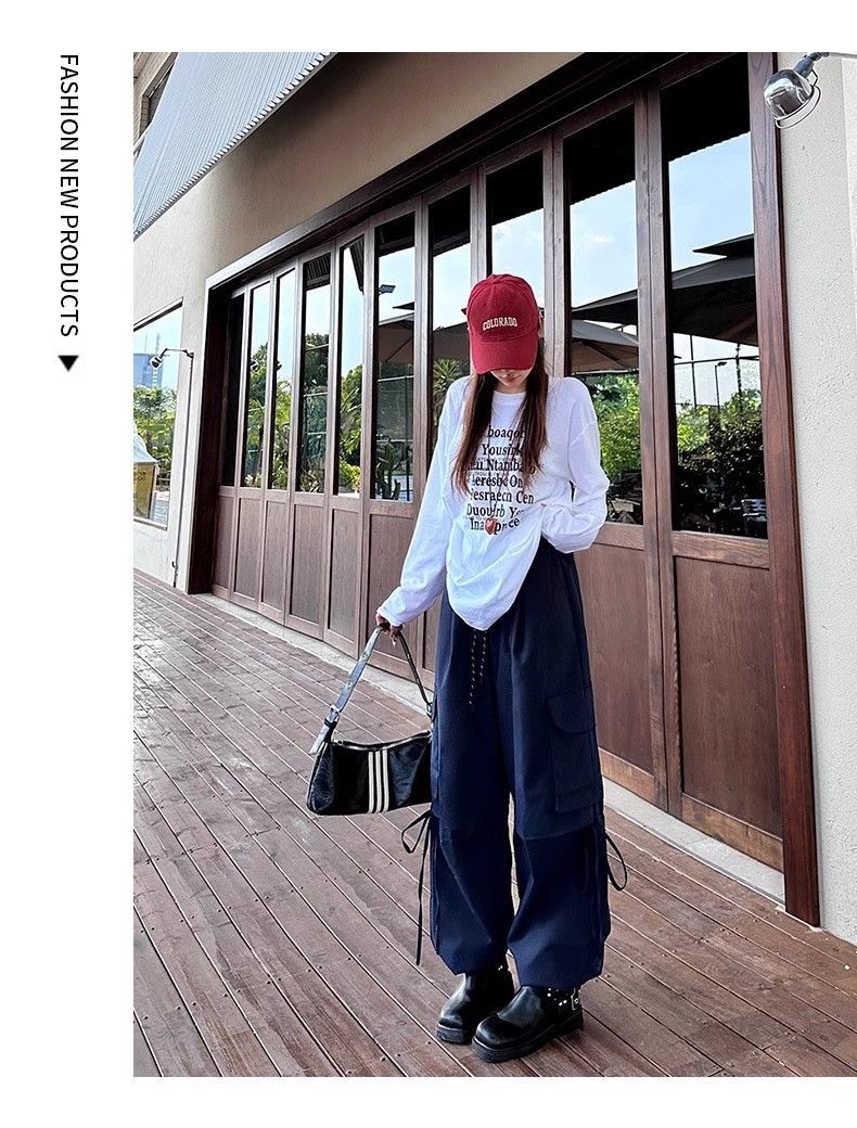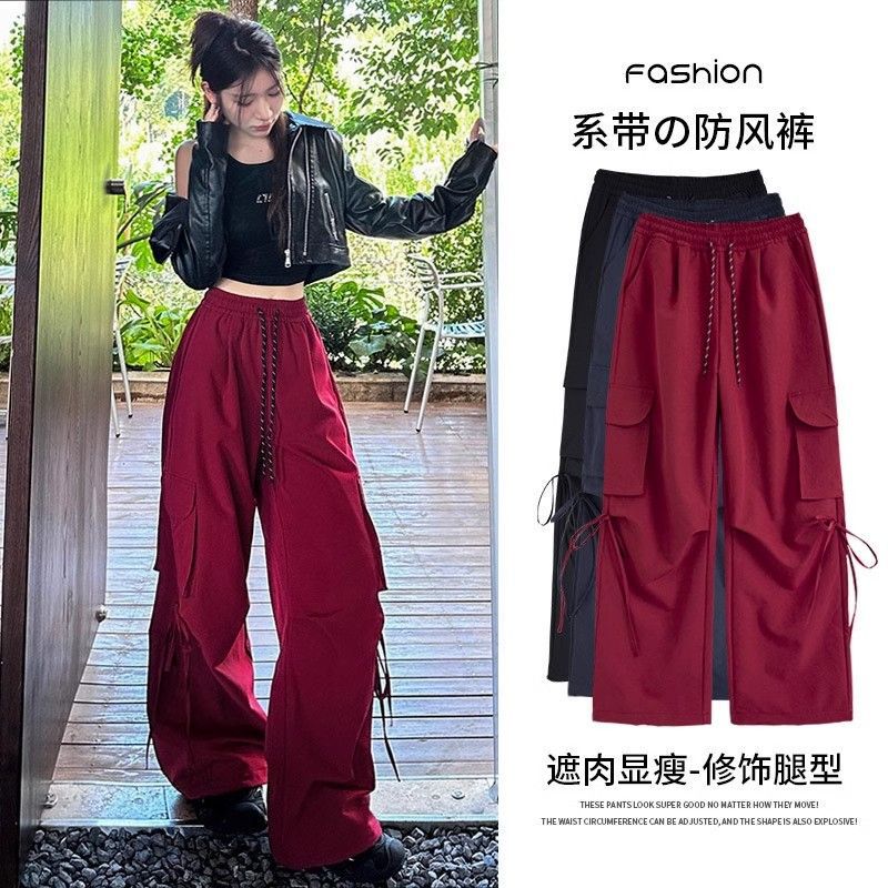 아메리칸 스타일 드로우 스트링 크록 바지 여성용 2024 가을 포켓 스포츠 충전 바지 조정 가능한 레이스 업 마운틴 클라이밍 바지스토어 가기