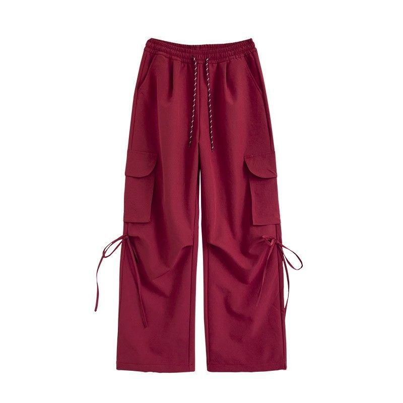 아메리칸 스타일 드로우 스트링 크록 바지 여성용 2024 가을 포켓 스포츠 충전 바지 조정 가능한 레이스 업 마운틴 클라이밍 바지