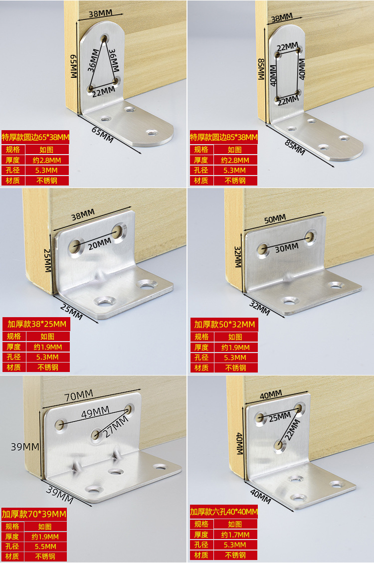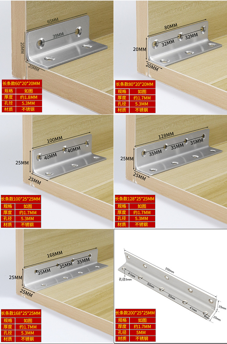 두꺼운 스테인레스 스틸 각도 코드 90 도 직각 고정자 각도 철 가구 고정 조각 직선 조각 연결 삼각형 철스토어 가기