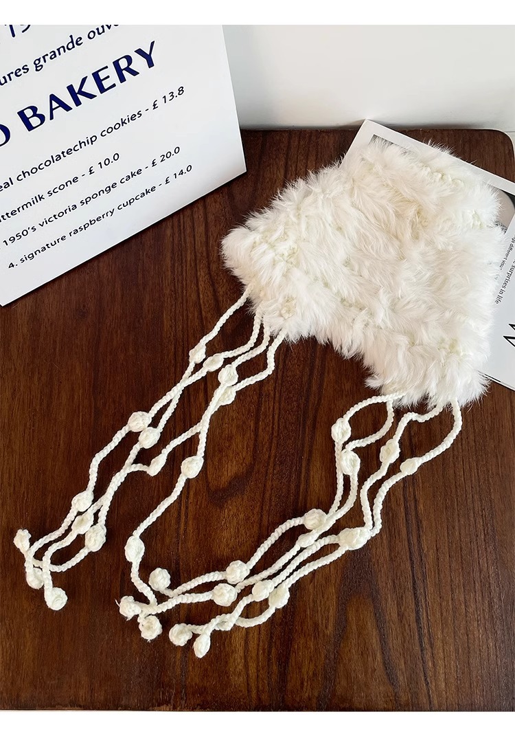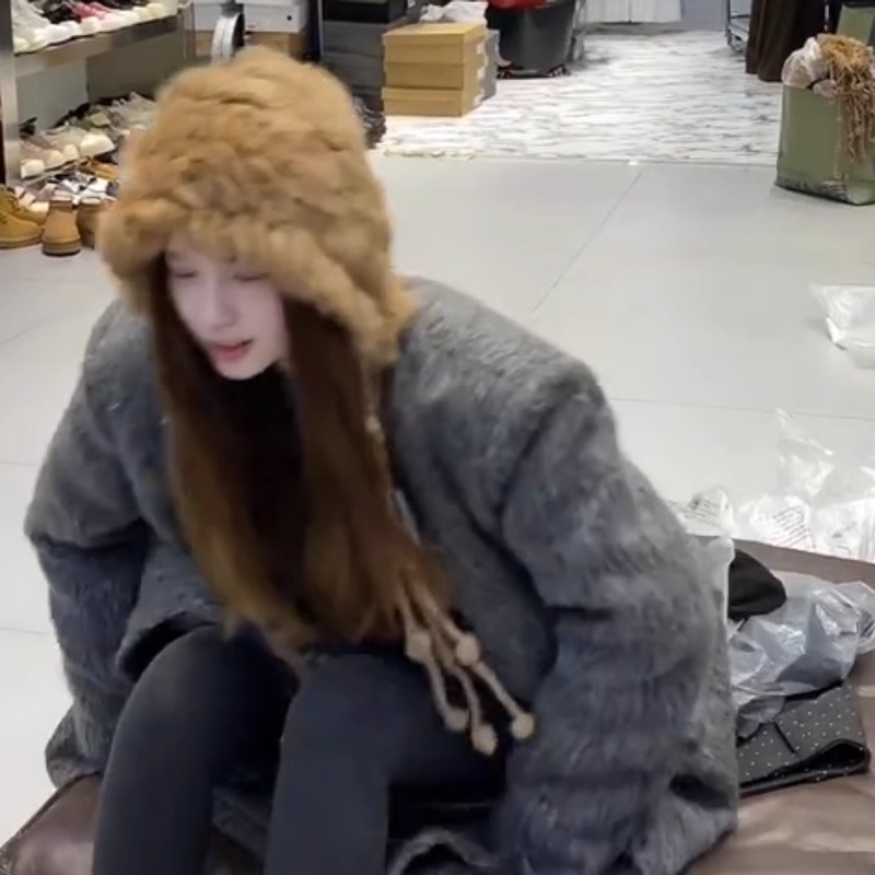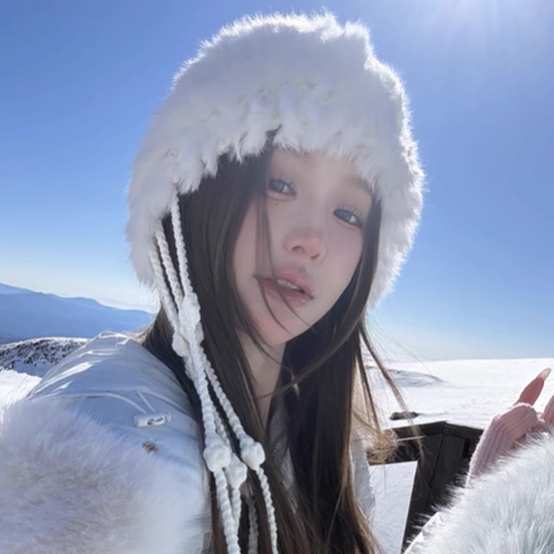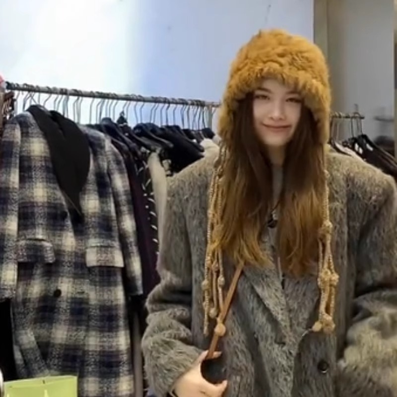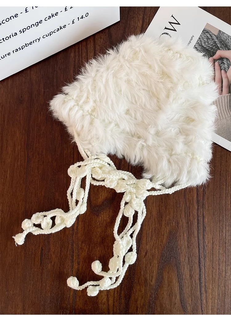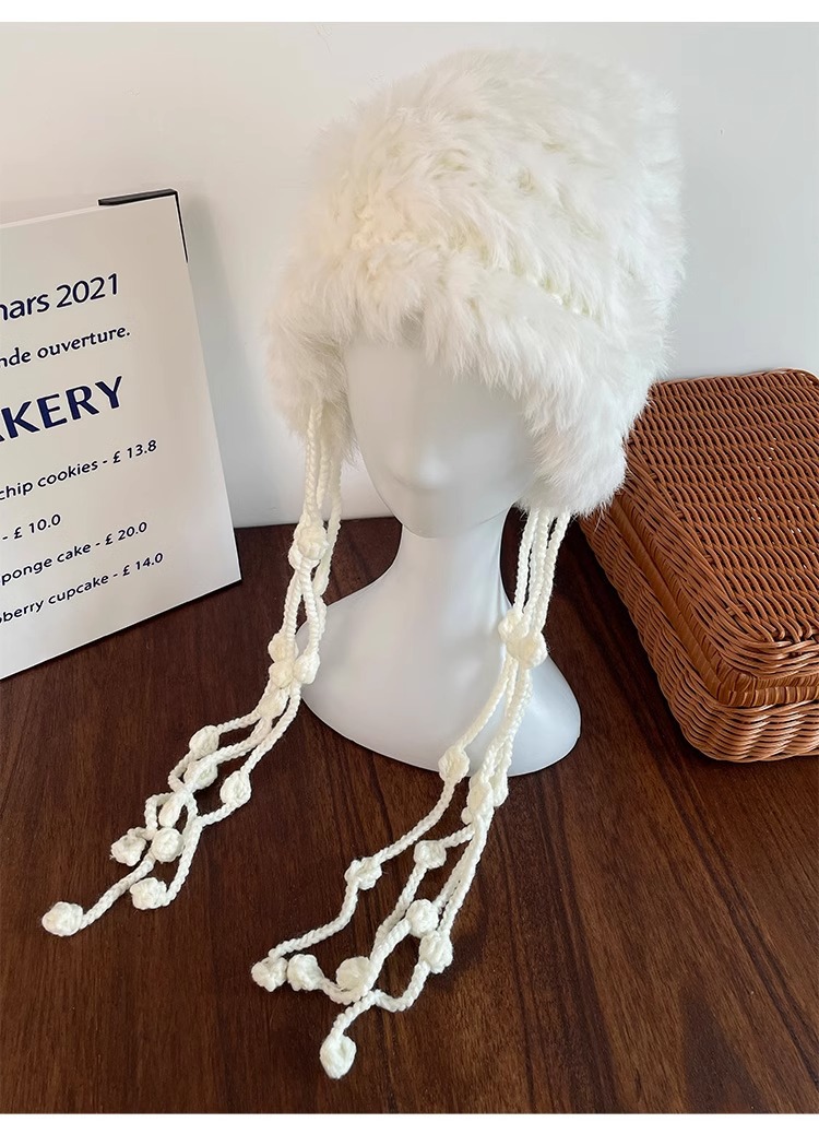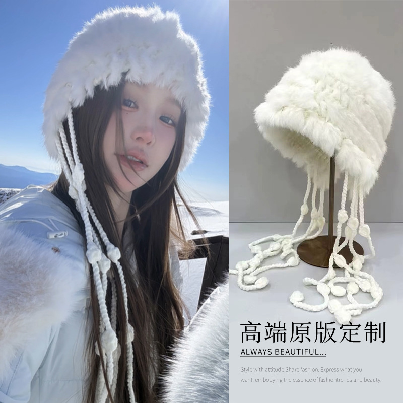 털 ~ 가을과 겨울 흰 토끼 모피 술 모자 2024 새로운 니트 따뜻한 서부 사천 여행 울 모자스토어 가기