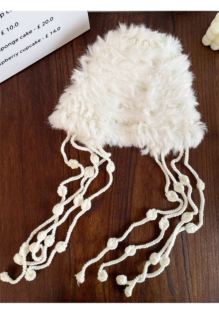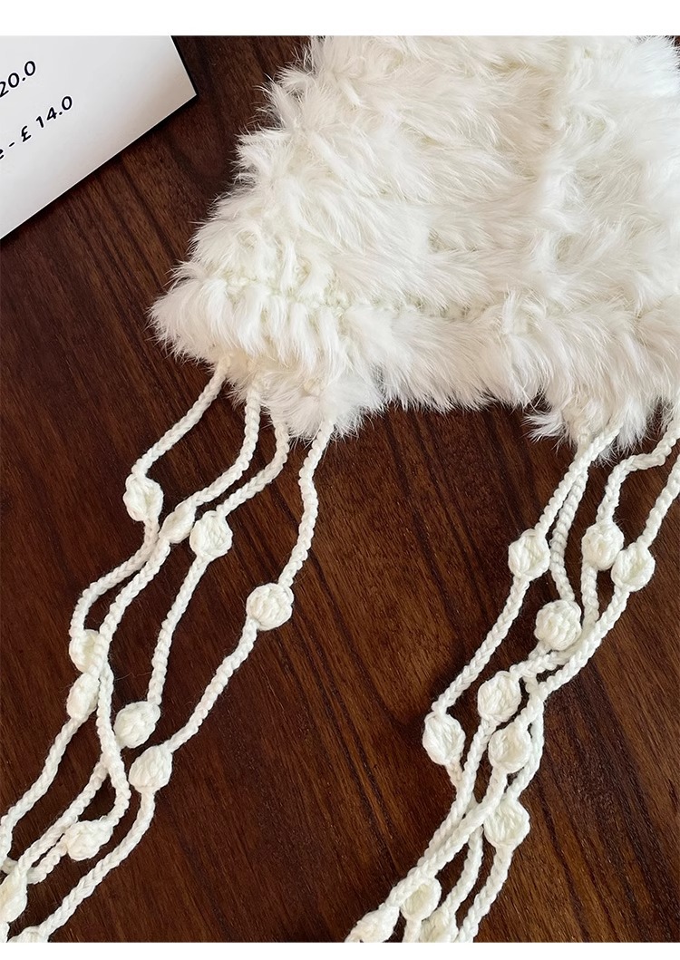털 ~ 가을과 겨울 흰 토끼 모피 술 모자 2024 새로운 니트 따뜻한 서부 사천 여행 울 모자