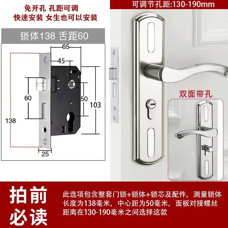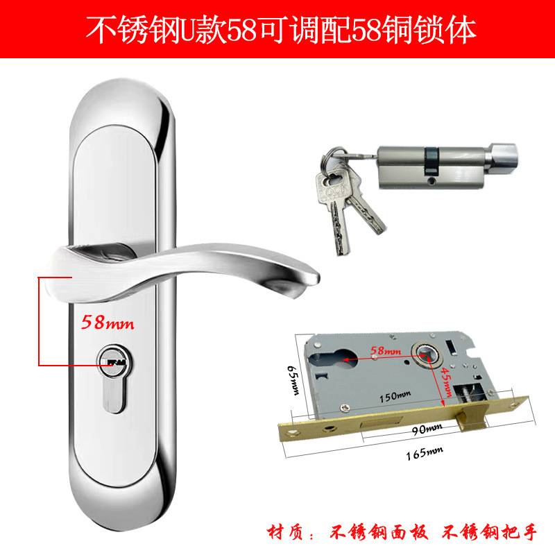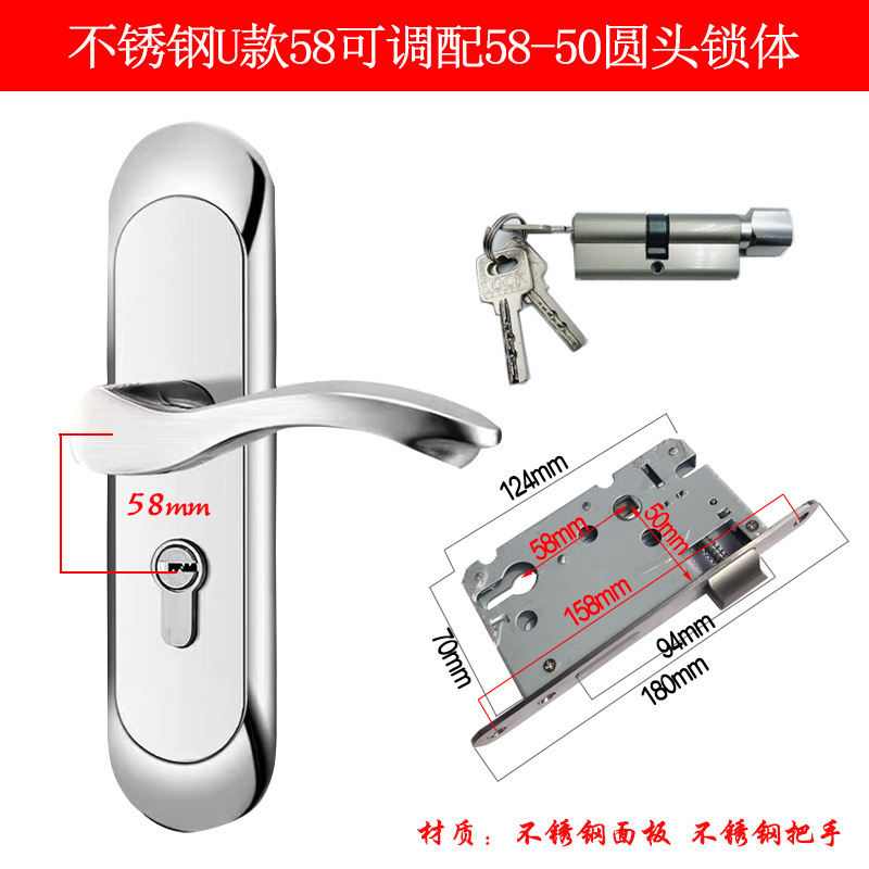 룸 도어 잠금 침실 도어 잠금 스테인레스 스틸 인테리어 도어 도어 잠금 실내 크기 50 잠금 바디 유니버설 변경 구멍 없음