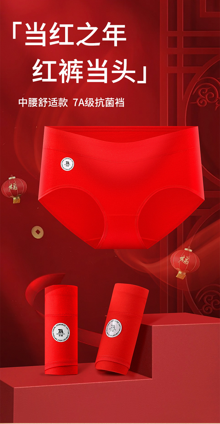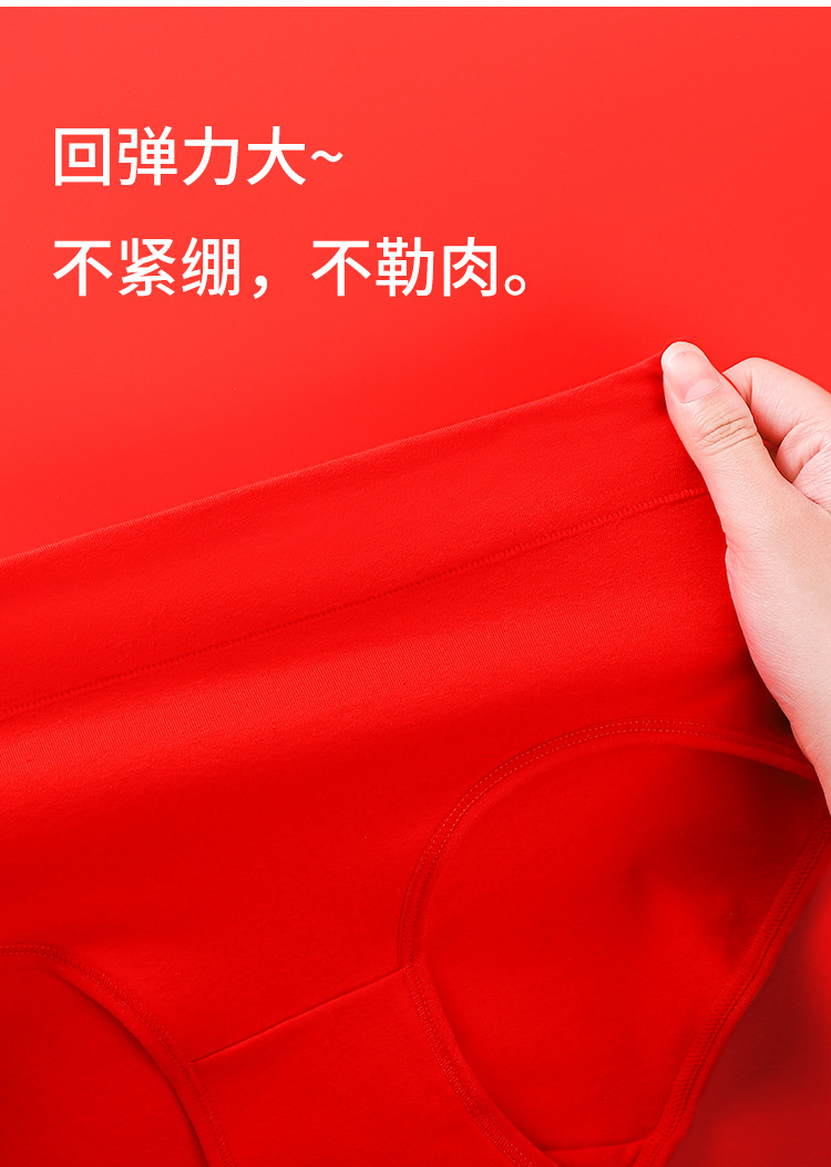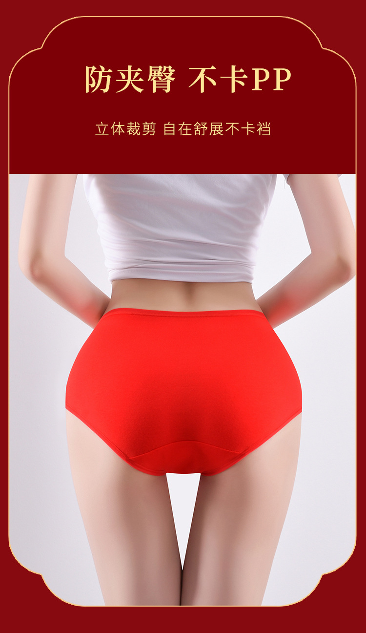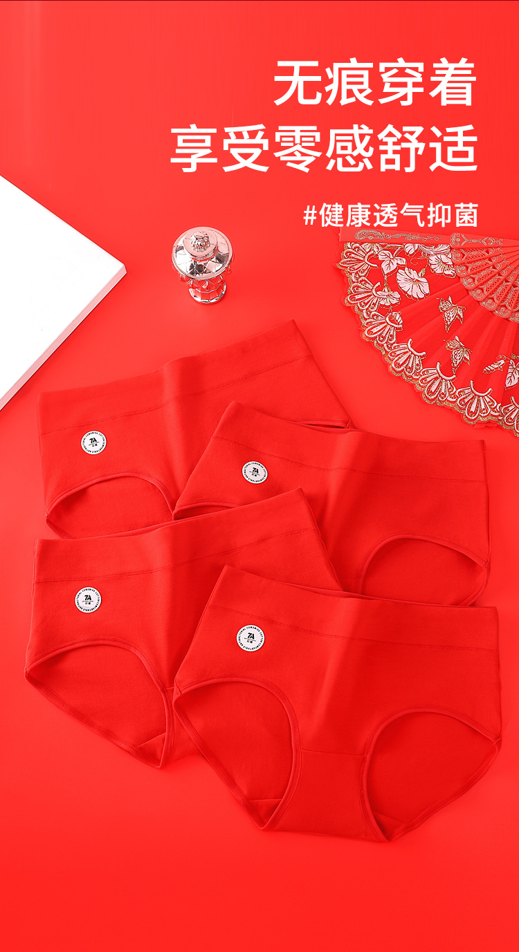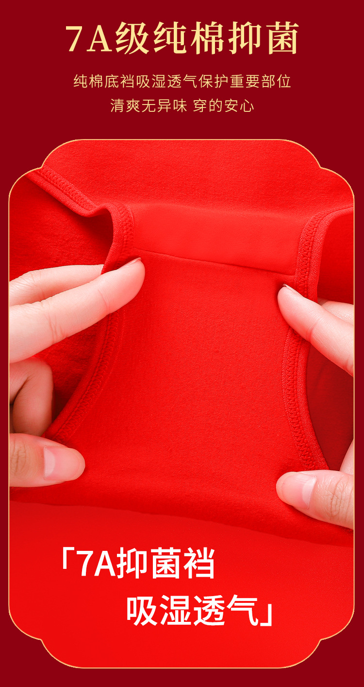 Benmingnian Mid-Waist Pure Cotton Big Red 속옷 여성의 7A 항균 축제 부드럽고 편안한 여성 여행