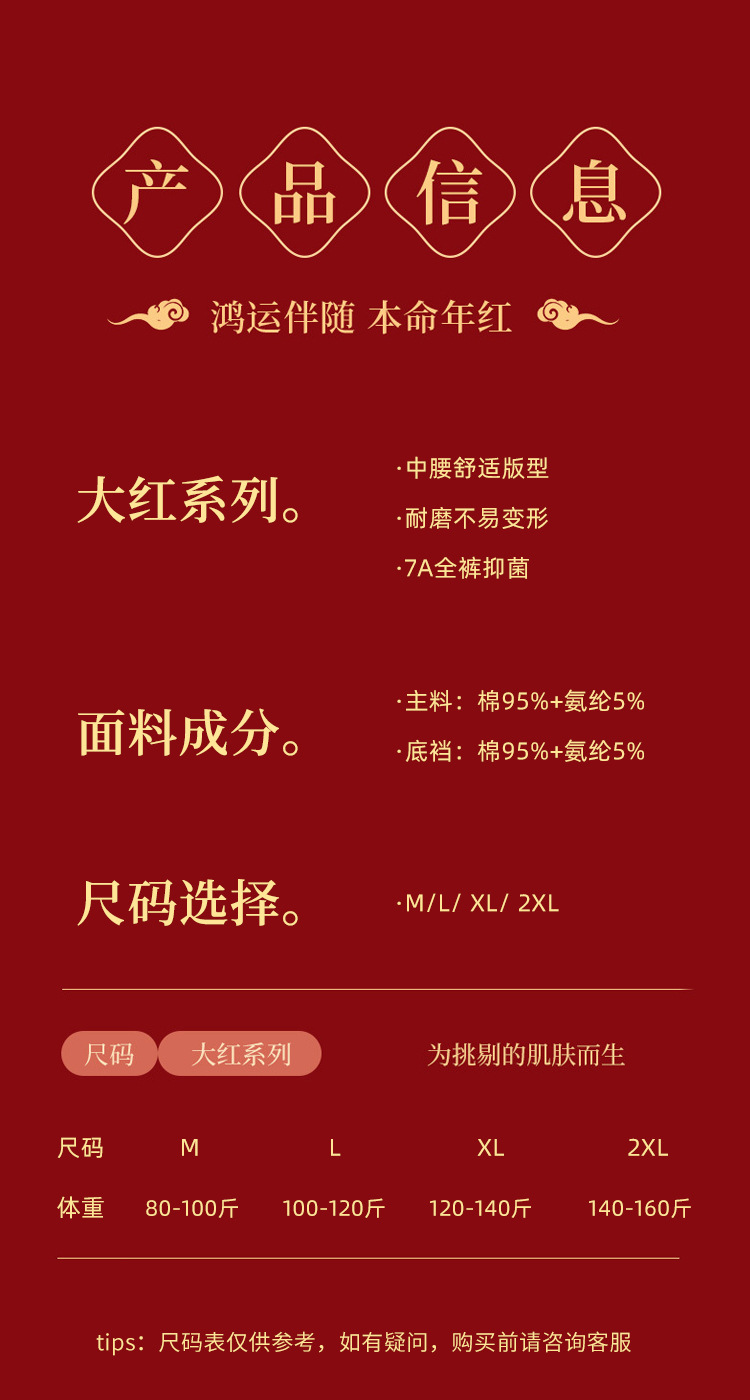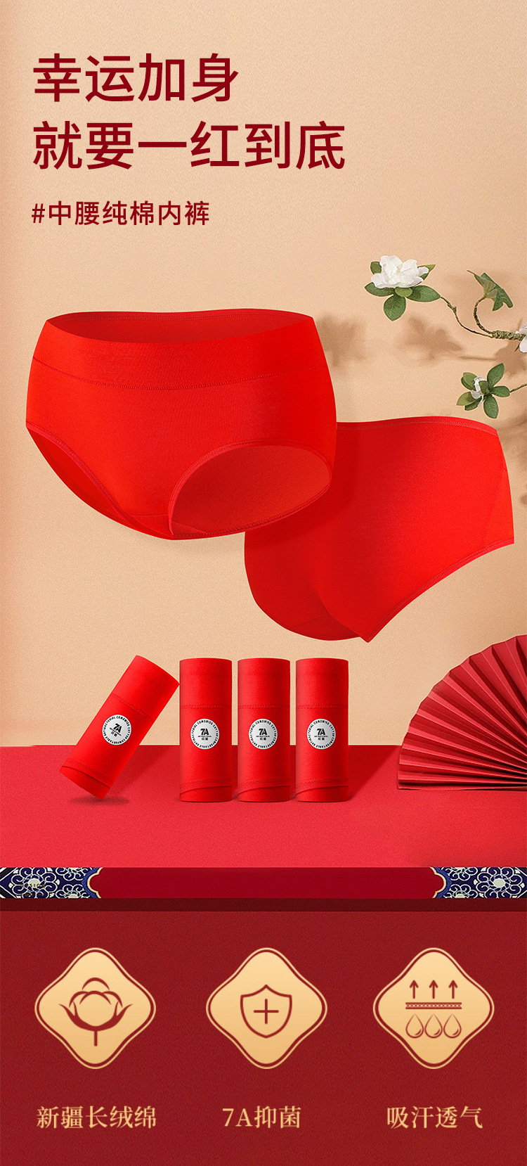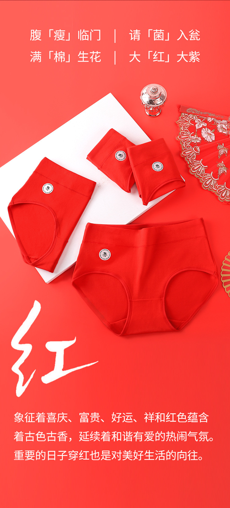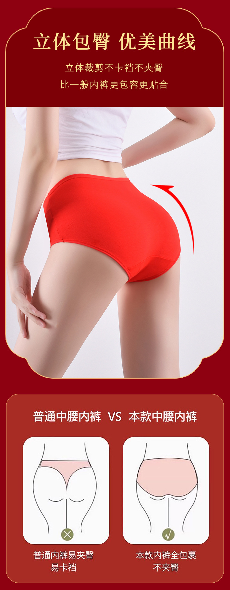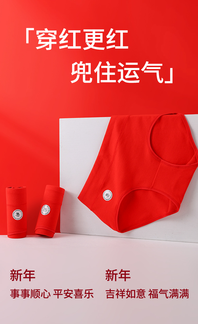 Benmingnian Mid-Waist Pure Cotton Big Red 속옷 여성의 7A 항균 축제 부드럽고 편안한 여성 여행