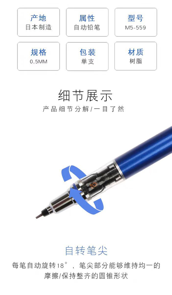 일본 UNI 미쓰비시 자동 연필 M5-559 리필 자동 회전 쿠루 토가 학생 연필 0.5mm