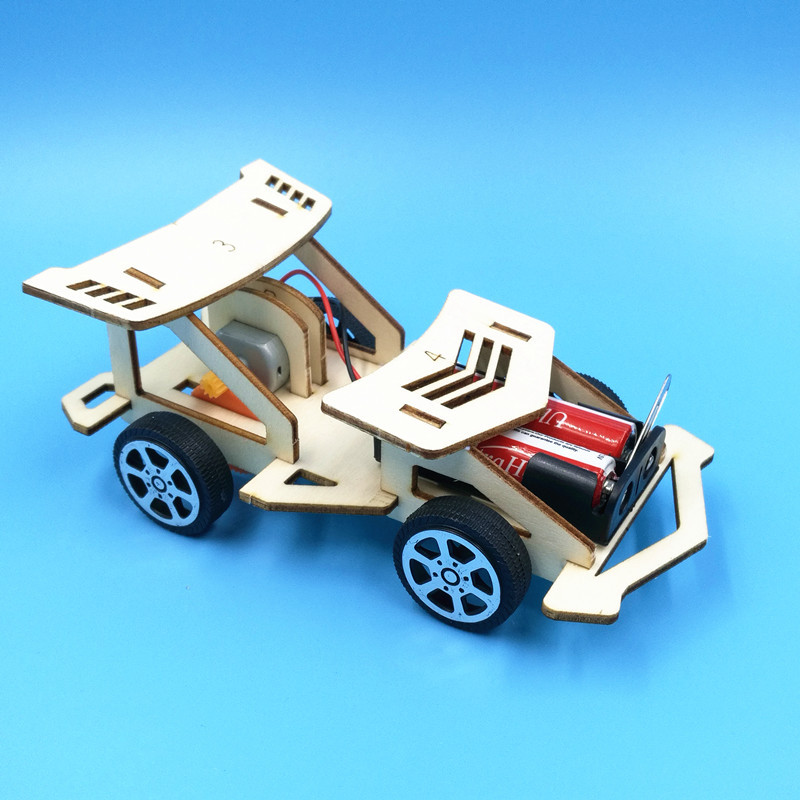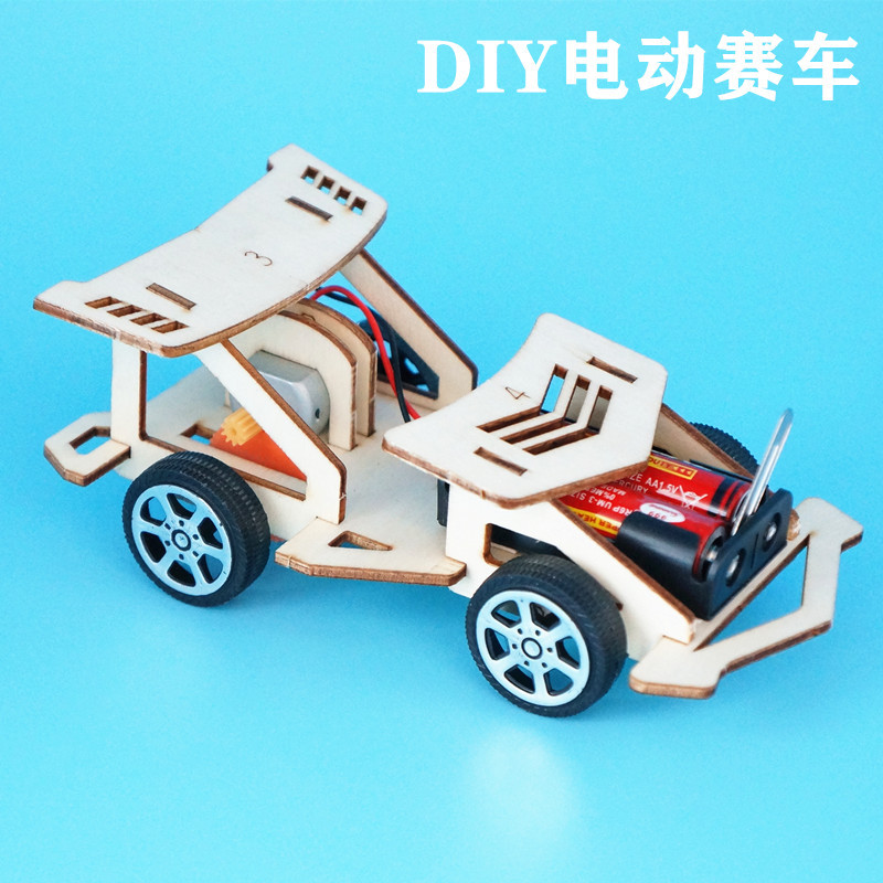 창의적인 나무 전동 자동차 초등학생 과학 기술 소형 제작 발명품 조립 과학 실험 장난감 수제 재료스토어 가기