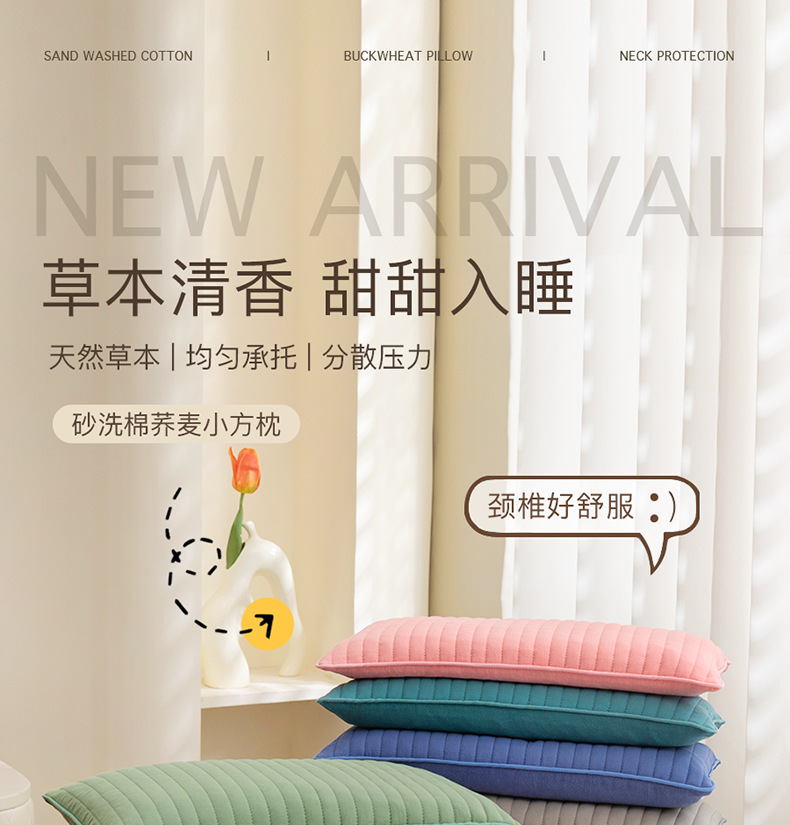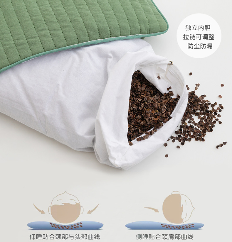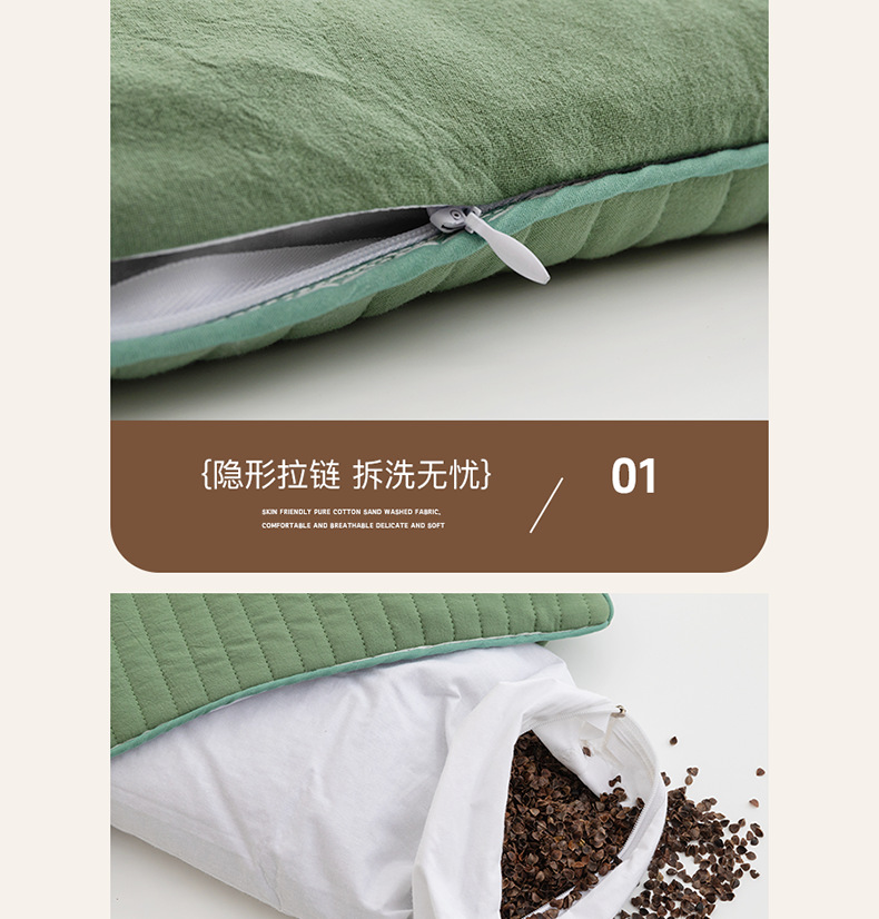 샌드 워시 코튼 메밀 베개 전체 메밀 쉘 필링 베개 코어 플러스 베개 케이스 성인 학생 어린이 단일 자궁 경부 베개 코어