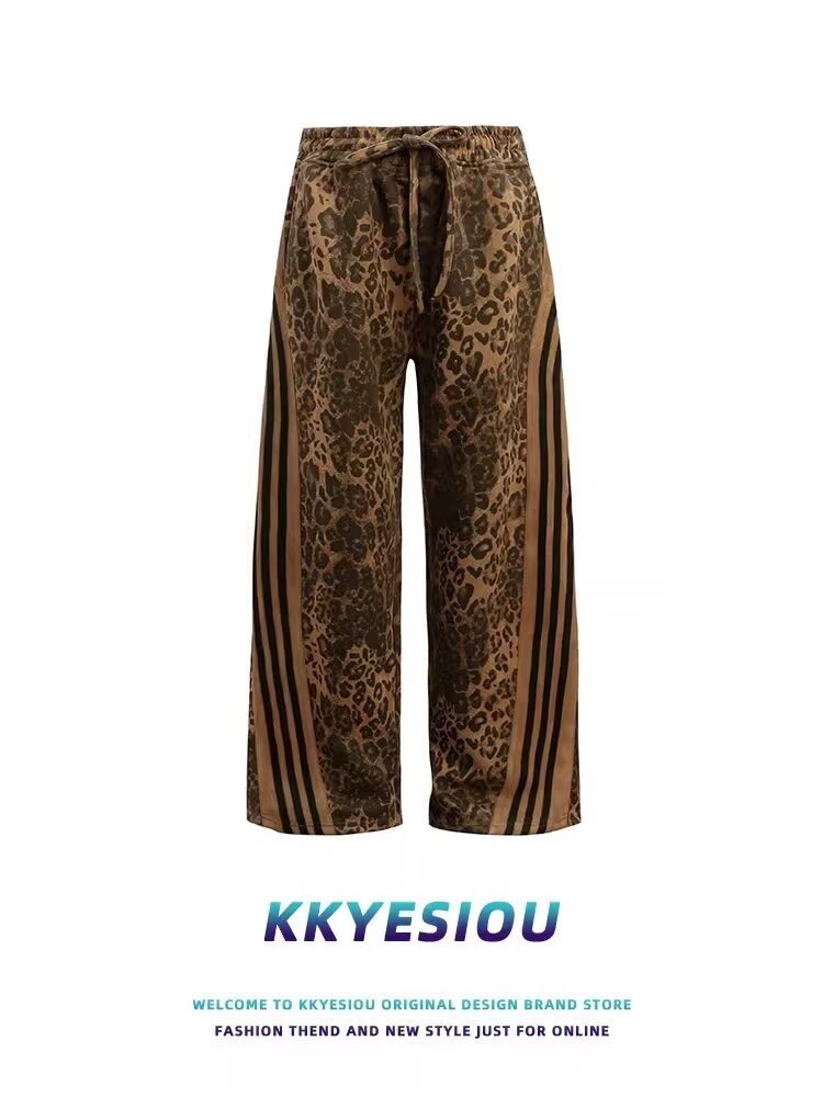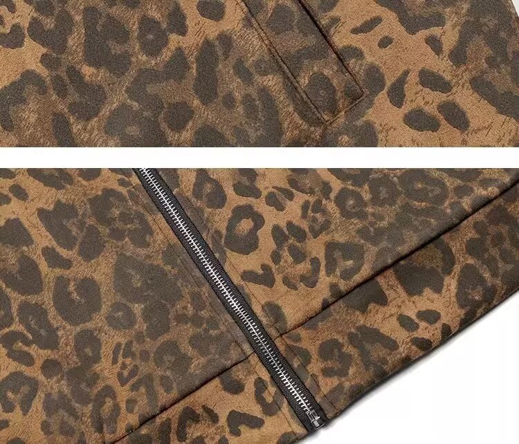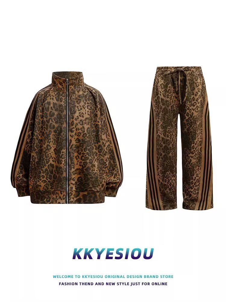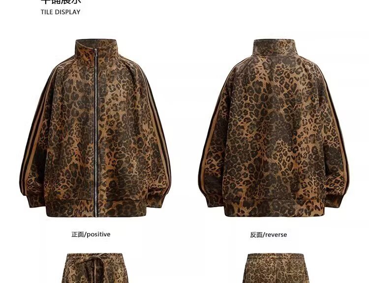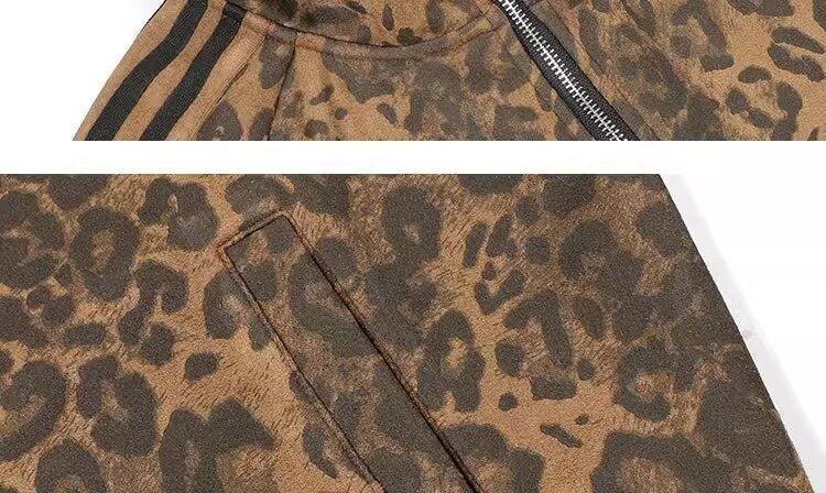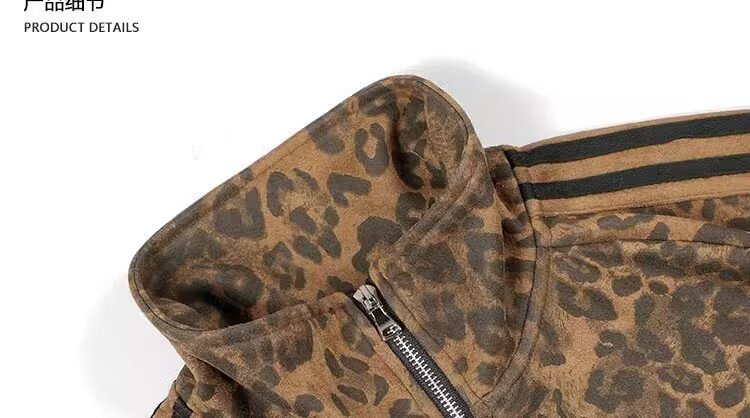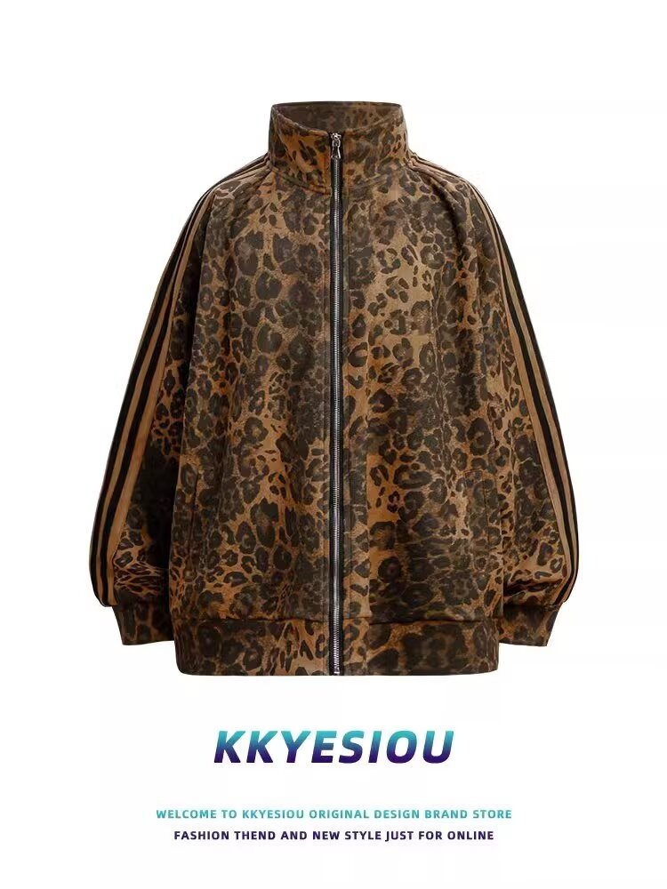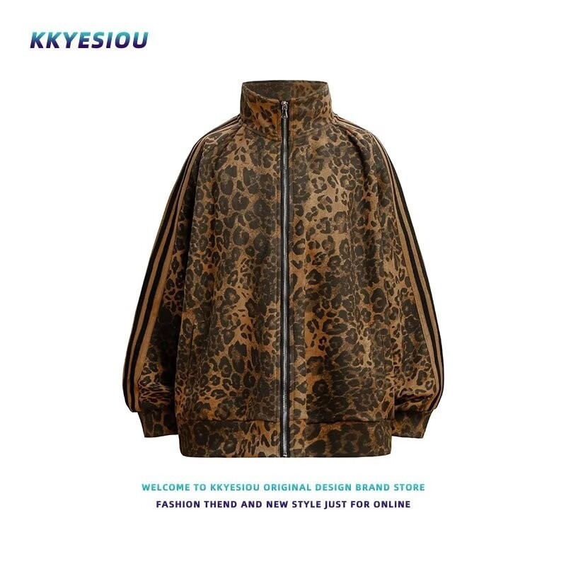 미국 레트로 트렌디 브랜드 올매치 레오파드 디지털 인쇄 줄무늬 지퍼 스포츠 재킷 남성과 여성