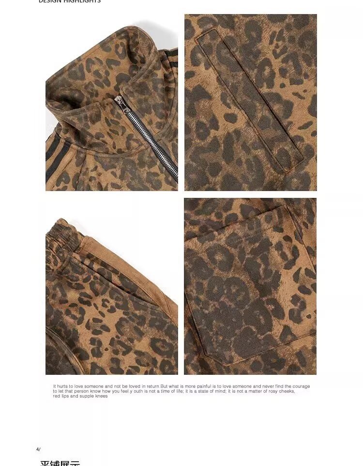 미국 레트로 트렌디 브랜드 올매치 레오파드 디지털 인쇄 줄무늬 지퍼 스포츠 재킷 남성과 여성스토어 가기