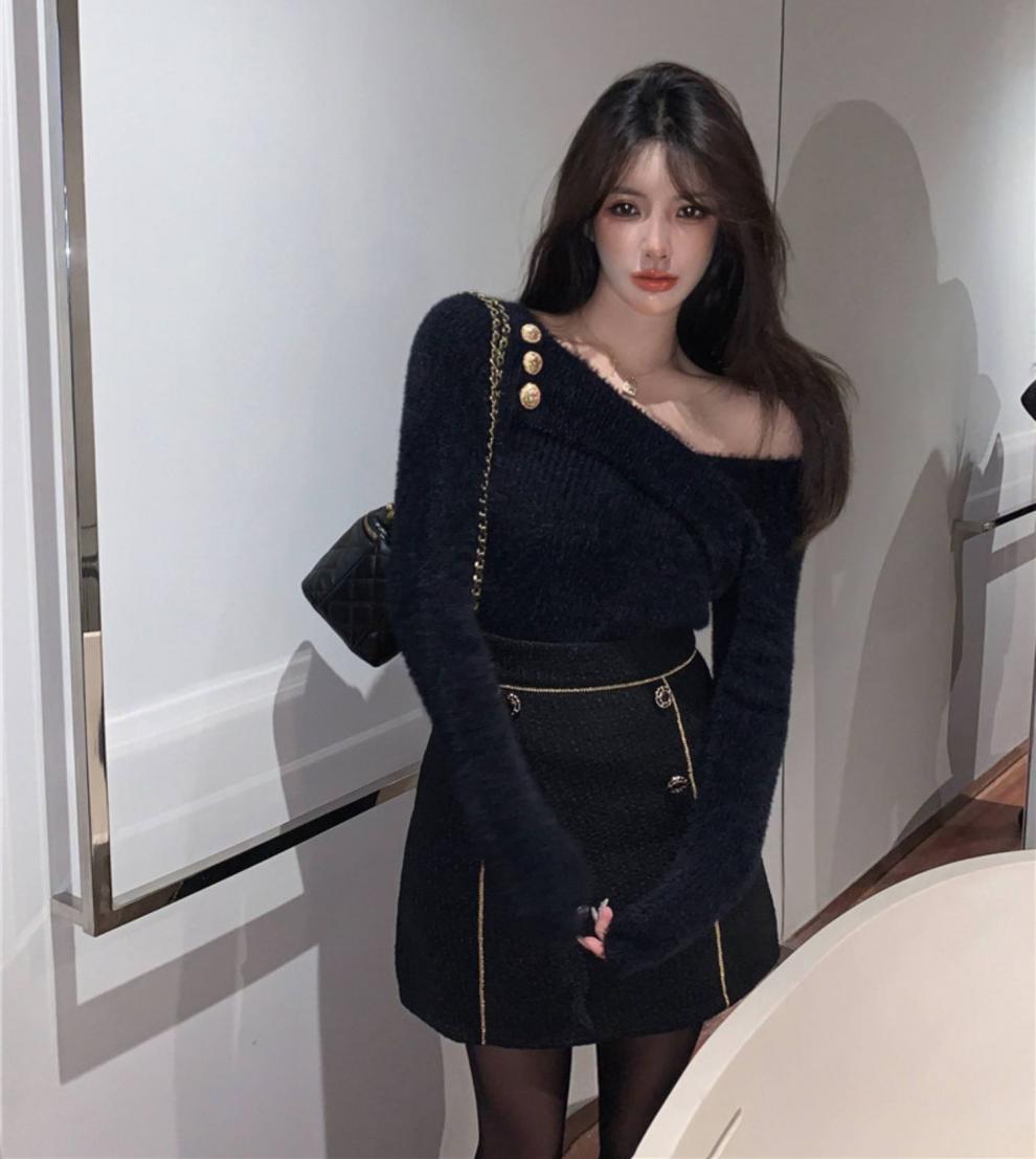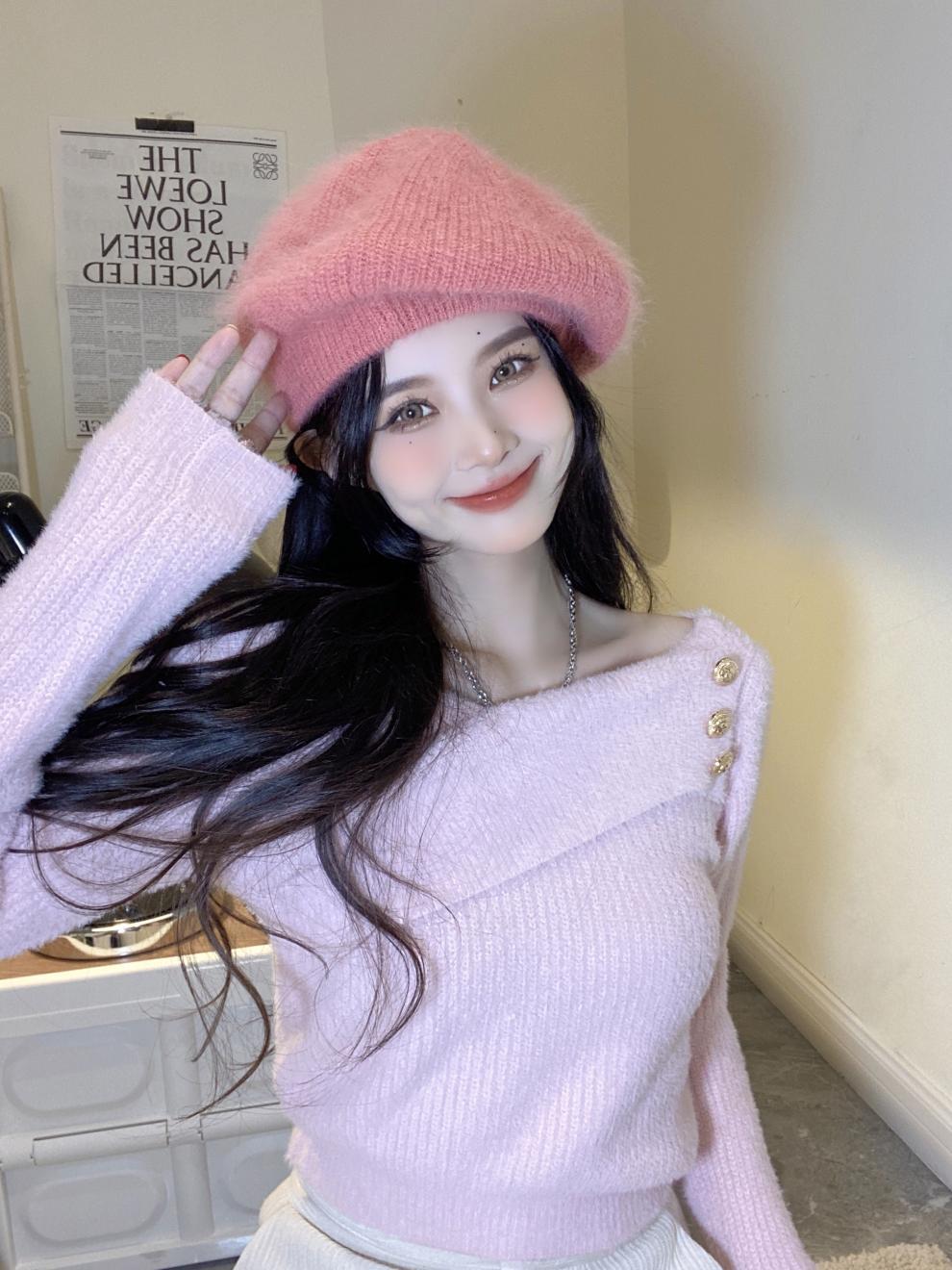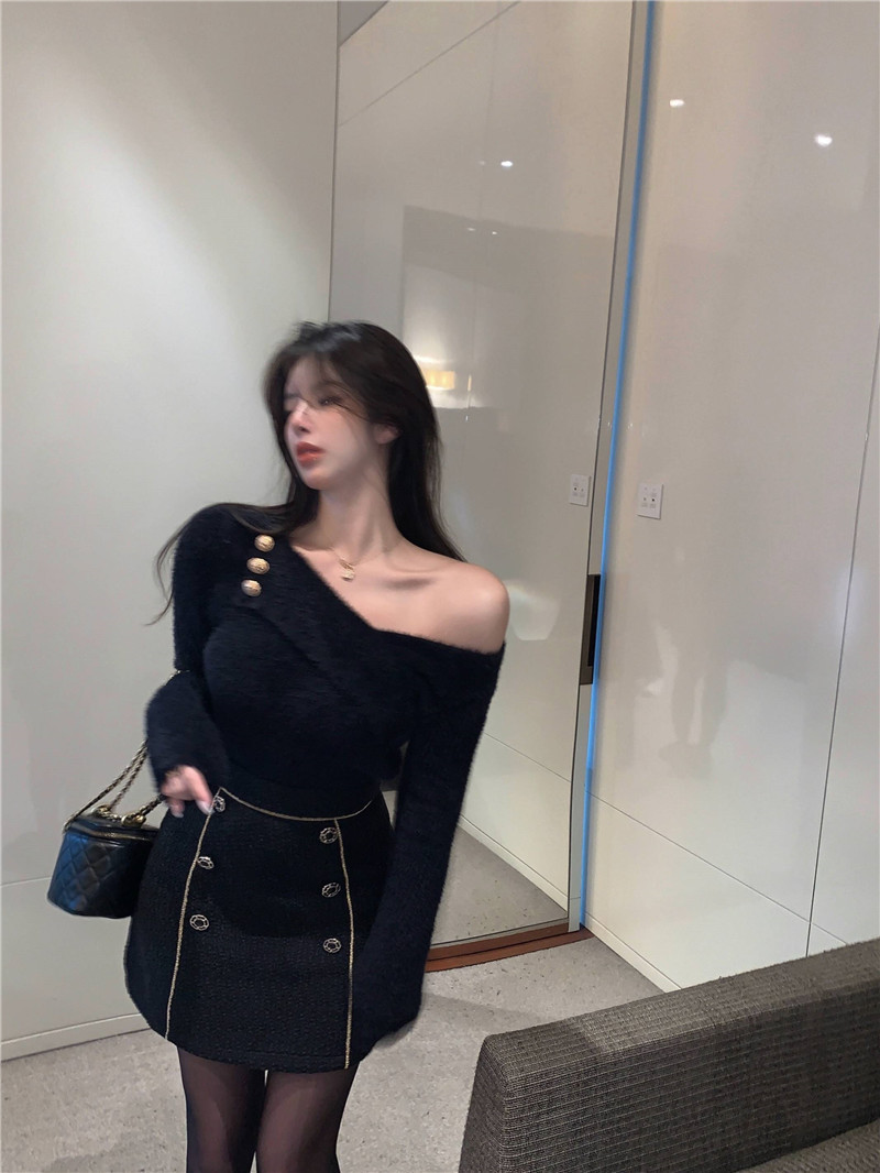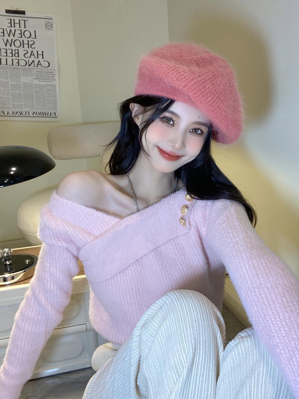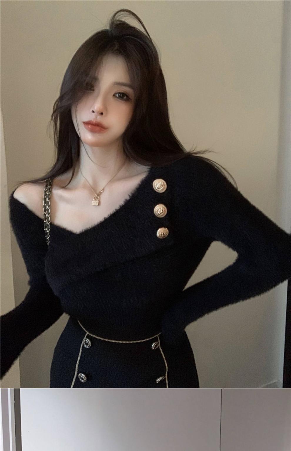 순수 모조 밍크 양털 슬림핏 긴팔 니트 스웨터 여성용 봄과 가을 뉴 크로스 V 넥 쇼트 스웨터베이스 셔츠 탑스토어 가기