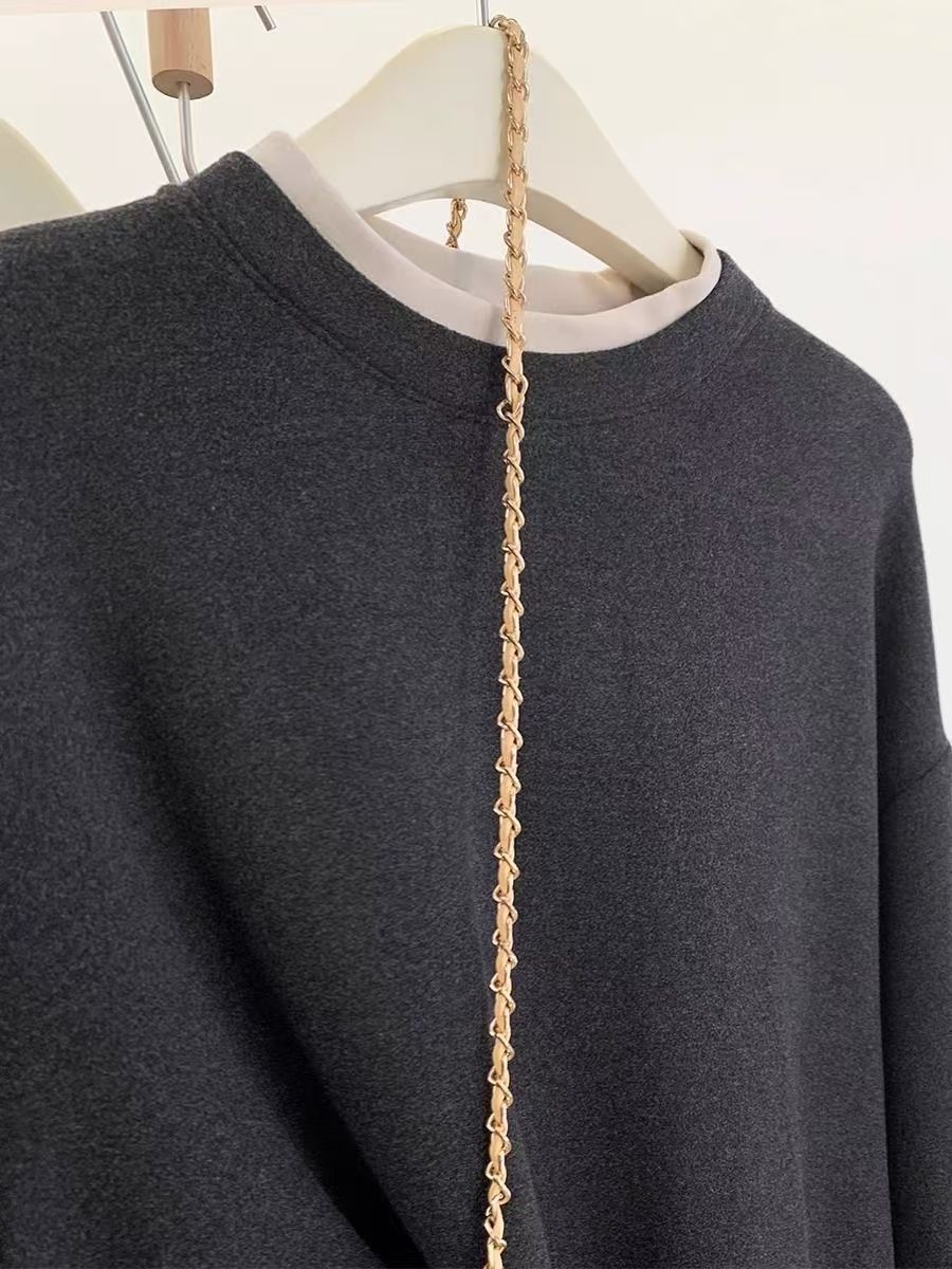 플러스 사이즈 벨벳 가짜 투피스 바느질 긴팔 티셔츠 여성용 가을과 겨울 느슨한 슬리밍 내부 샌딩베이스 셔츠 최고 트렌디스토어 가기