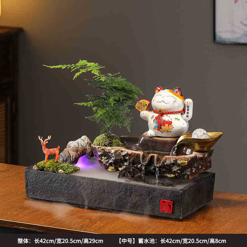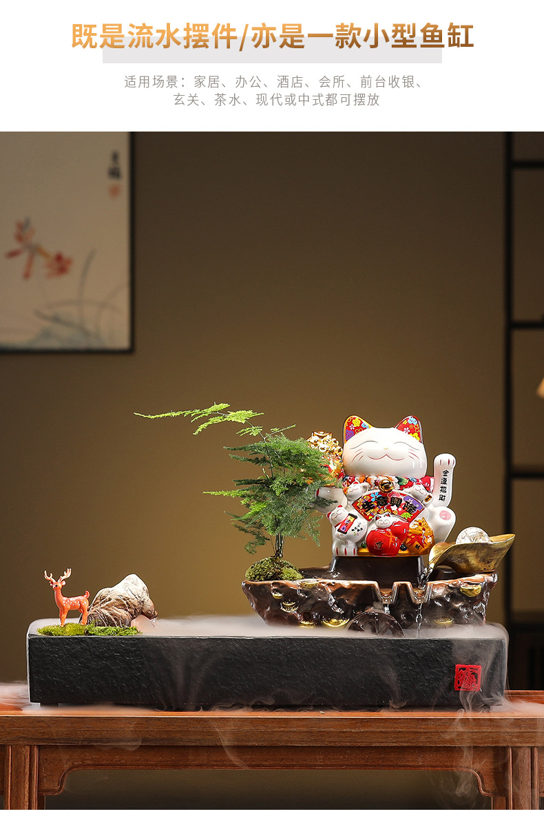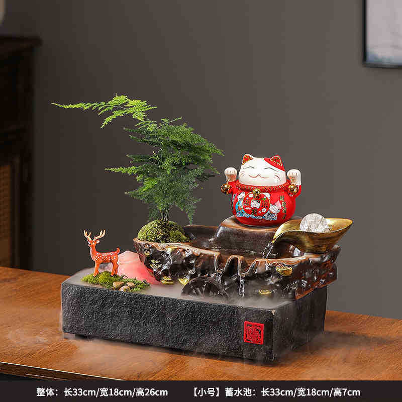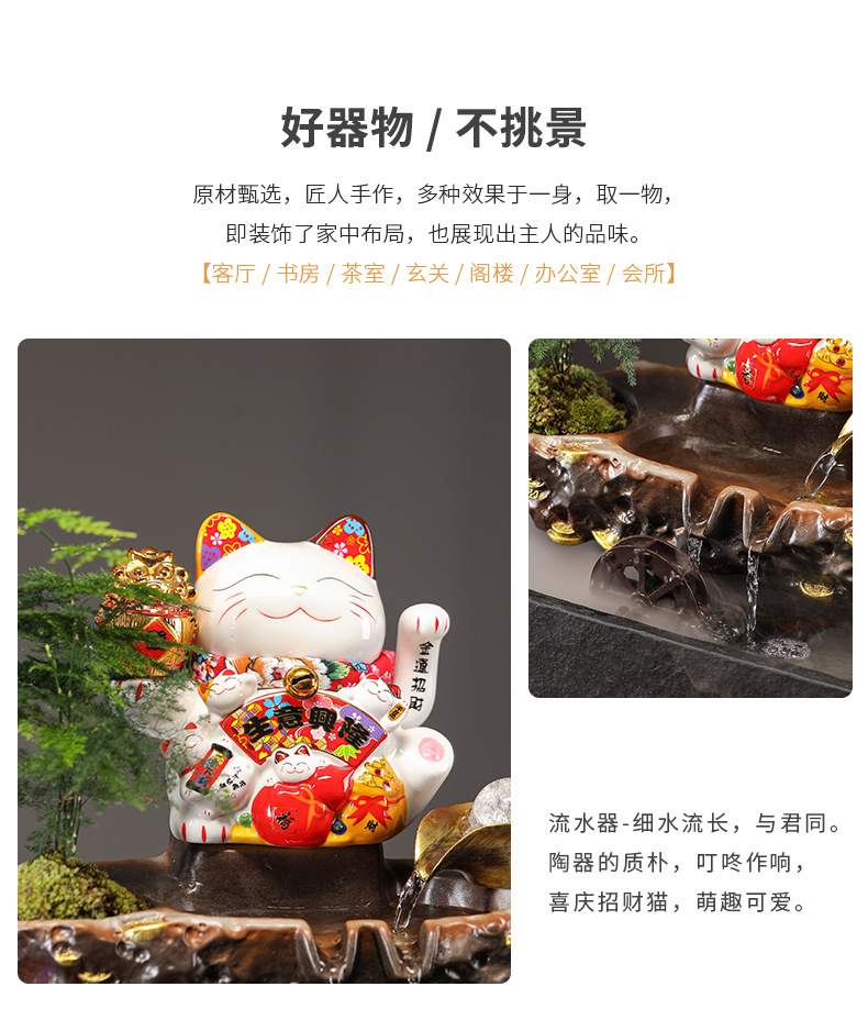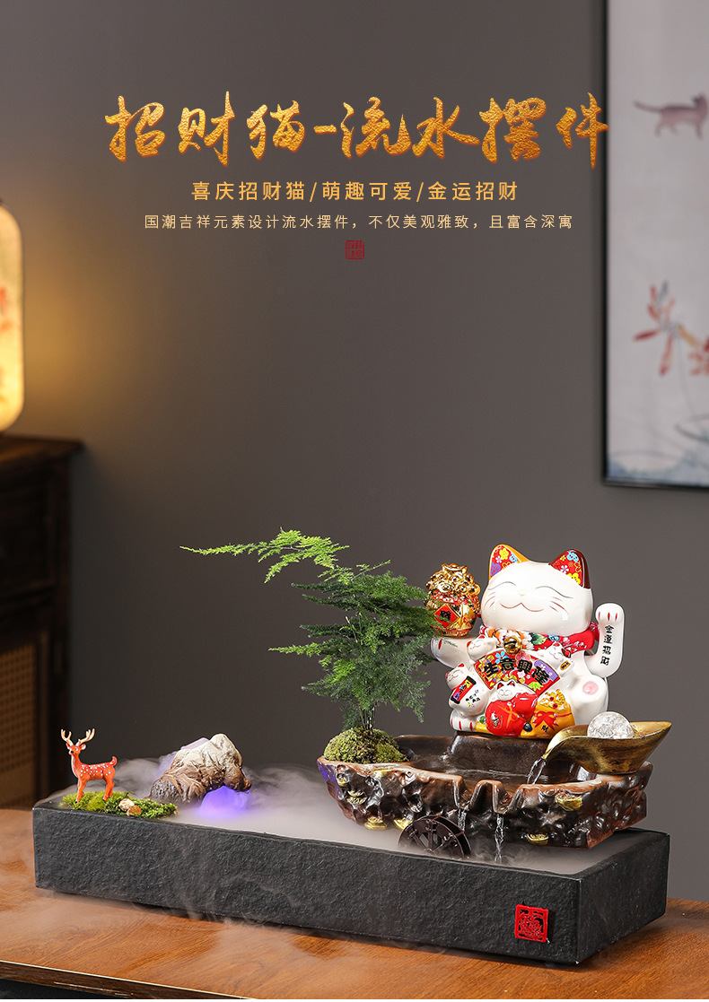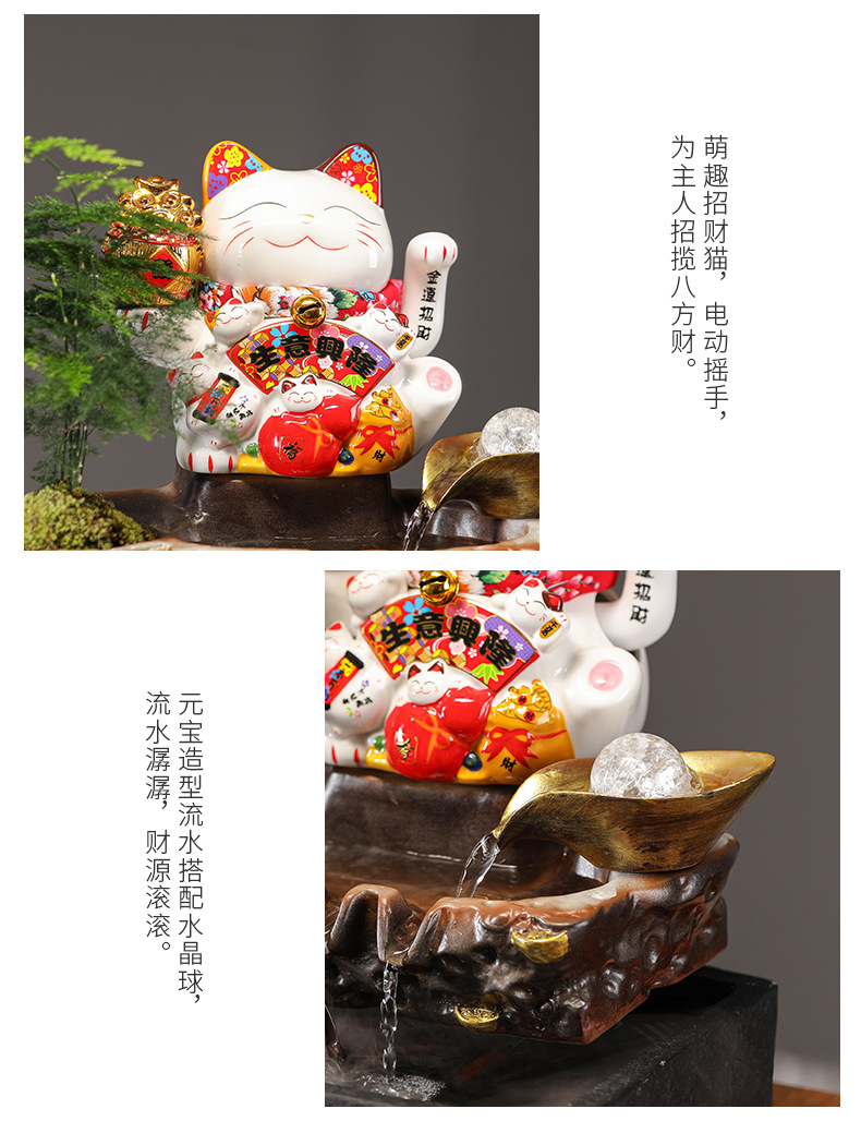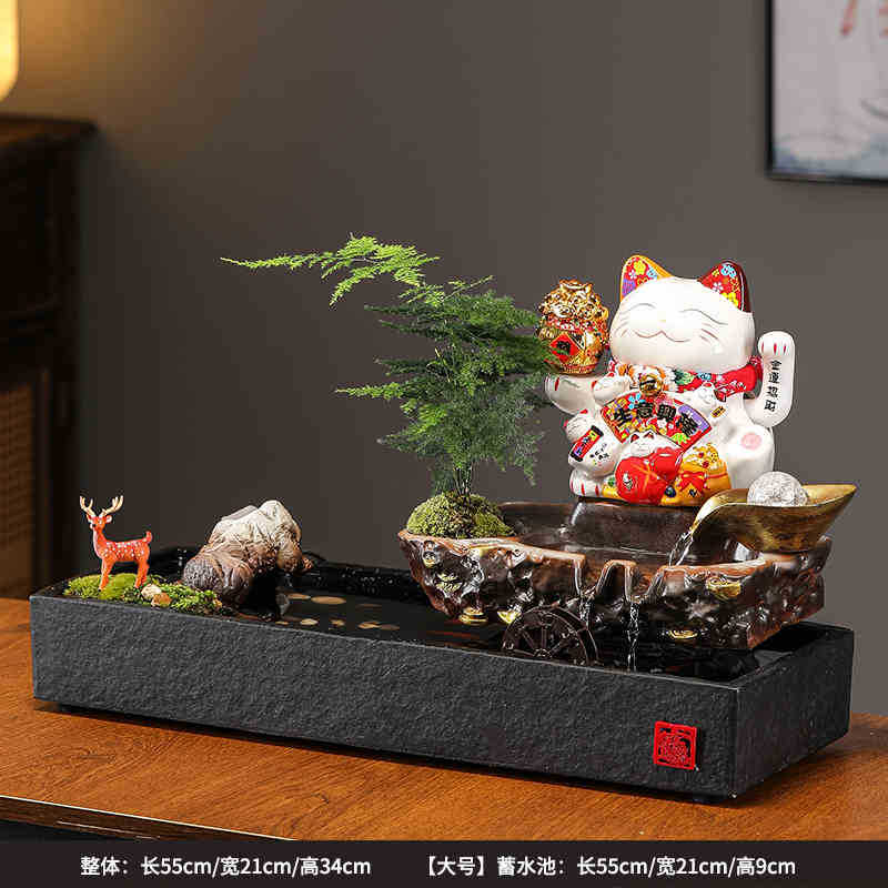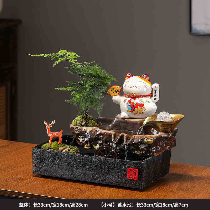 • 01-소형 [사업이 호황을 누리고 있다] 행운의 고양이 흐르는 물 장식품