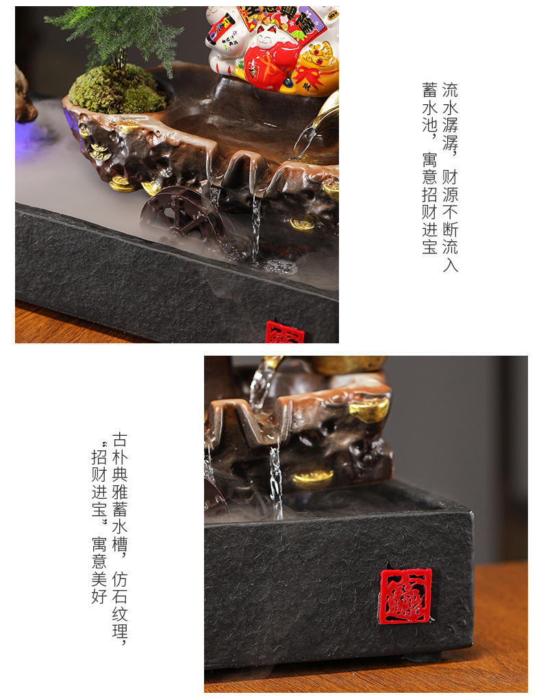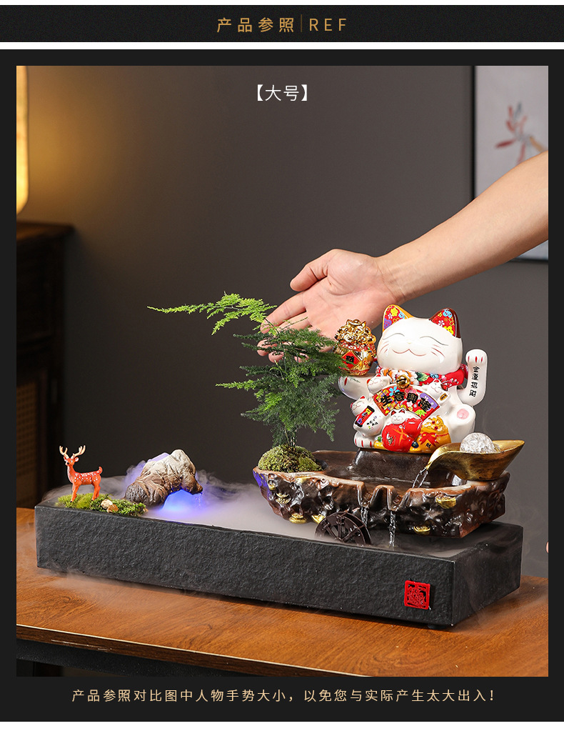 • 11-대형 [장사가 호황] 행운의 고양이 흐르는 물 장식품_분무기