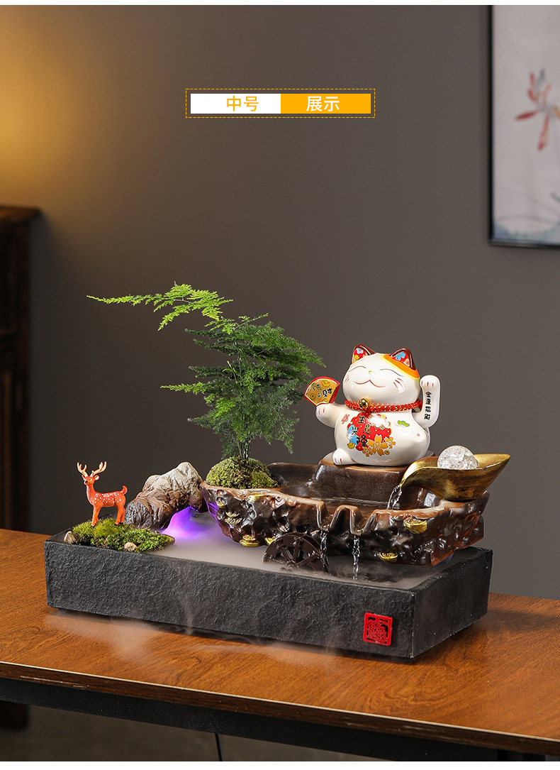 • 02-중형 [장사가 호황] 행운의 고양이 흐르는 물 장식품