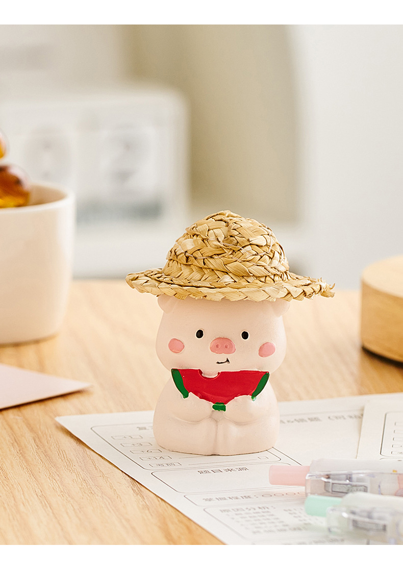 귀여운 만화 창조적 인 밀짚 모자 돼지 정서적 안정성 데스크탑 작은 장식품 사무실 워크 스테이션 장식 생일 선물