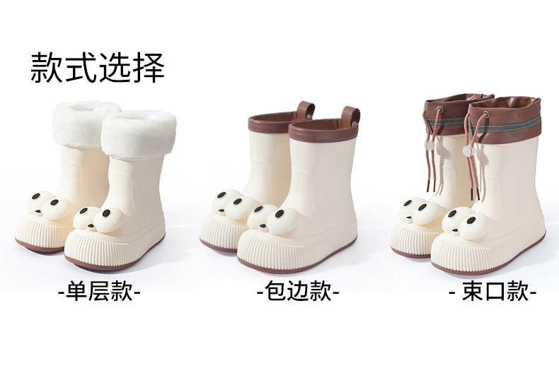 부모-자식 비 부츠 여성 패션 큰 눈 비 부츠 중간 배럴 두꺼운 밑창 사계절 방수 어린이 물 신발