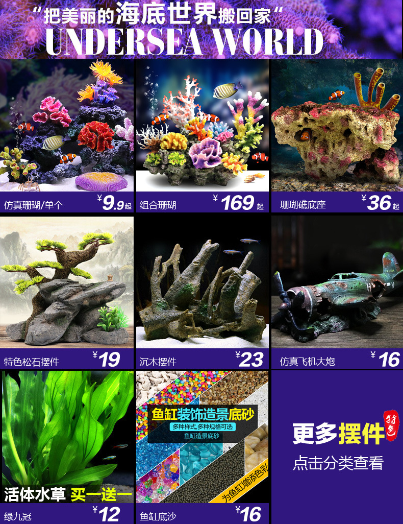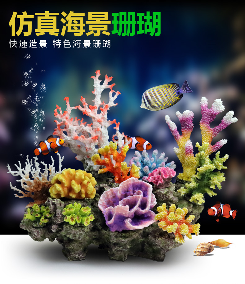 국경 간 수조, 석가산, 산호 조경, 수족관, 시뮬레이션 해수 장식, 조개, 가짜 수생 식물, 산호초 물스토어 가기