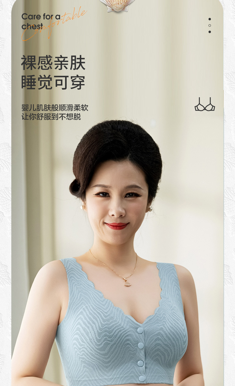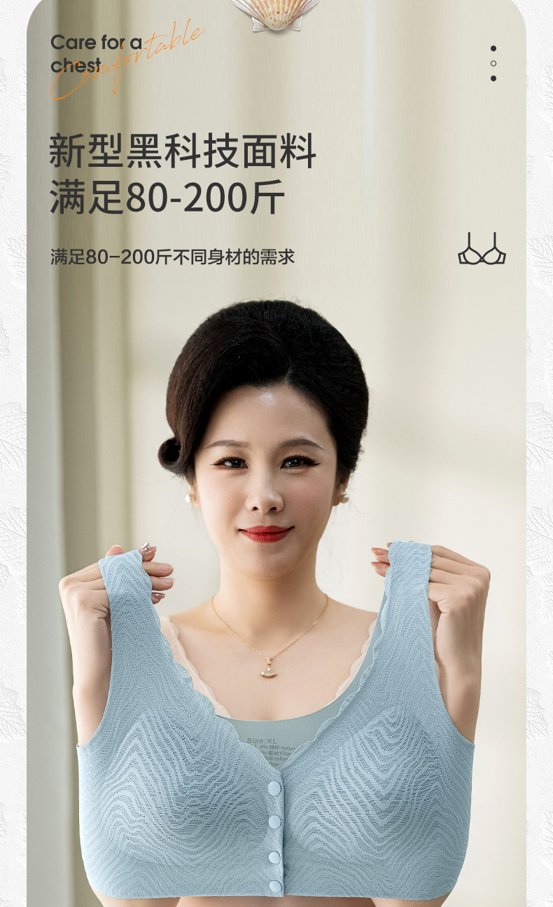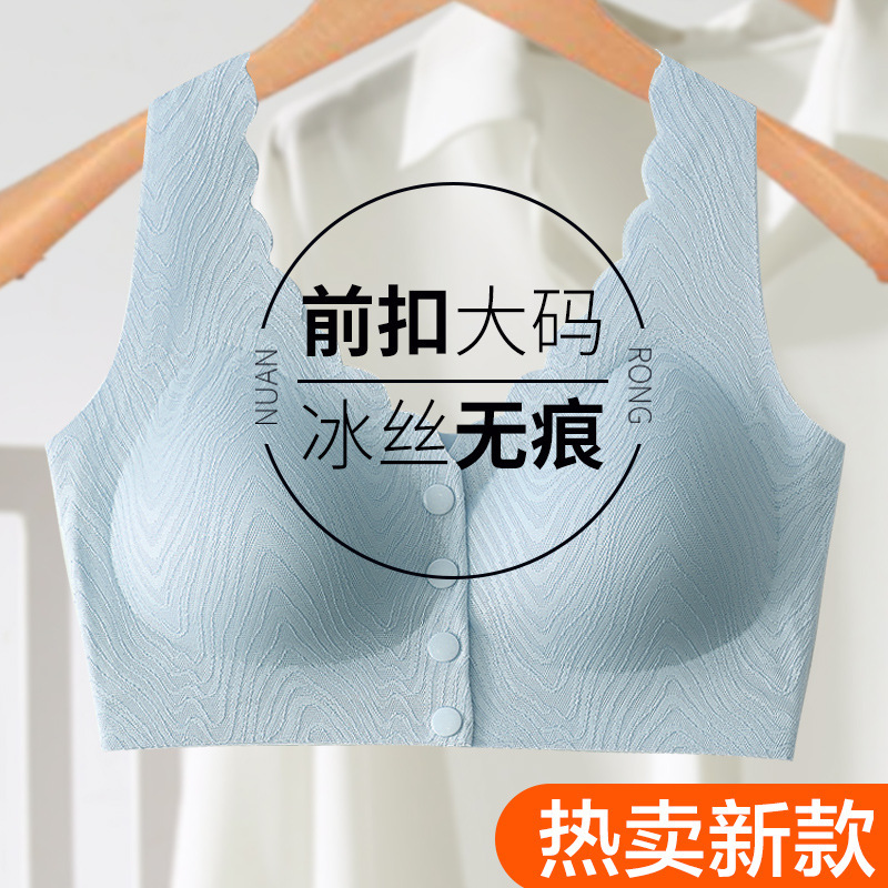 엄마 속옷 여성의 여름 얇은 중년 및 노인 사람들의 얼음 실크 tracless 플러스 사이즈 앞 버클 브라 스틸 링 조끼 브라스토어 가기