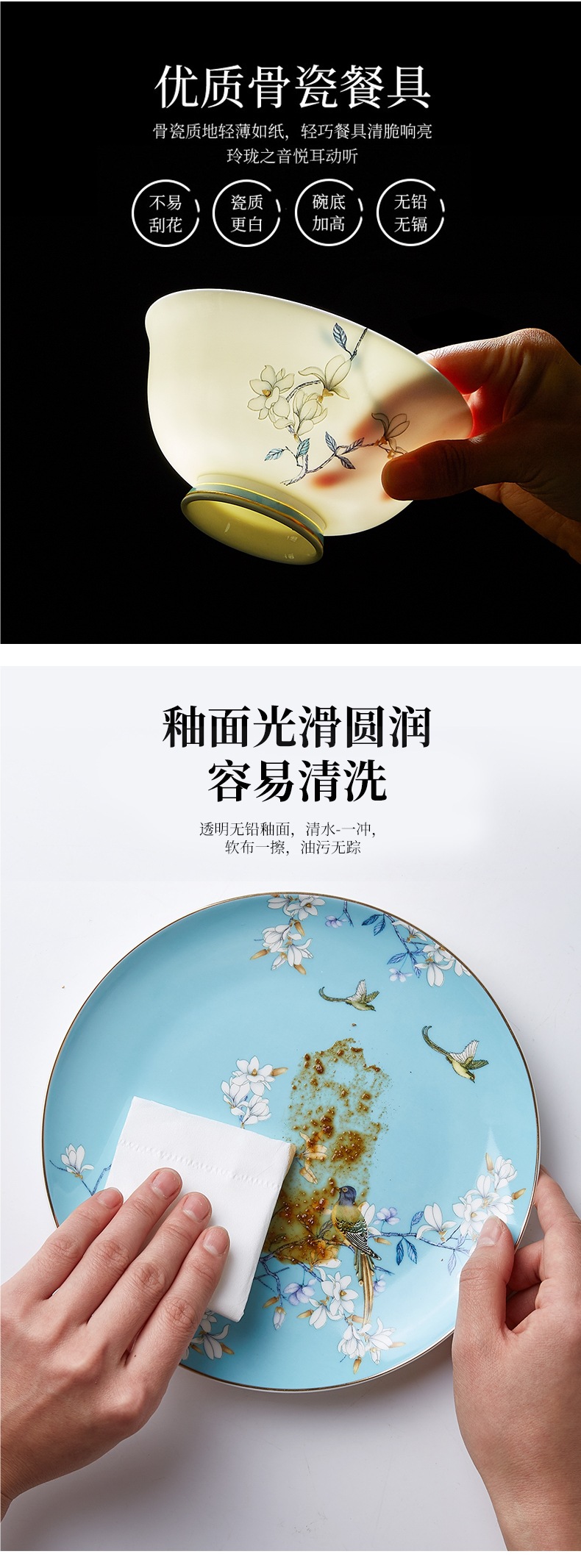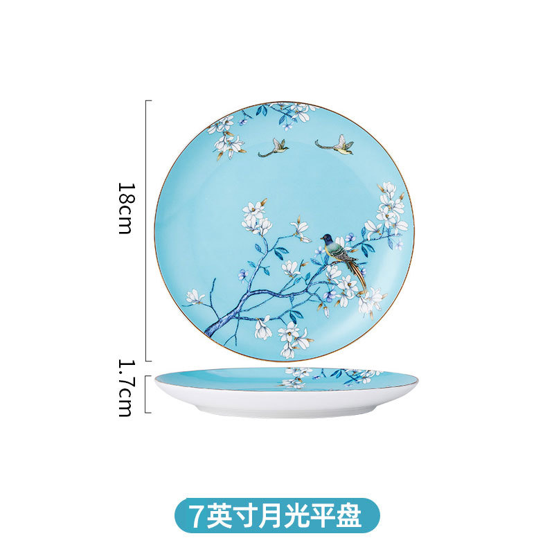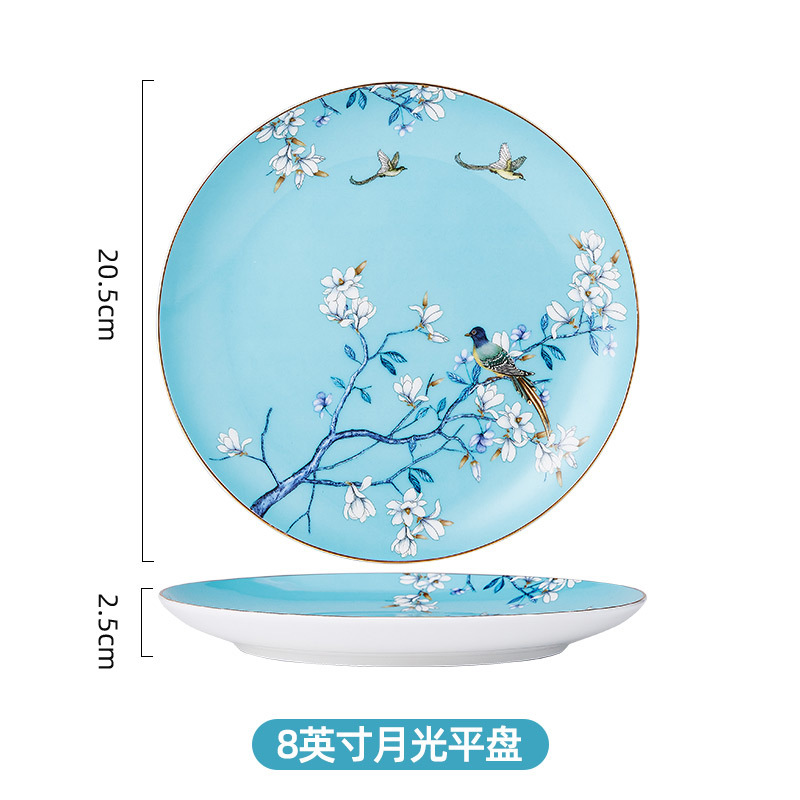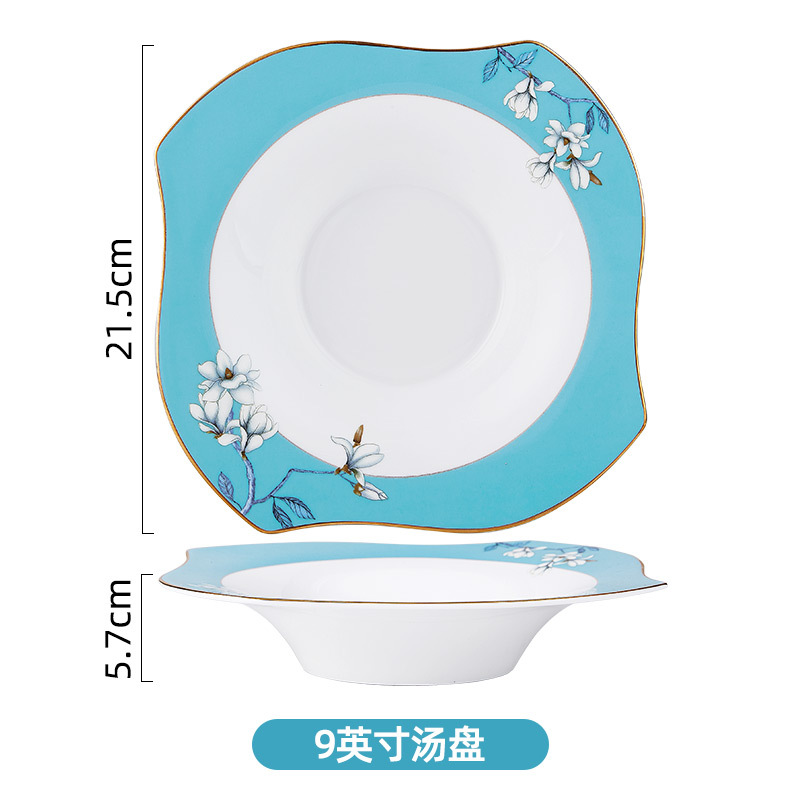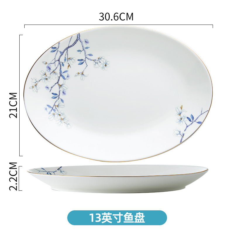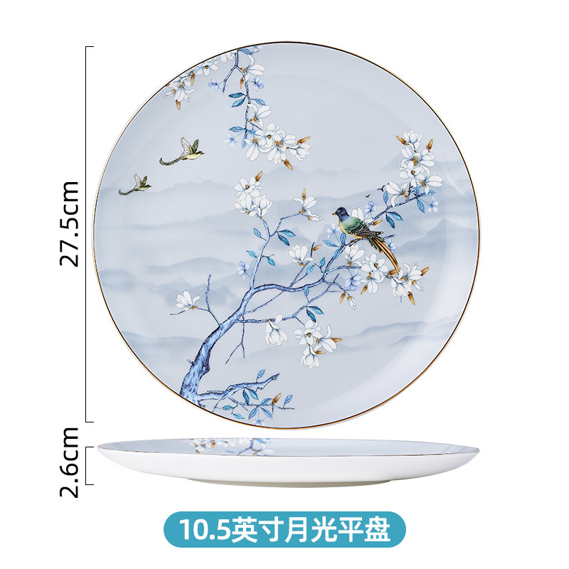 뼈 중국 금박 접시 서양 음식 스테이크 디너 플레이트 홈 접시 유럽 스타일 가벼운 럭셔리 세라믹 플랫 플레이트 접시 아침 식사 플레이트스토어 가기