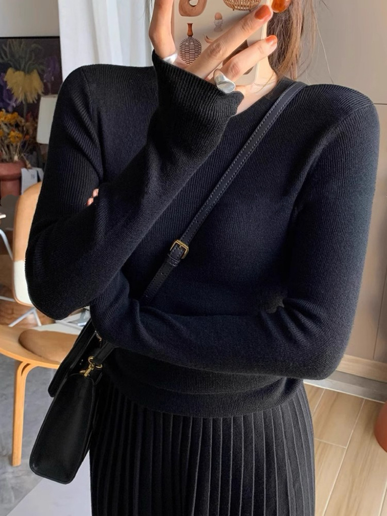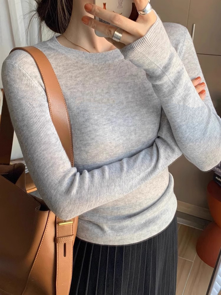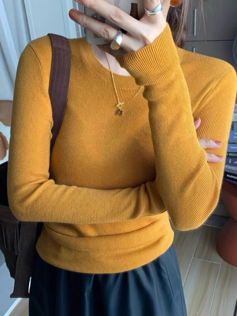 오렌지 크루 넥 니트베이스 셔츠 여성용 가을 및 겨울 코트 내부 스웨터 고급 슬림 핏 양모 스택 탑스토어 가기