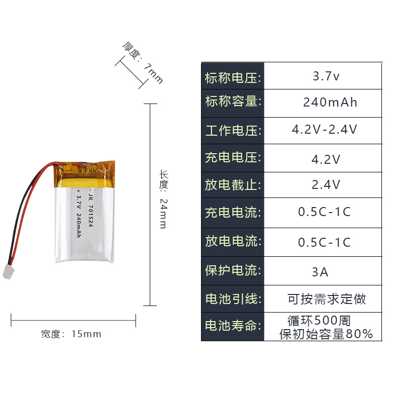701524 폴리머 리튬 배터리 240mAh 충전식 배터리 3.7V 작은 스마트 제품 배터리스토어 가기