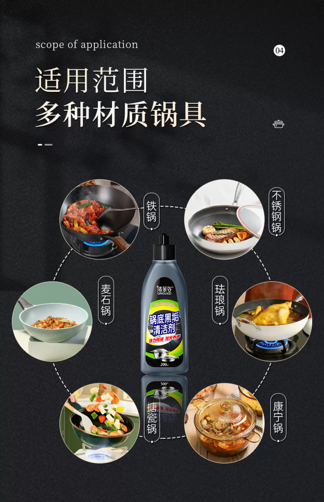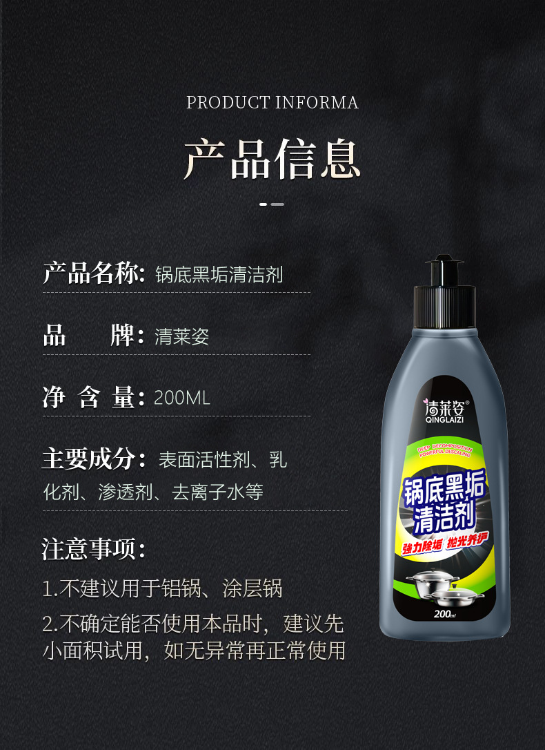 • Qinglaizi 냄비 바닥 블랙 스케일 클리너 200ml