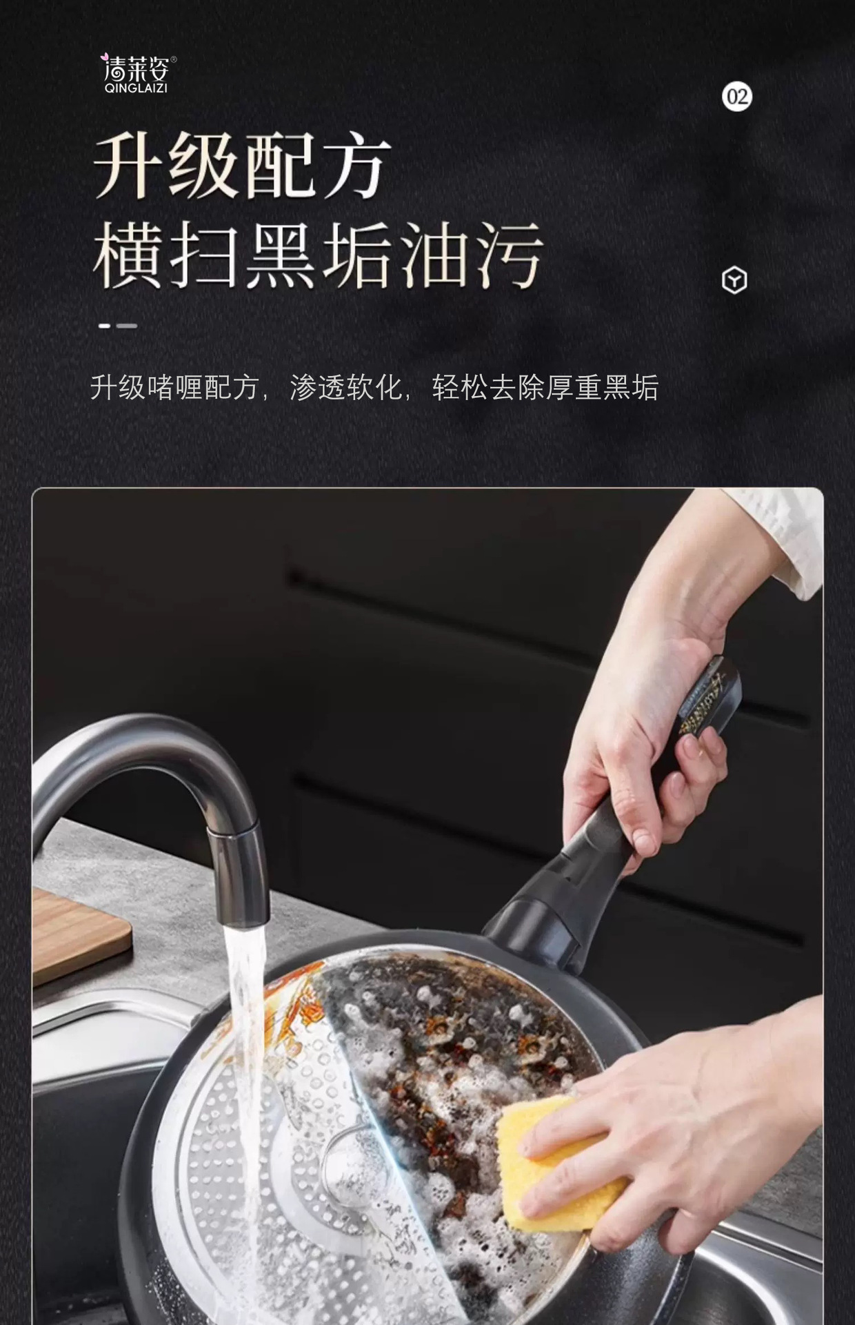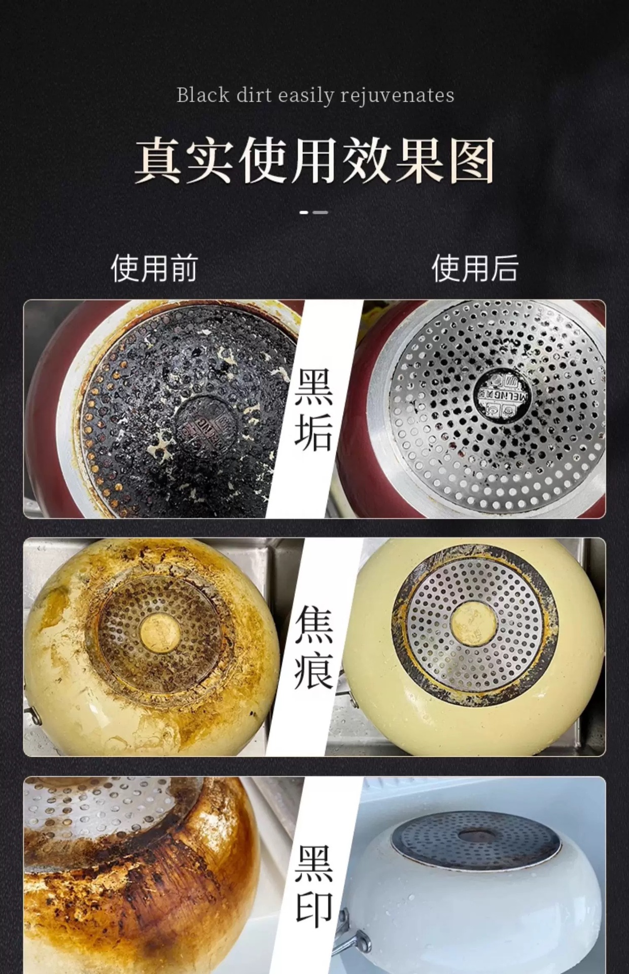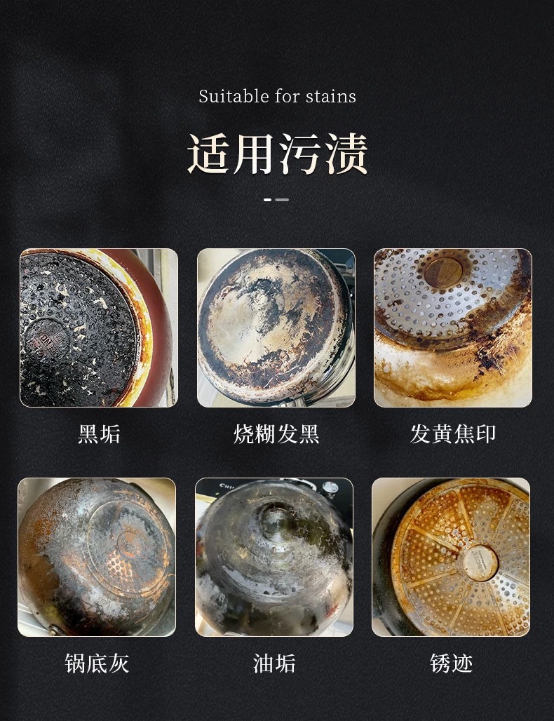 Qinglaizi 2024 새로운 검은 냄비 바닥 스테인레스 스틸 오일 클리너 주방 냄비 강한 오염 제거 유물
