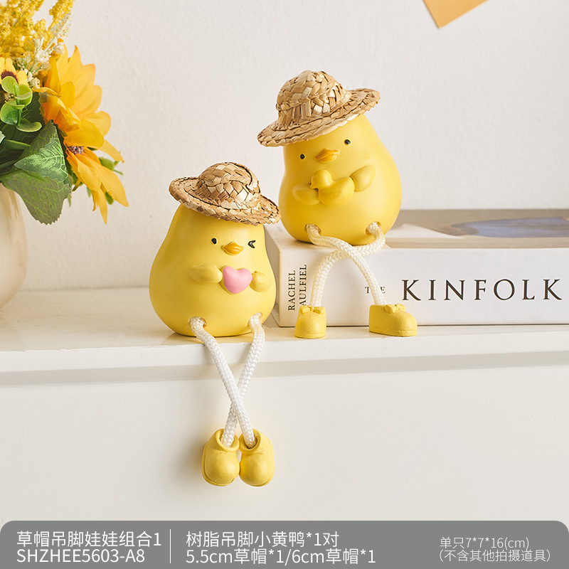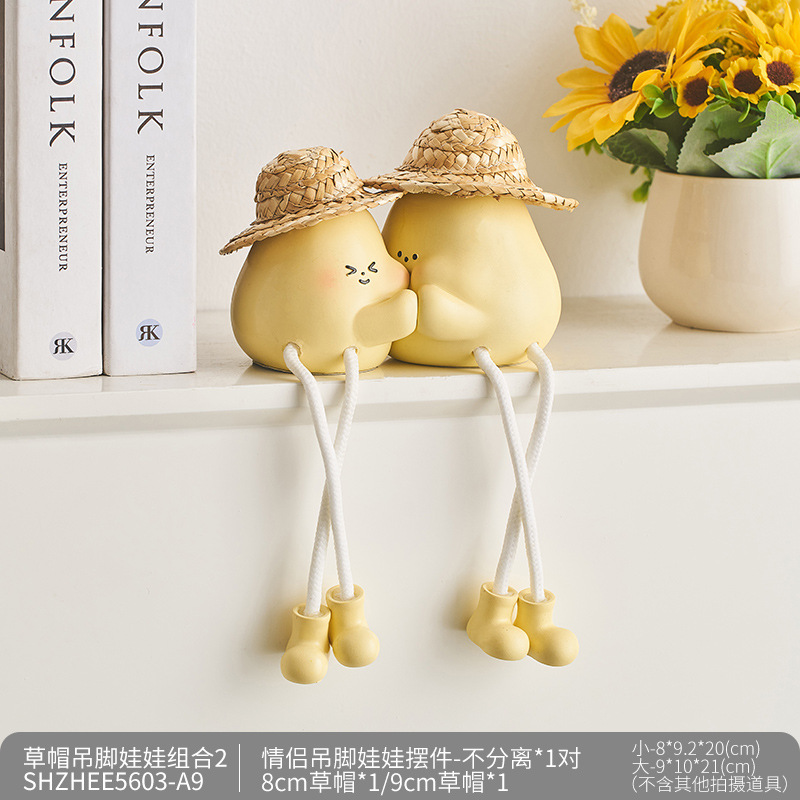 귀여운 치유 밀짚 모자 발 인형 데스크탑 작은 장식품 사무실 책상 장식 수지 공예 선물