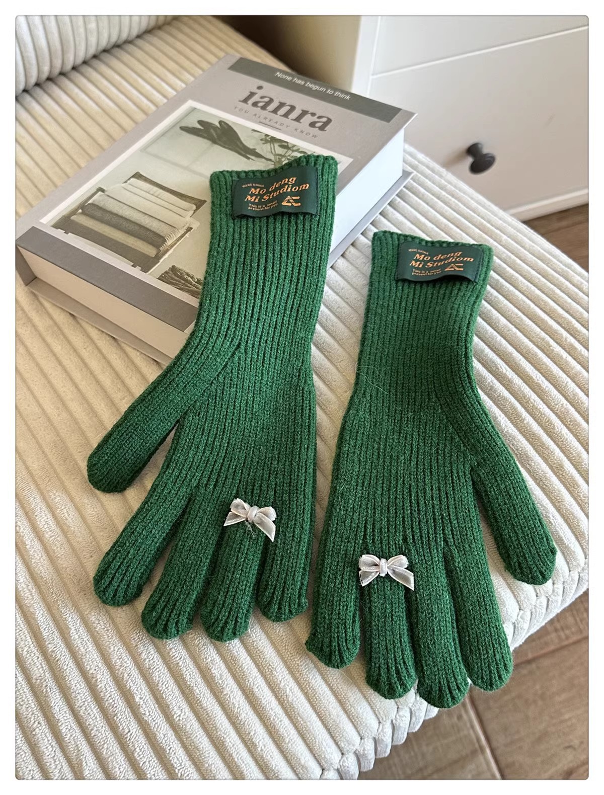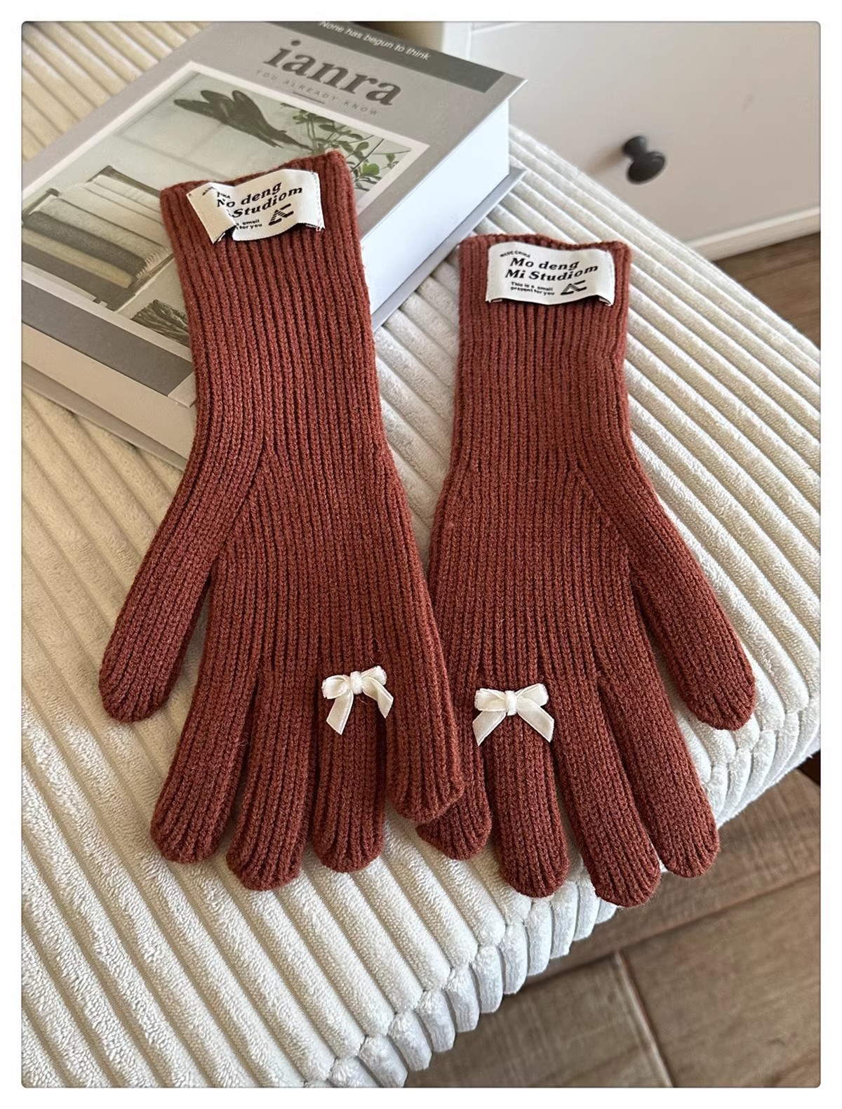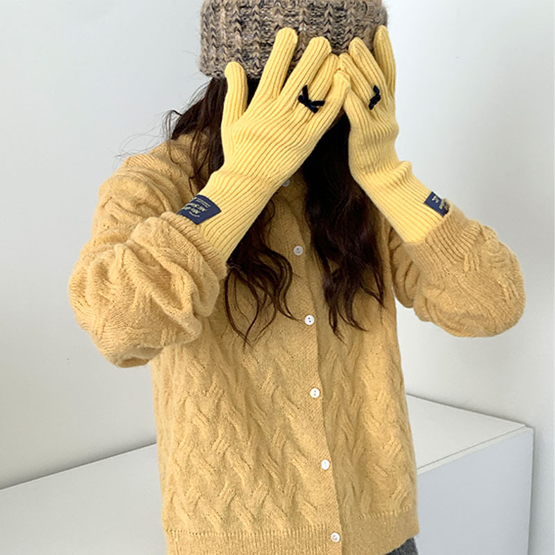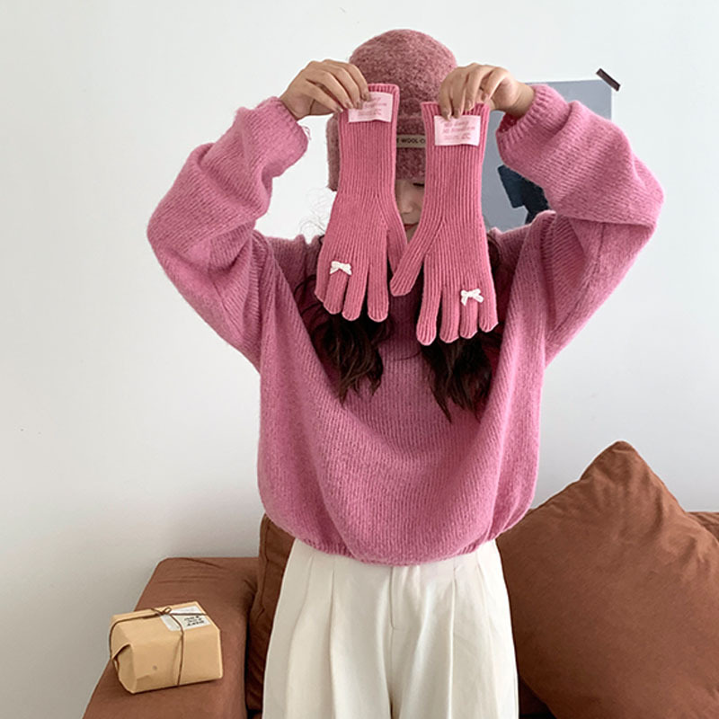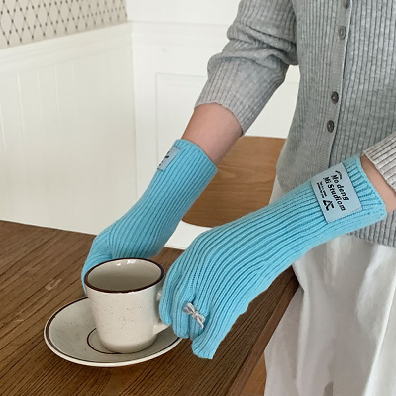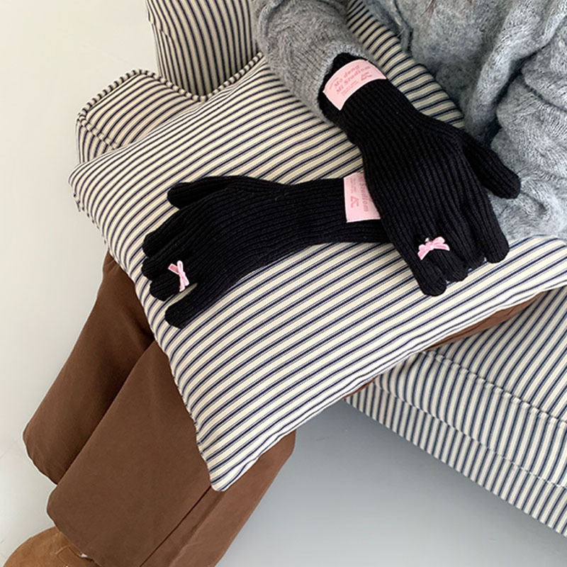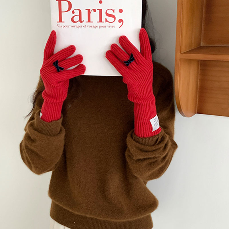 한국 스타일 Ins 스타일 활 니트 장갑 여성의 가을과 겨울 따뜻한 냉간 라이딩 터치 스크린 5 손가락 울 장갑