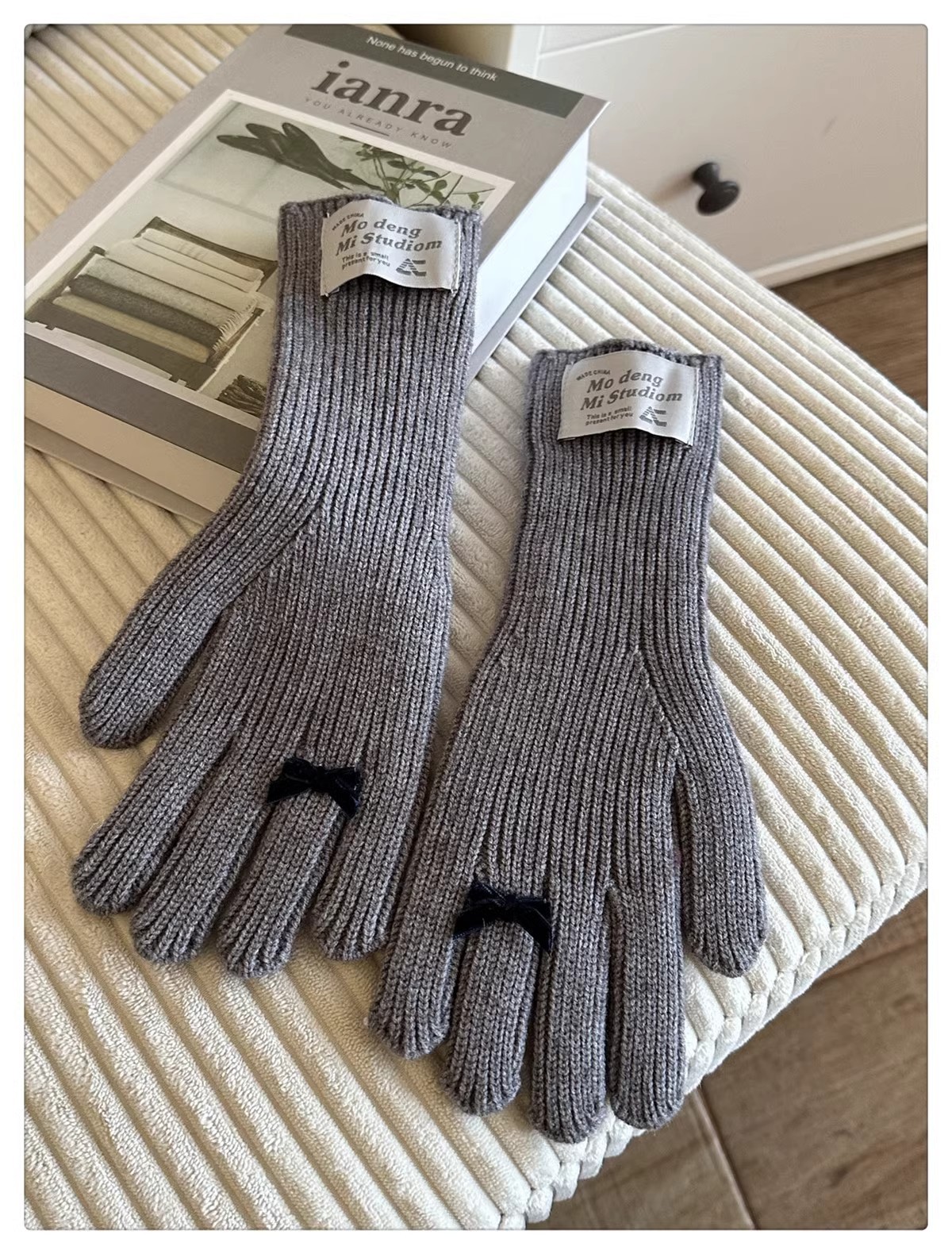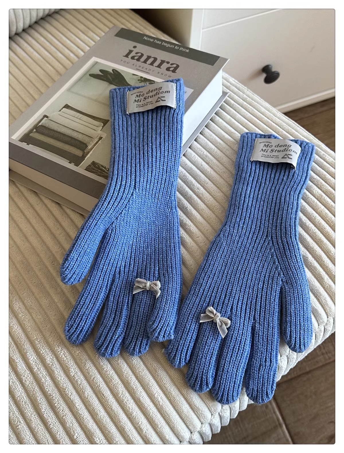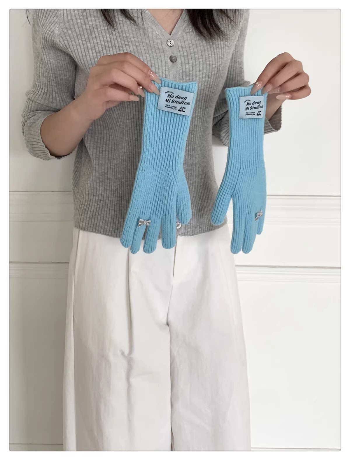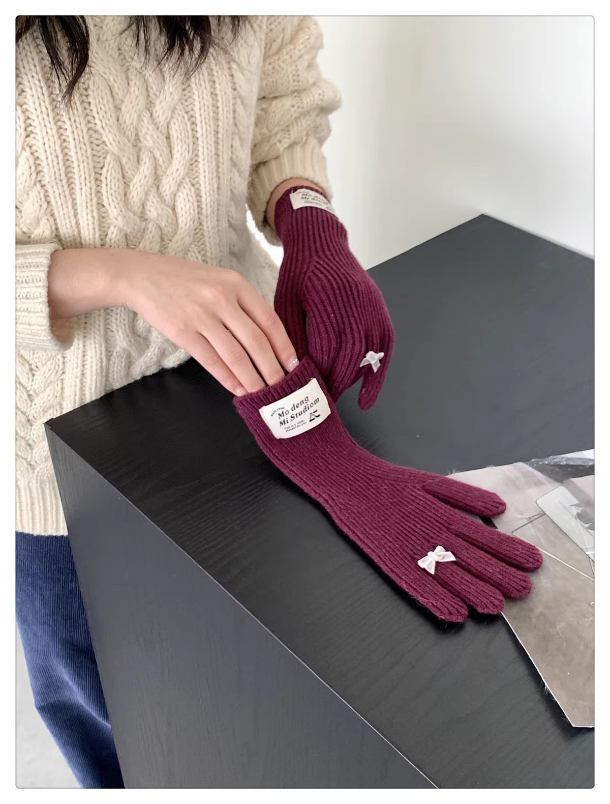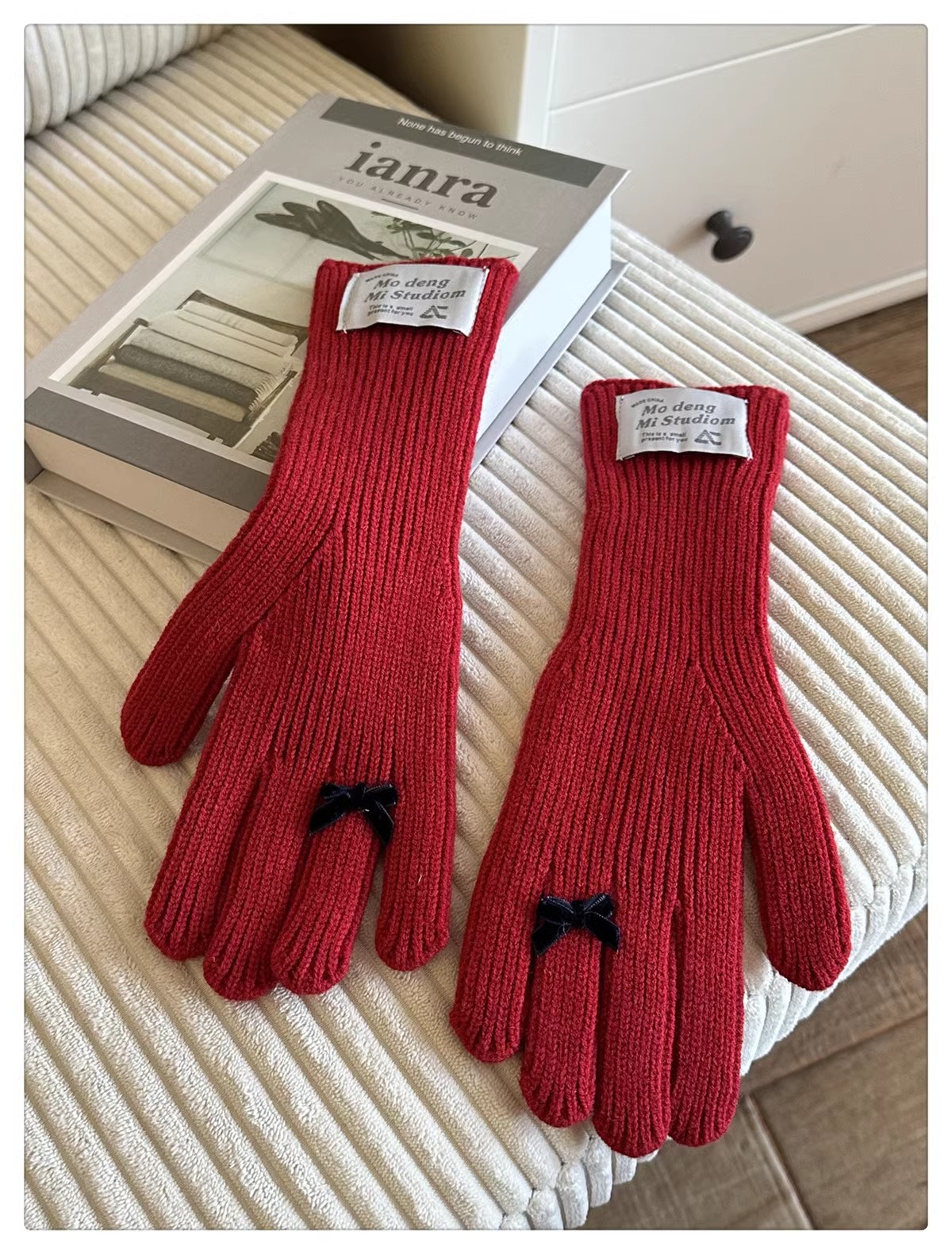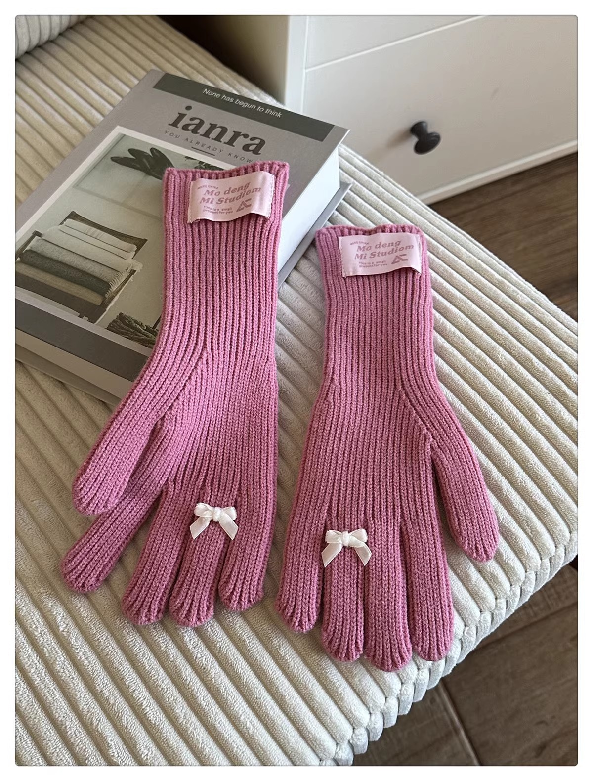 한국 스타일 Ins 스타일 활 니트 장갑 여성의 가을과 겨울 따뜻한 냉간 라이딩 터치 스크린 5 손가락 울 장갑