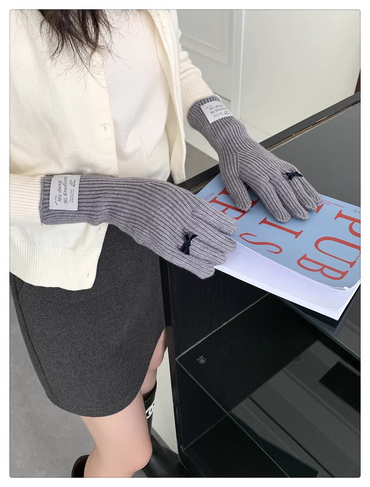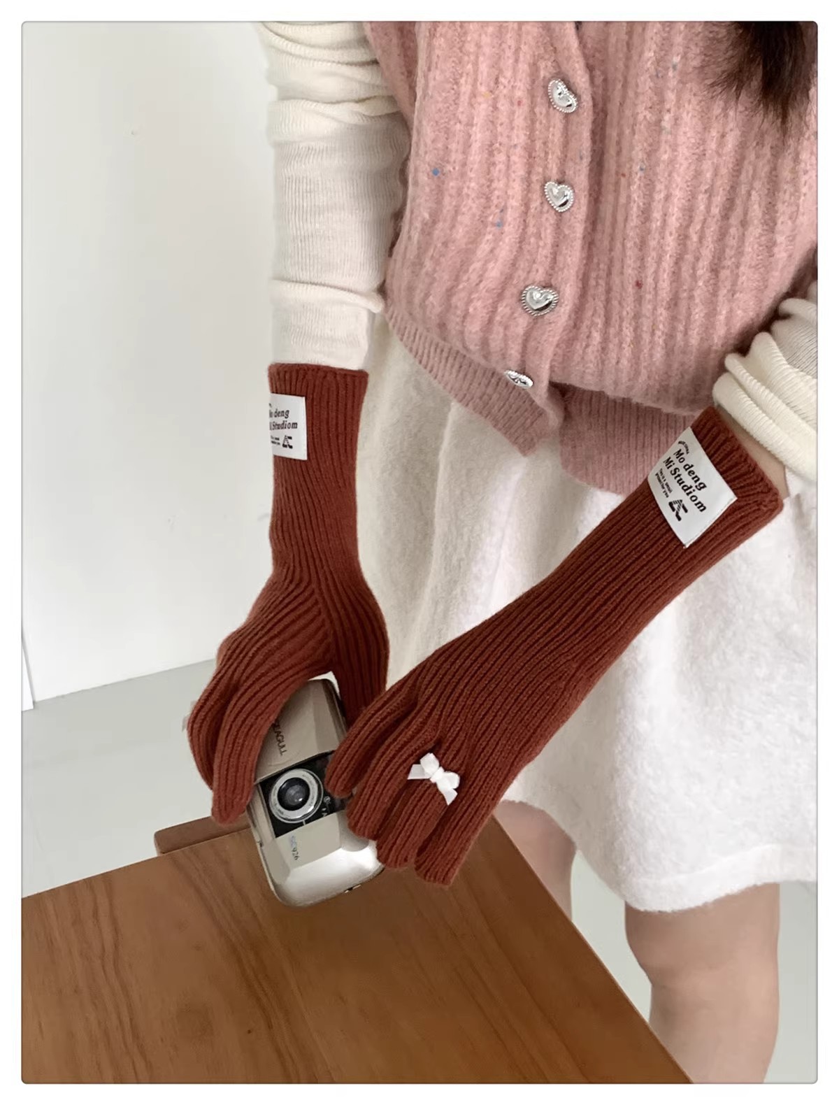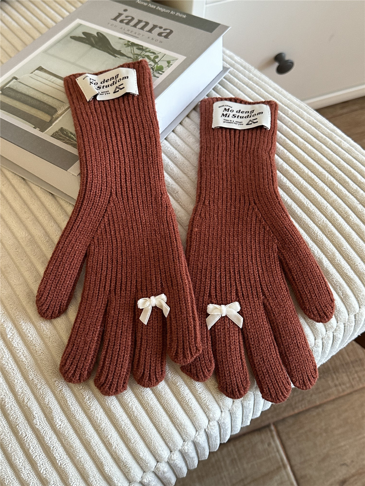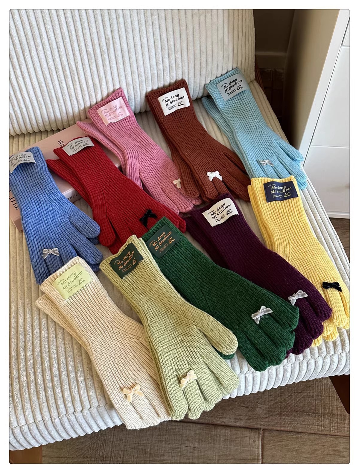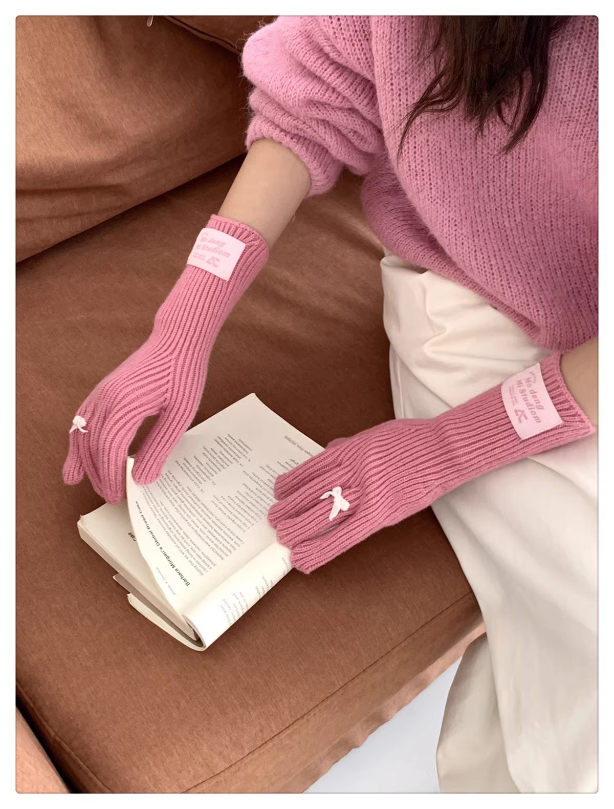 한국 스타일 Ins 스타일 활 니트 장갑 여성의 가을과 겨울 따뜻한 냉간 라이딩 터치 스크린 5 손가락 울 장갑