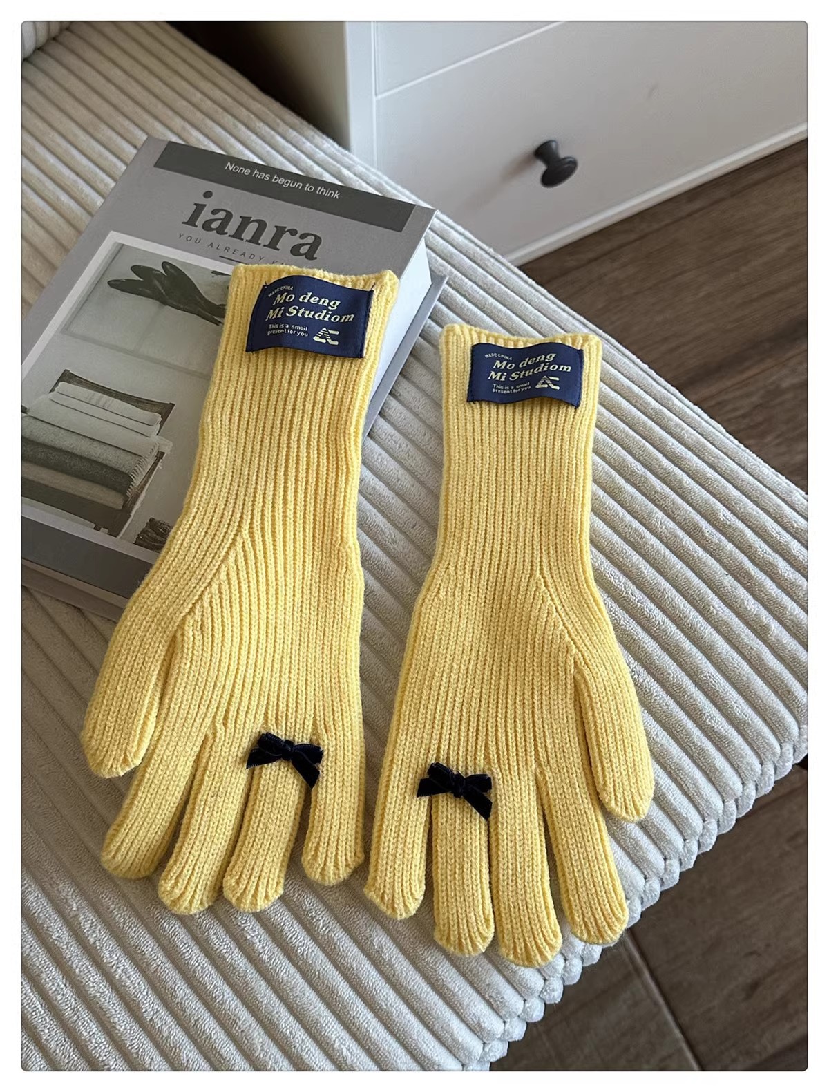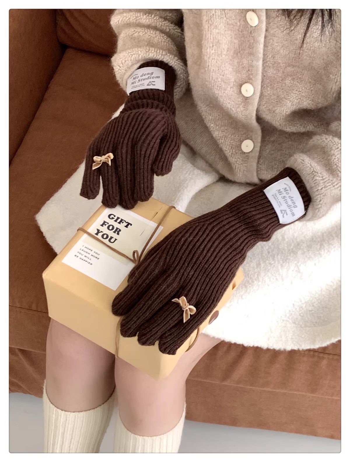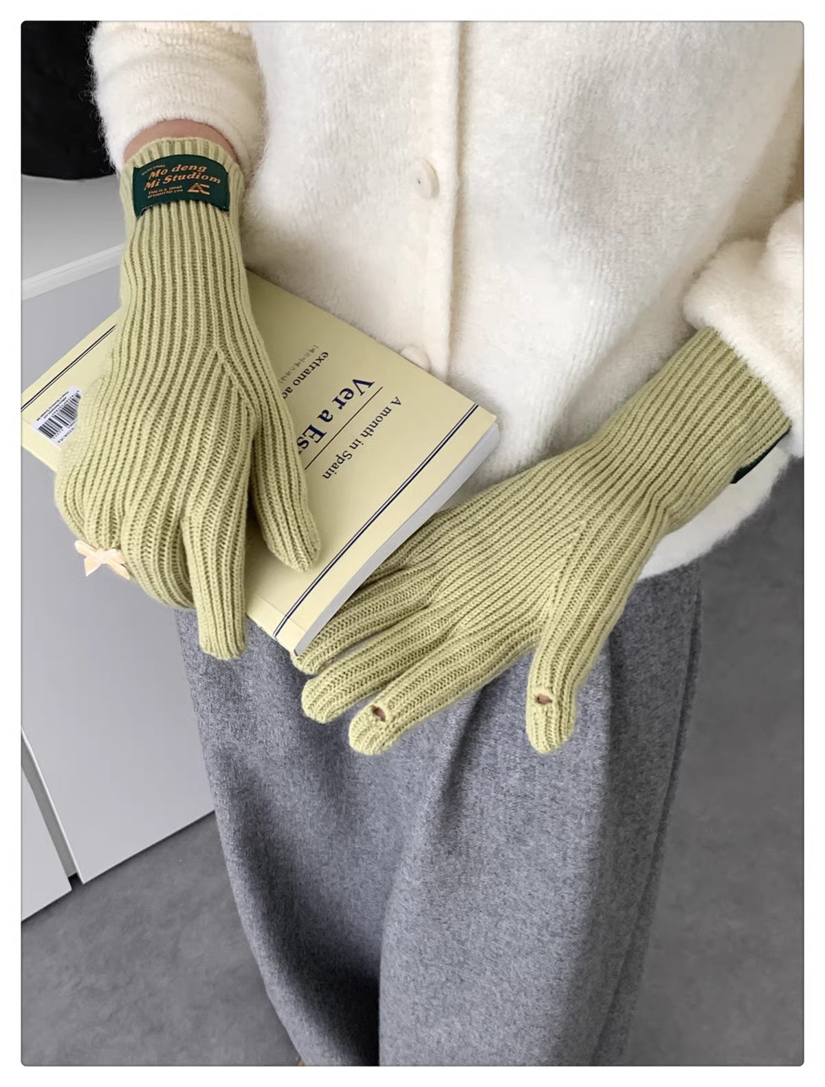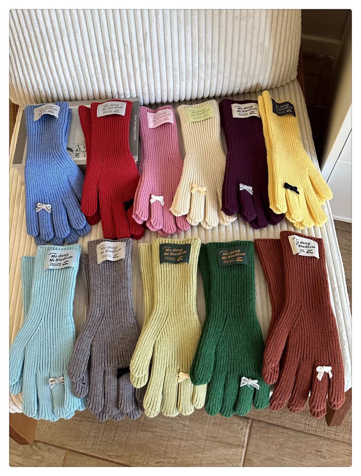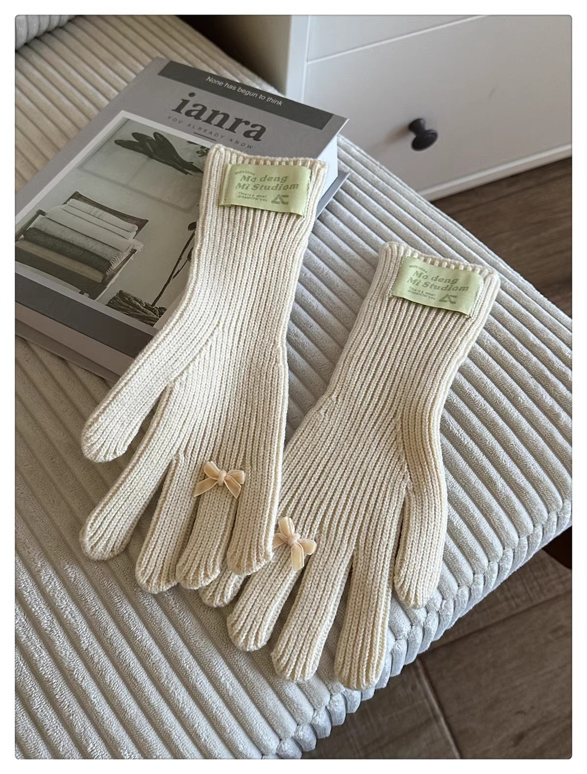 한국 스타일 Ins 스타일 활 니트 장갑 여성의 가을과 겨울 따뜻한 냉간 라이딩 터치 스크린 5 손가락 울 장갑