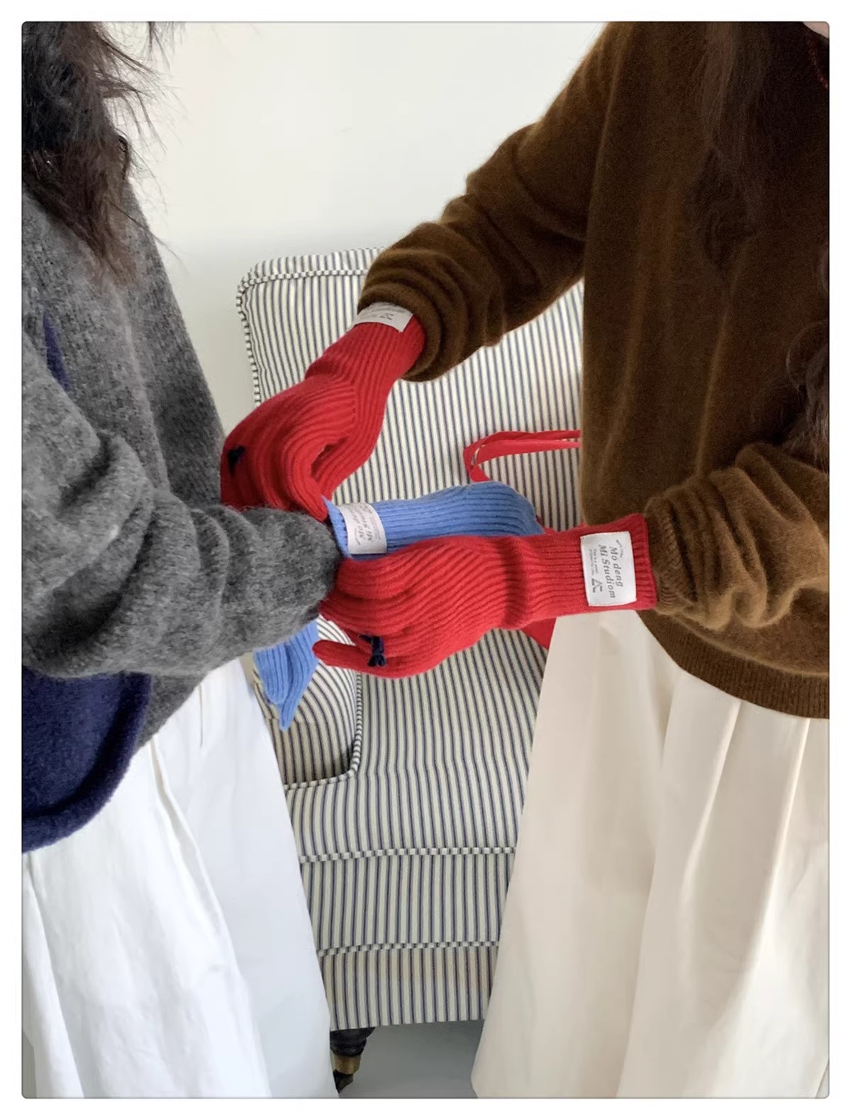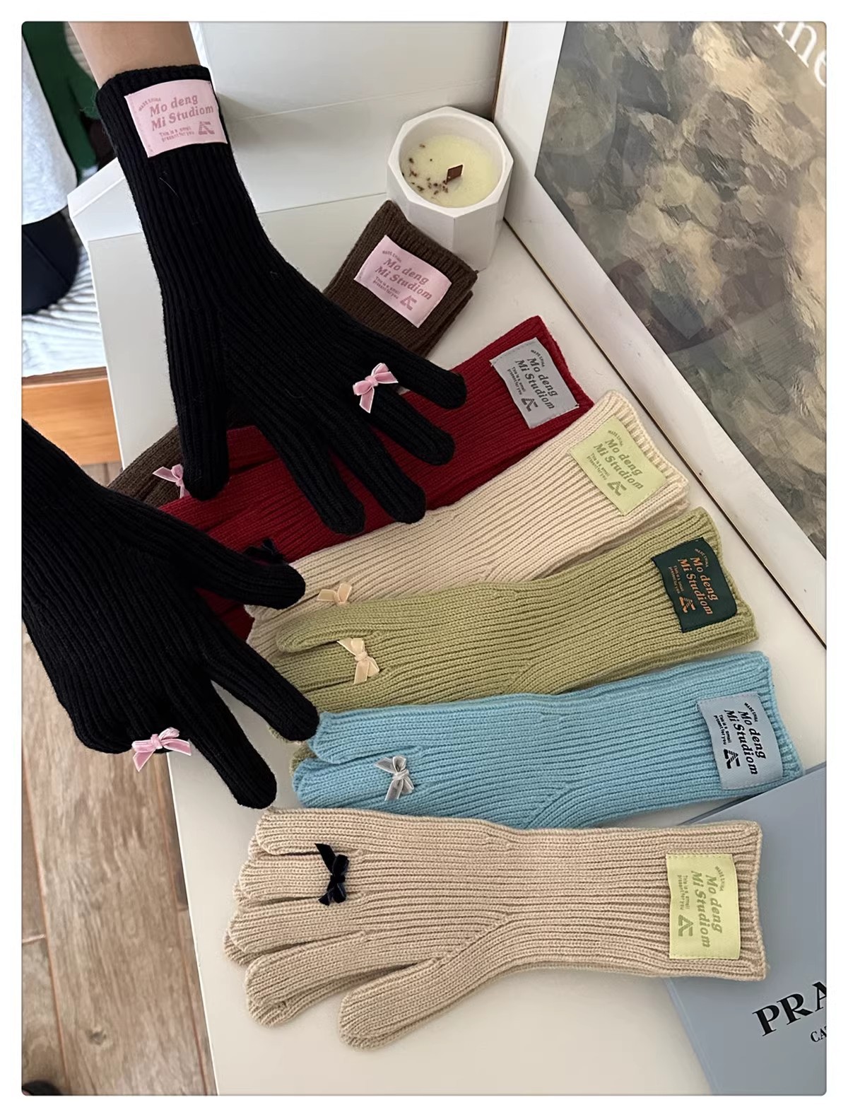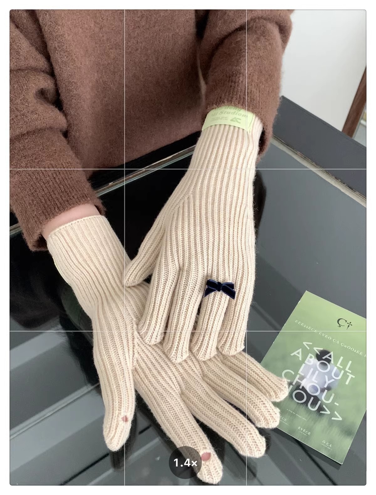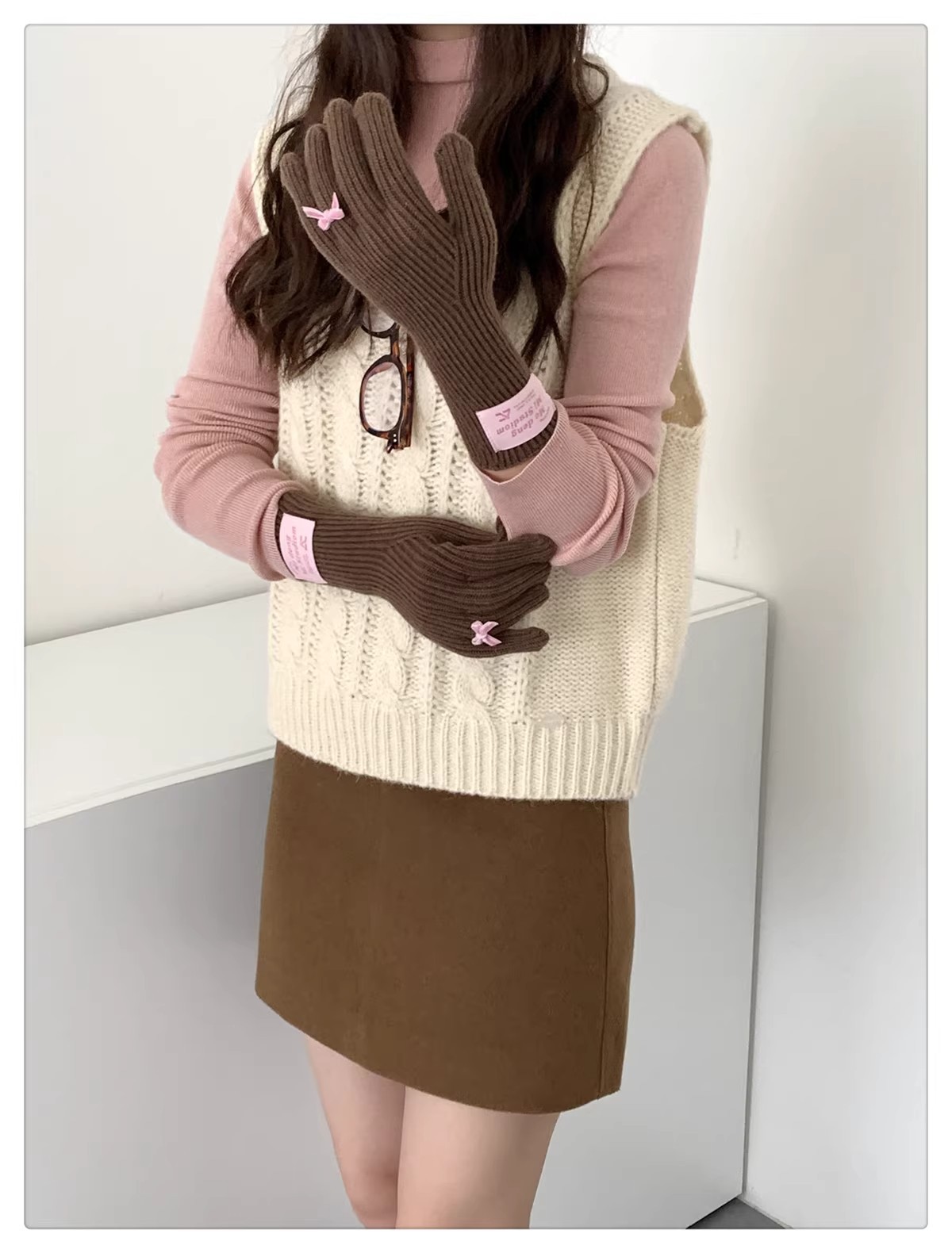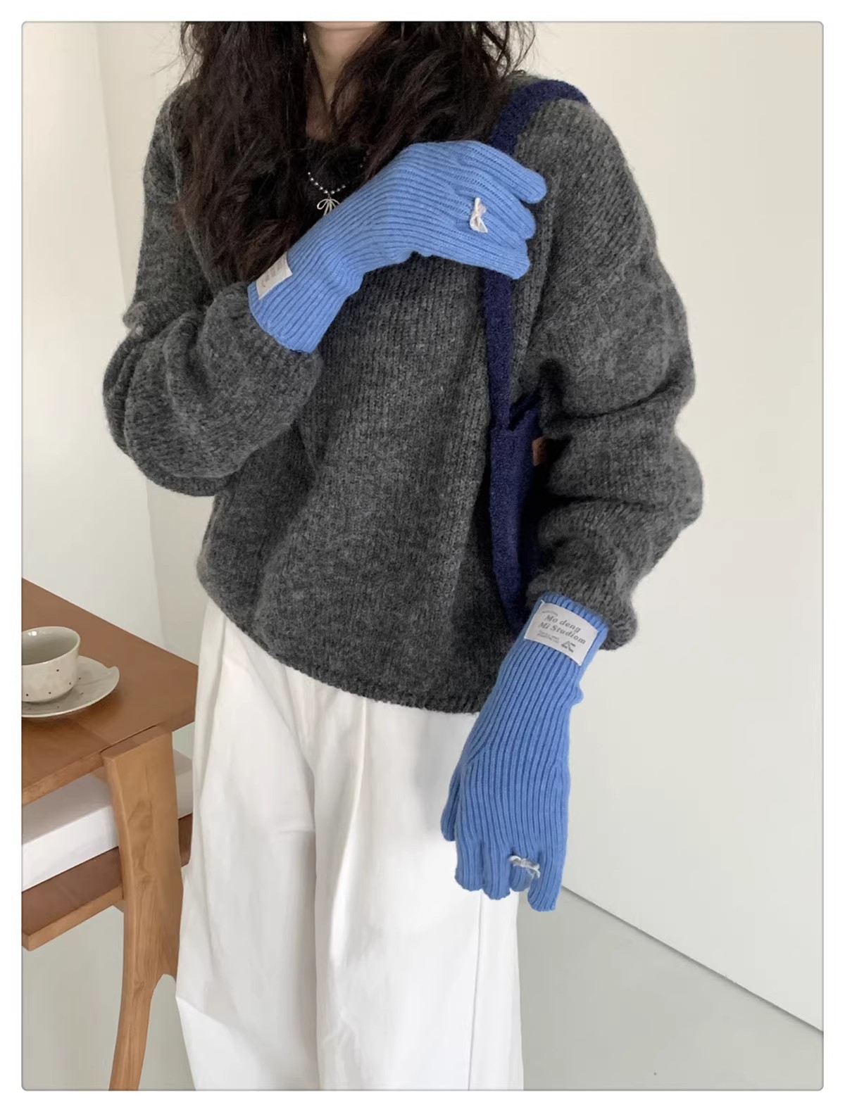 한국 스타일 Ins 스타일 활 니트 장갑 여성의 가을과 겨울 따뜻한 냉간 라이딩 터치 스크린 5 손가락 울 장갑