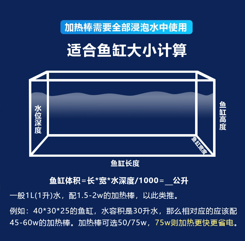 • 짧은 항온 75W [50W보다 에너지 절약] 수온계 포함