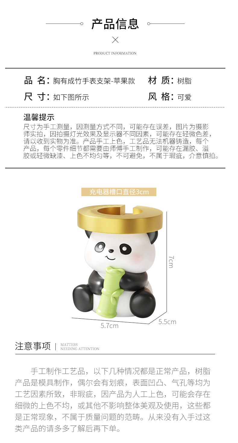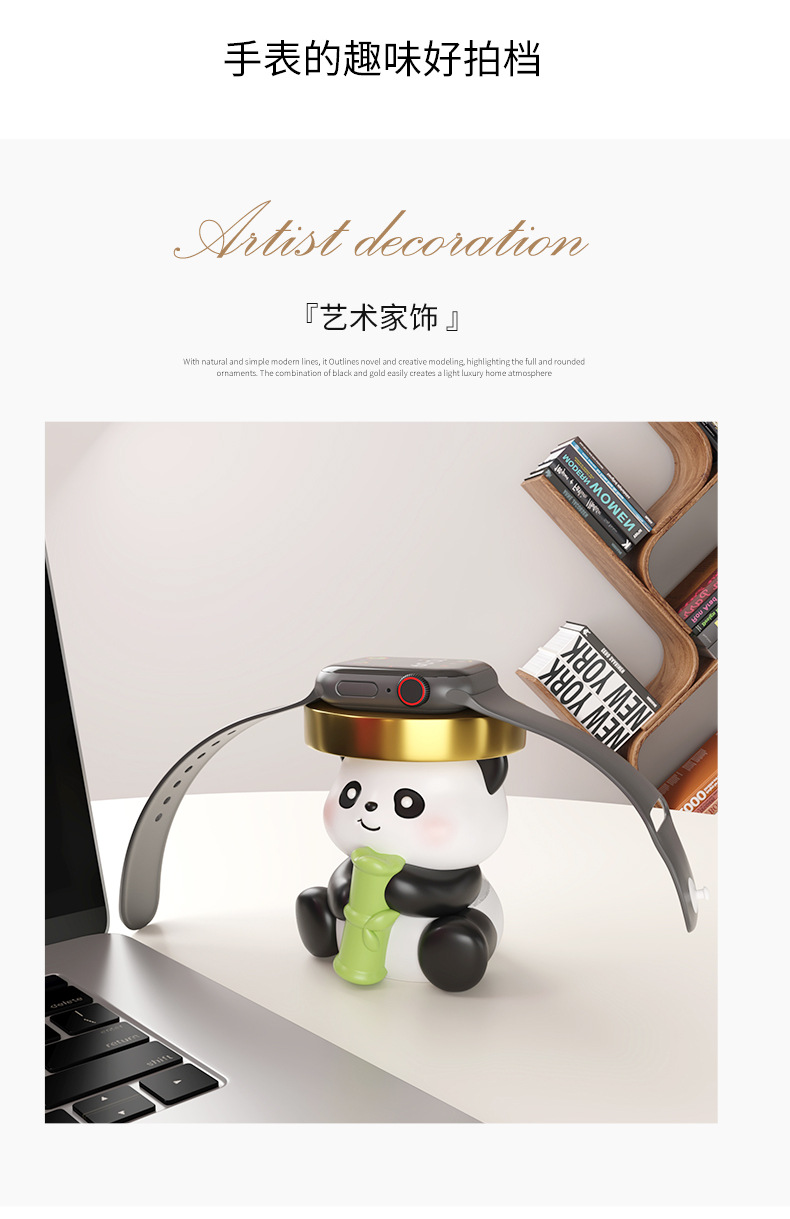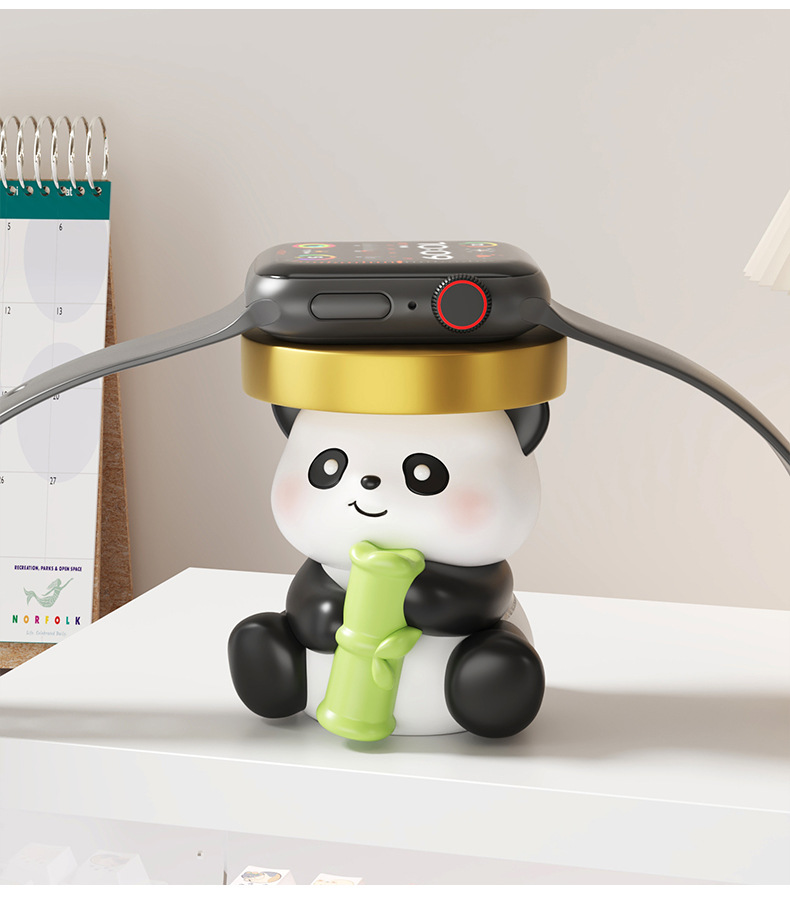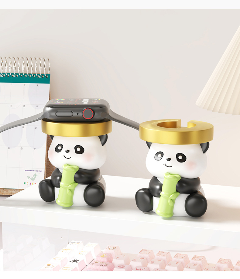 귀여운 치유 팬더 시계 충전 스탠드 안정 데스크탑 작은 장식품 생일 선물