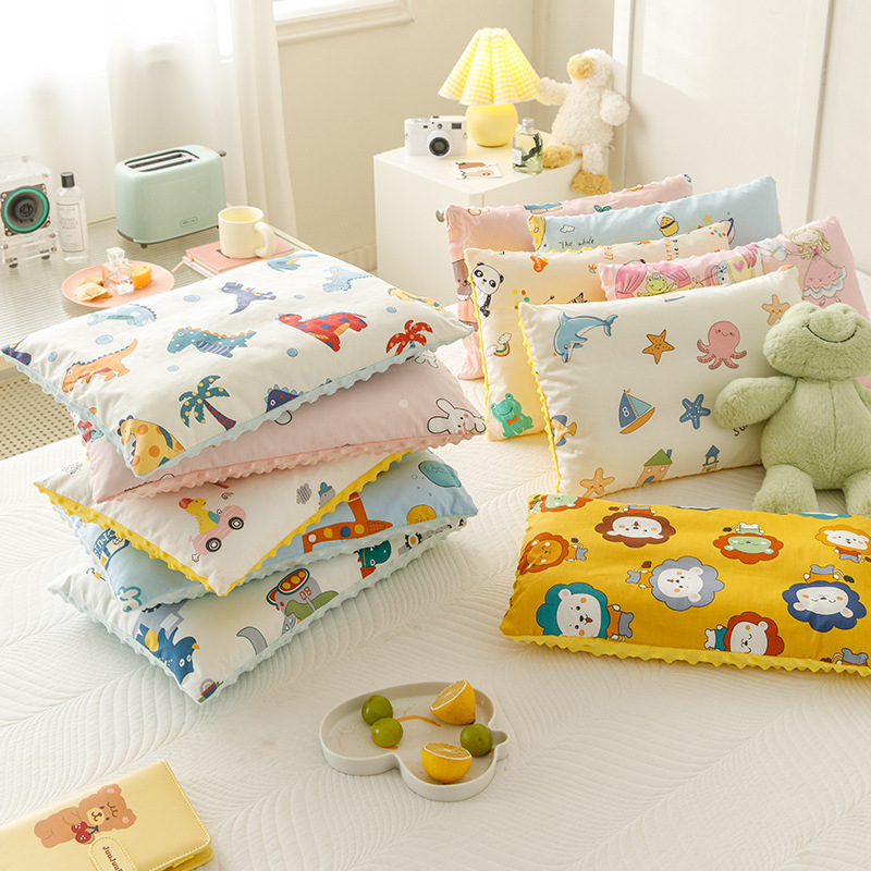 A 급 순수한면 어린이 자궁 경부 척추 보호 완두콩 베개 만화 순면 유치원 이중 베개 핵심 베개 케이스