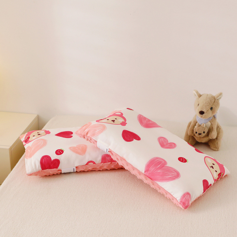 a类纯棉儿童护颈椎安抚豆豆枕头卡通全棉幼儿园双面枕芯枕套